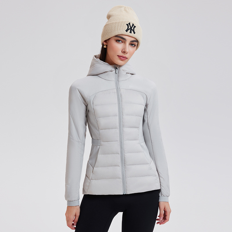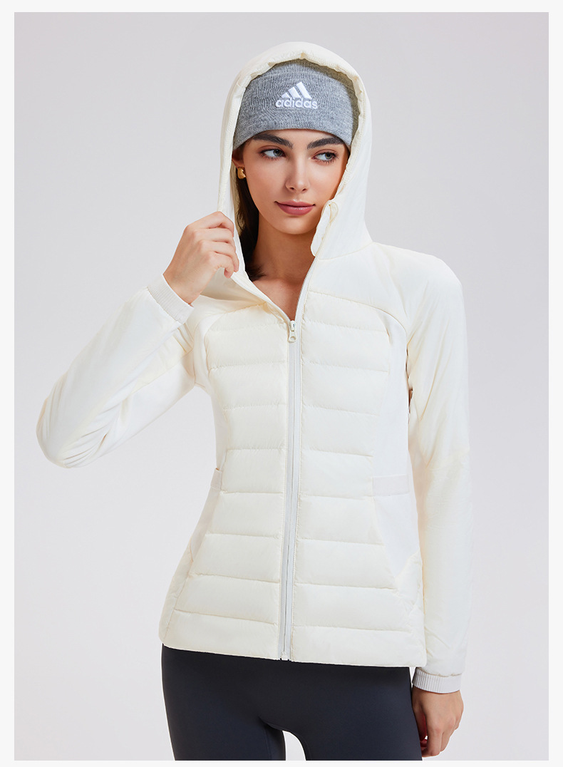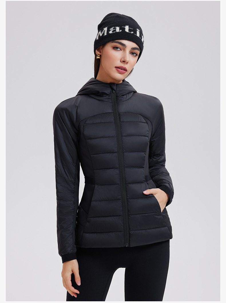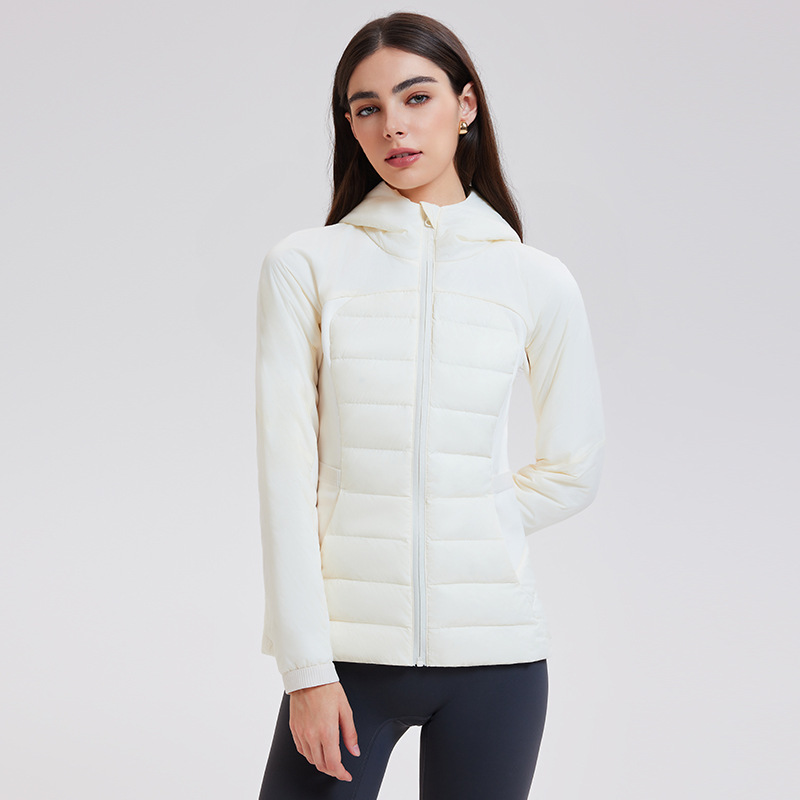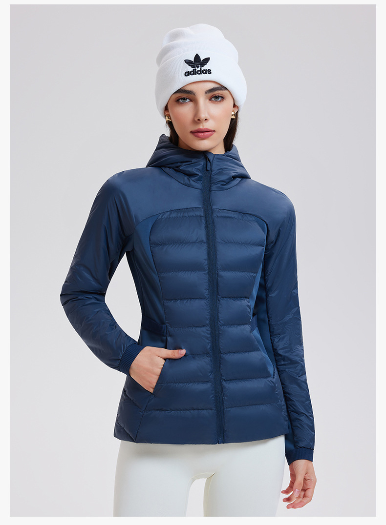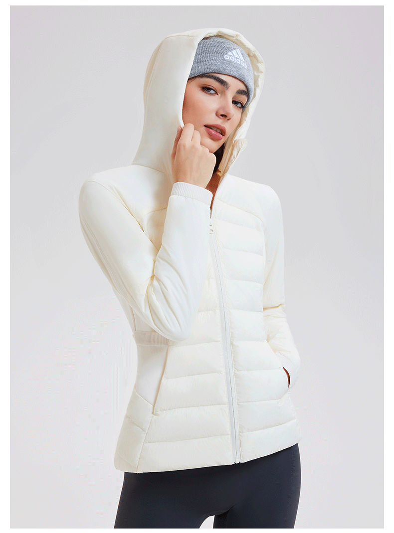 lu家秋冬新款羽绒外套女白鹅绒修身跑步上衣连帽休闲运动羽绒服女