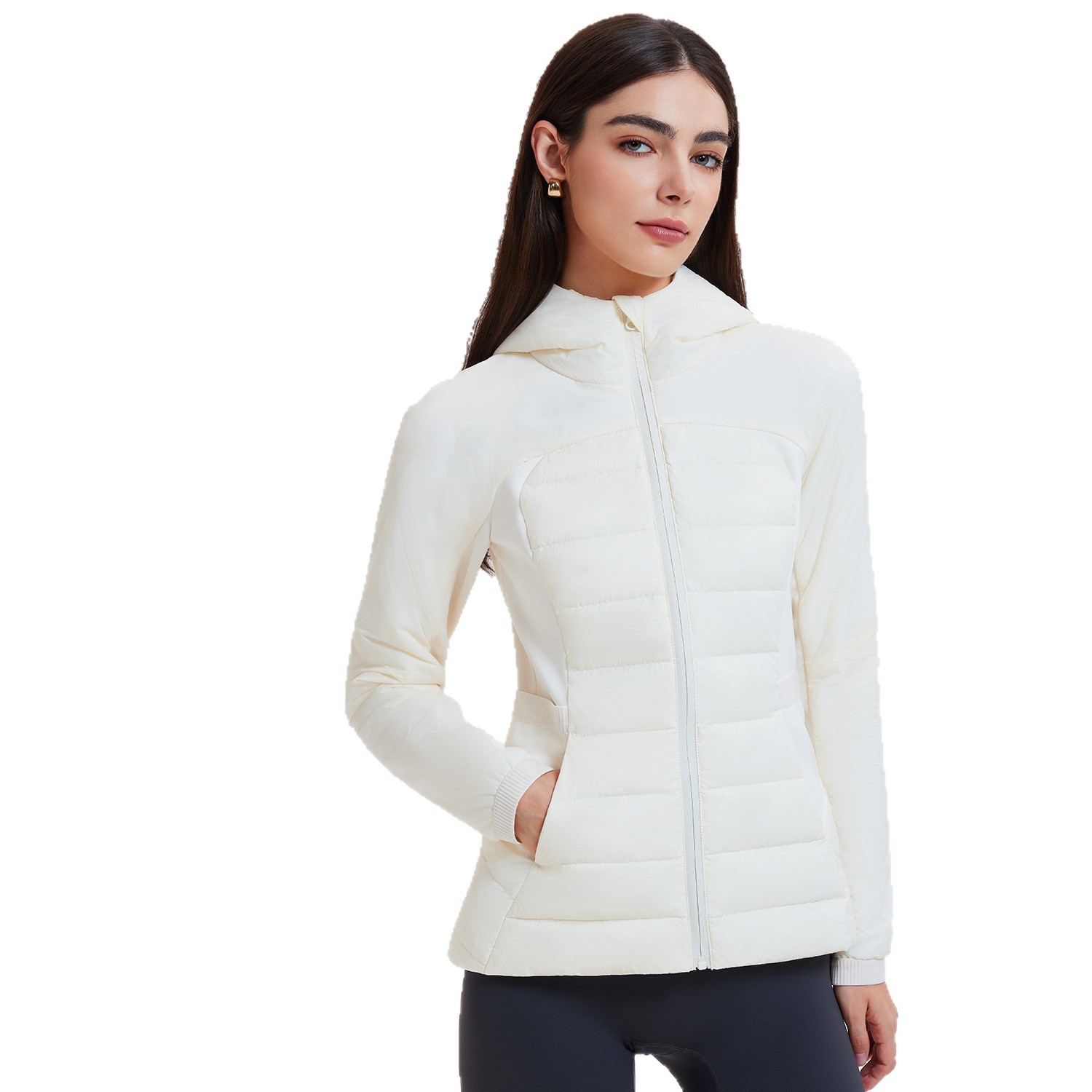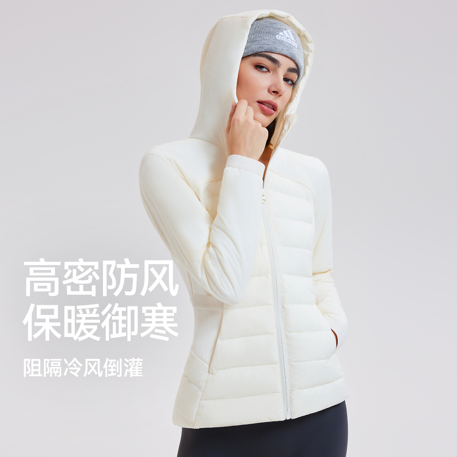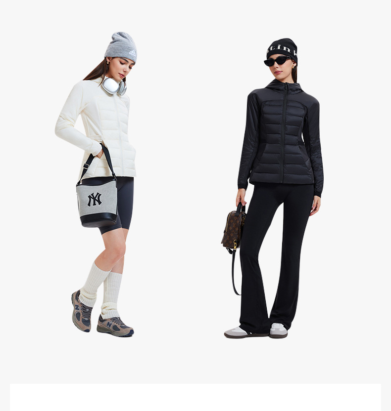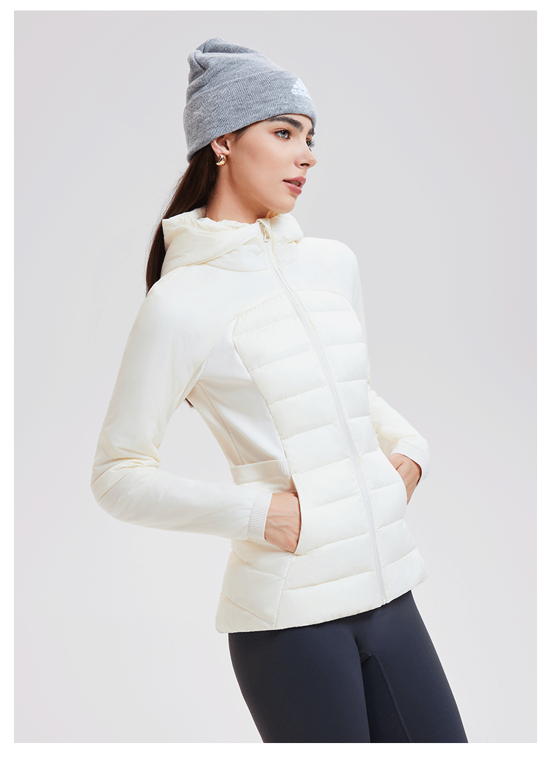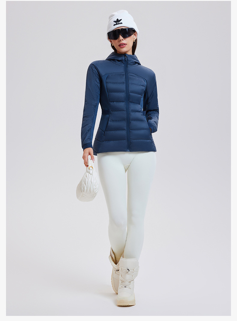 lu家秋冬新款羽绒外套女白鹅绒修身跑步上衣连帽休闲运动羽绒服女