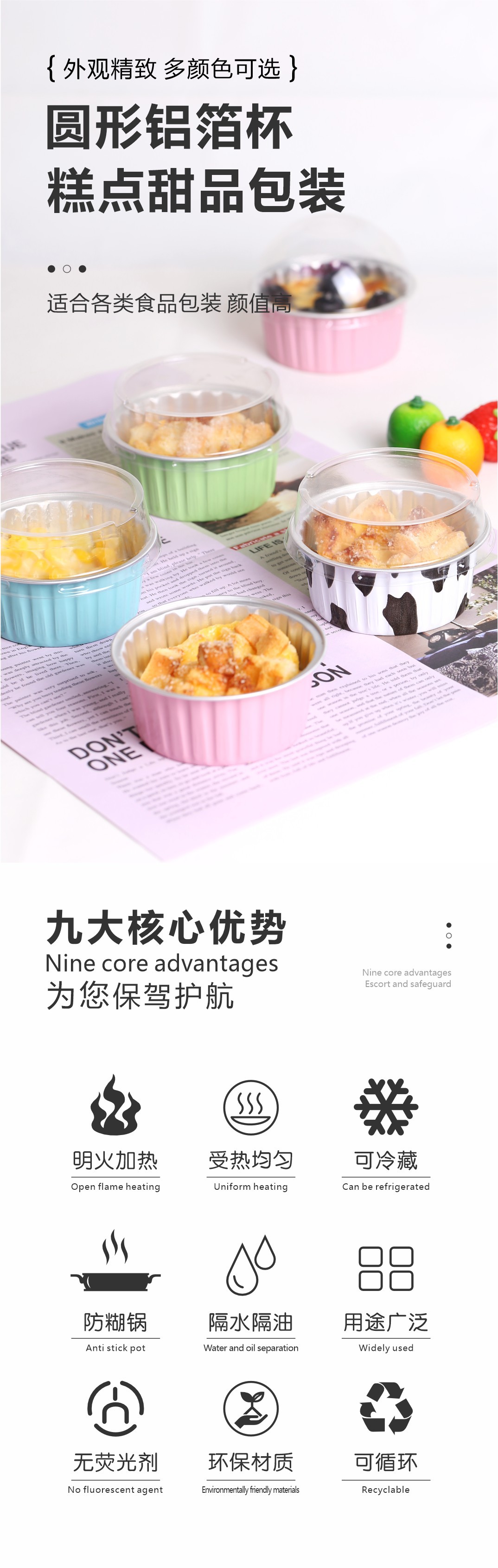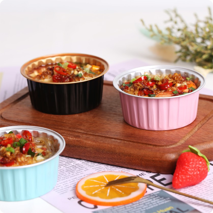 锡纸盒布丁杯甜品蛋挞带盖圆形烤箱专用空气炸锅铝泊蛋糕模具点心