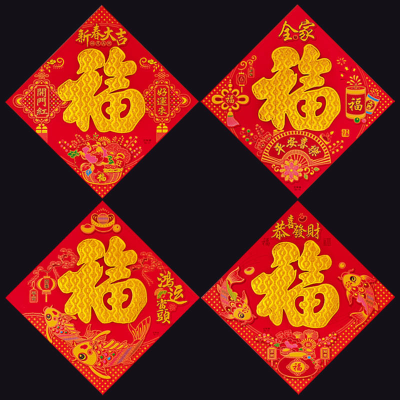 40#加厚绒布带背胶(彩色生肖福) USD $0.62 10000 piece available