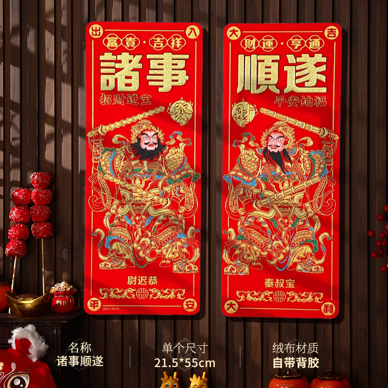 2026新款门神门贴大门贴纸春节过年单门秦叔宝尉迟恭财神爷门画