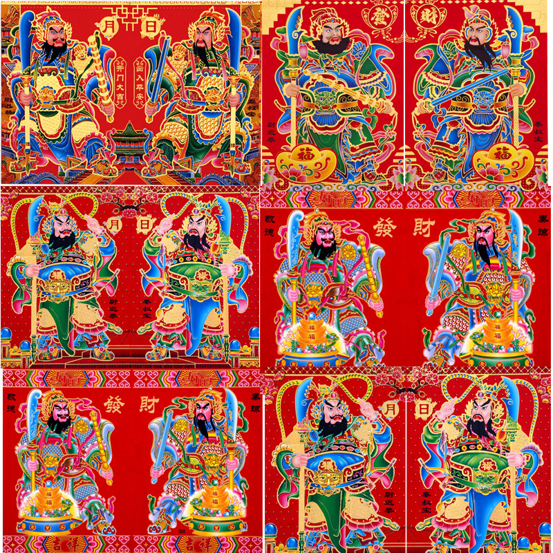 门神厂家直销2026年新款高档铜版纸烫金张飞关公尉迟秦门将批发