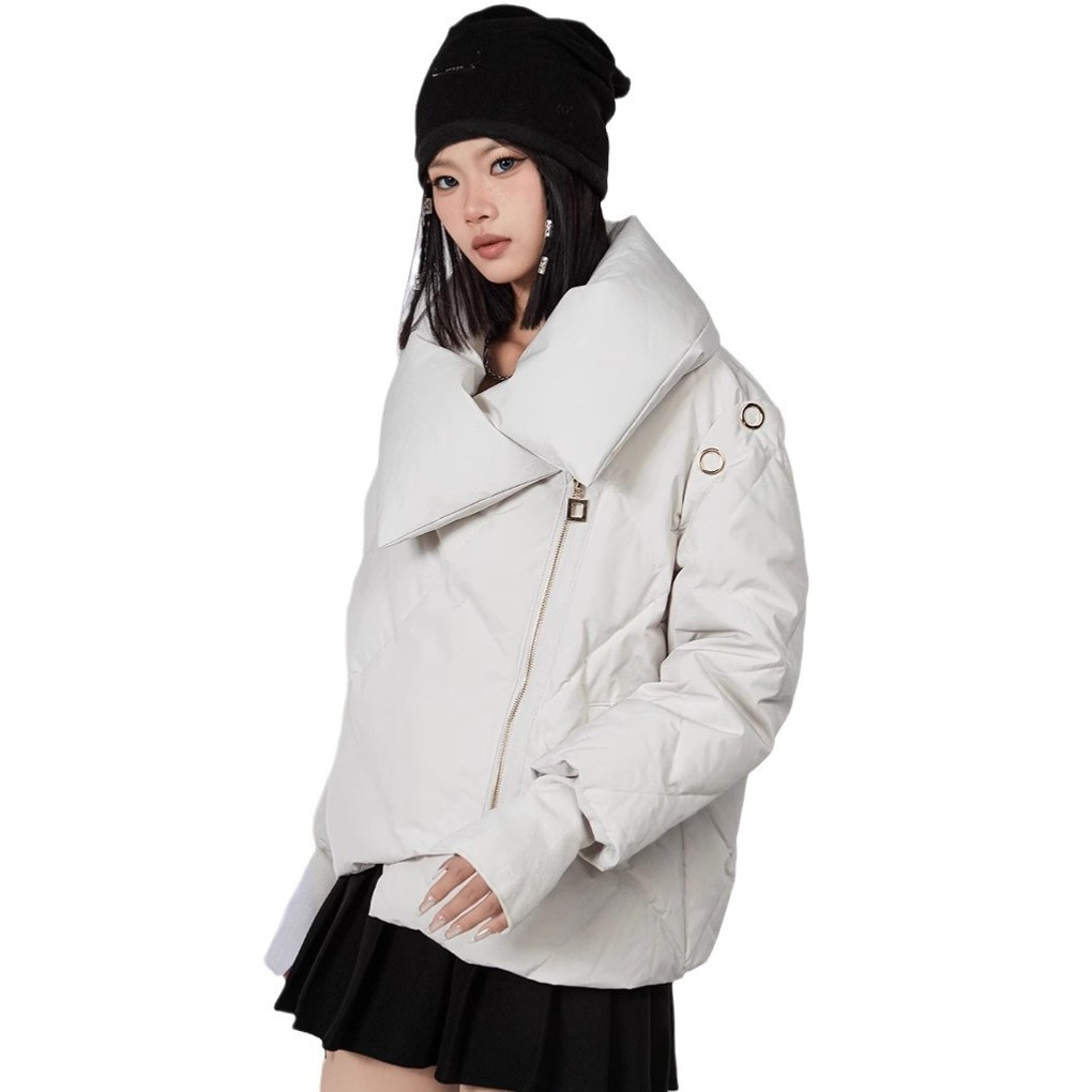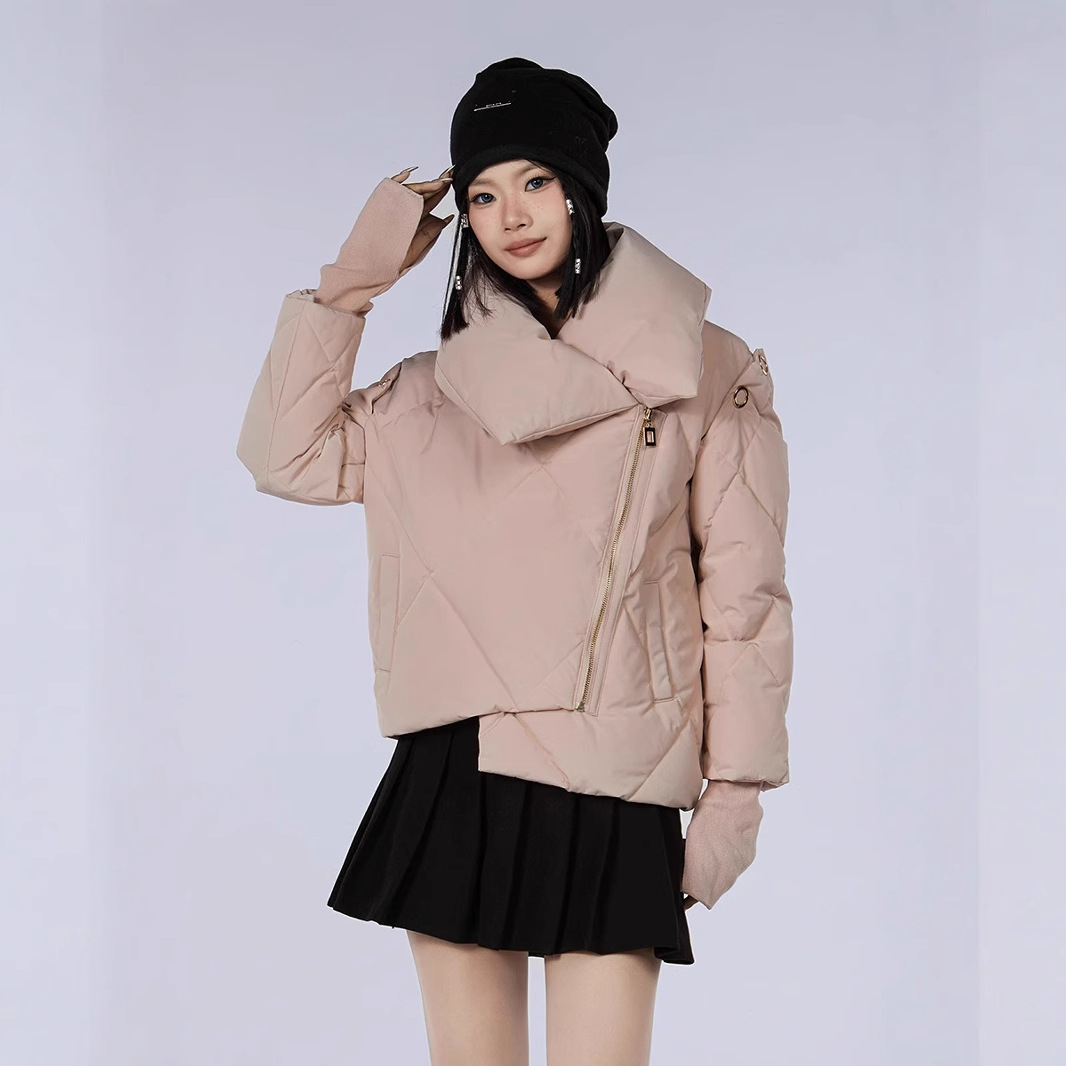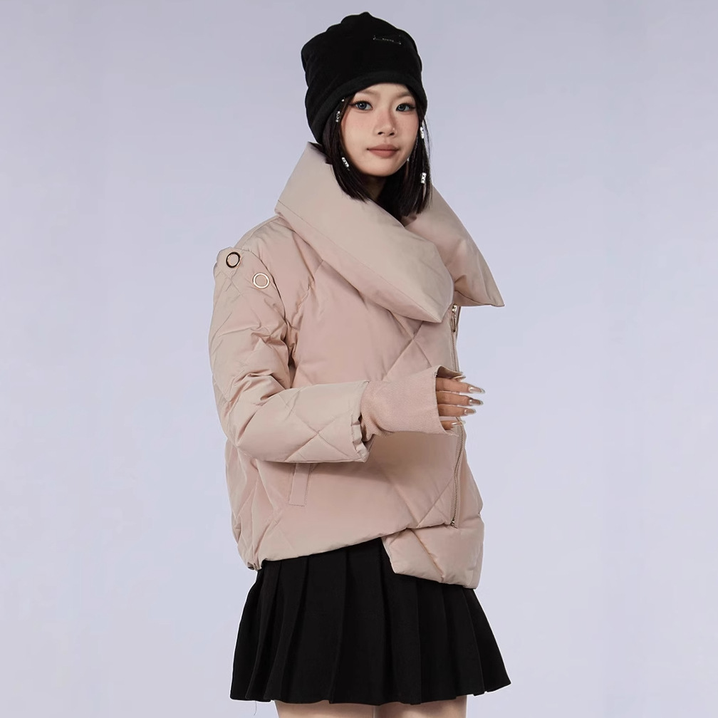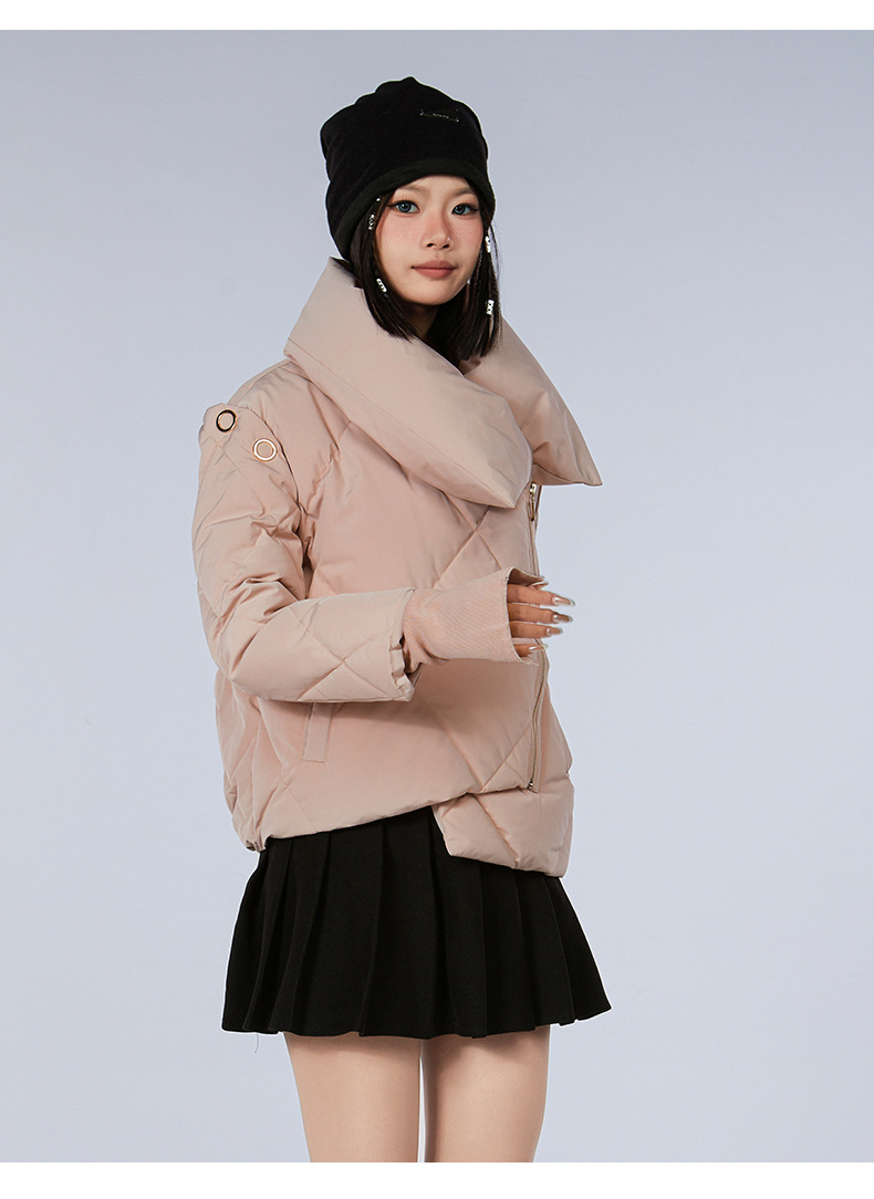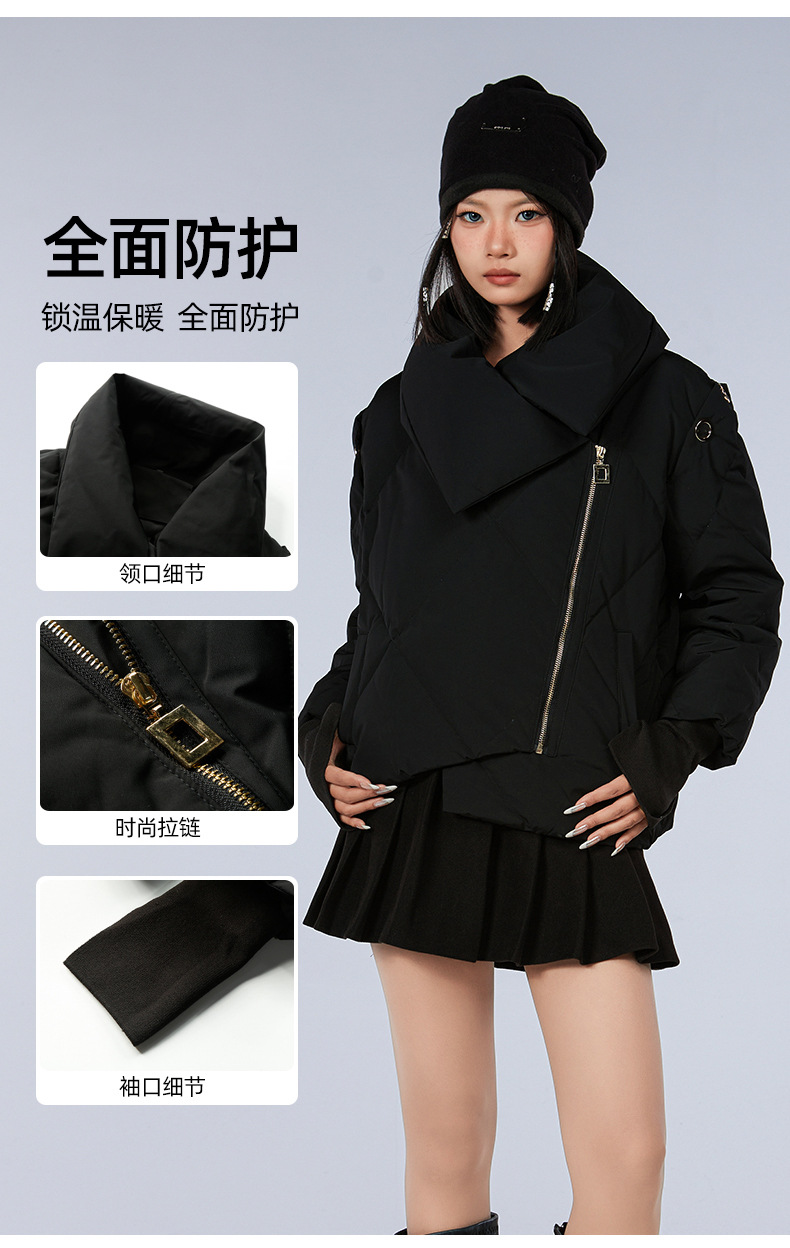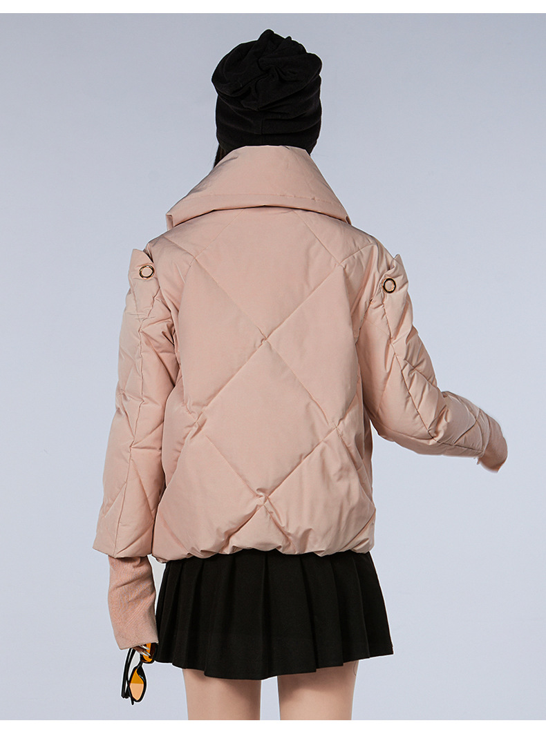 新款甜美风90高端白鸭绒女短款羽绒服保暖防寒外套欧美翻领派克服