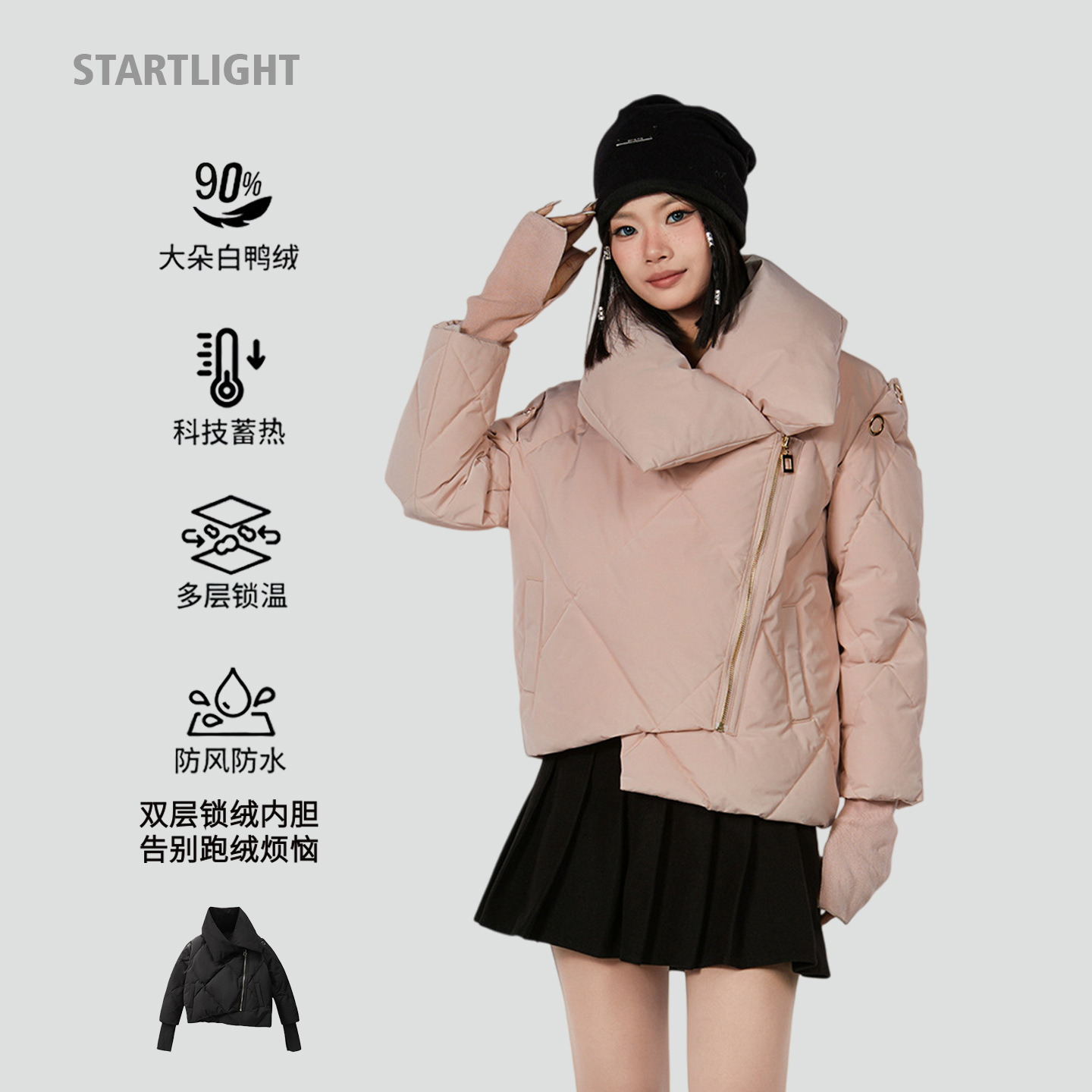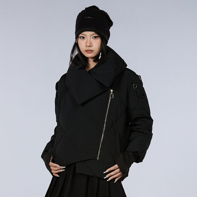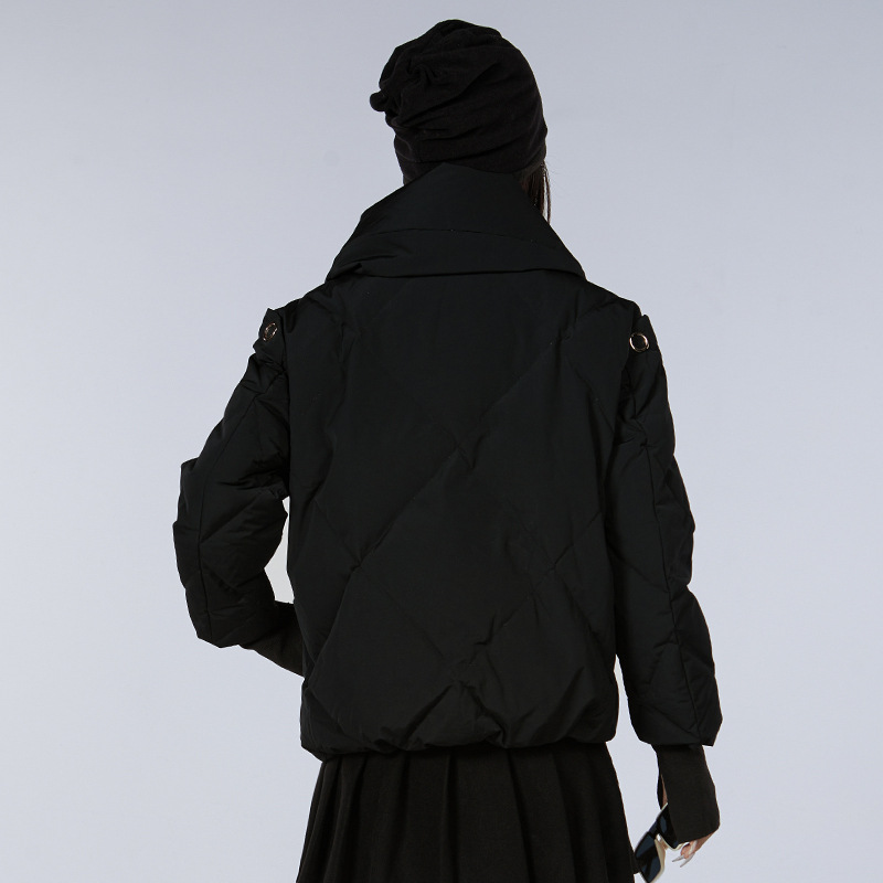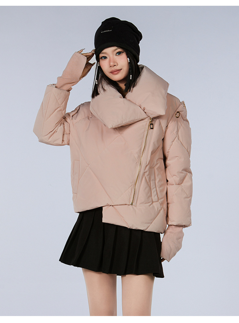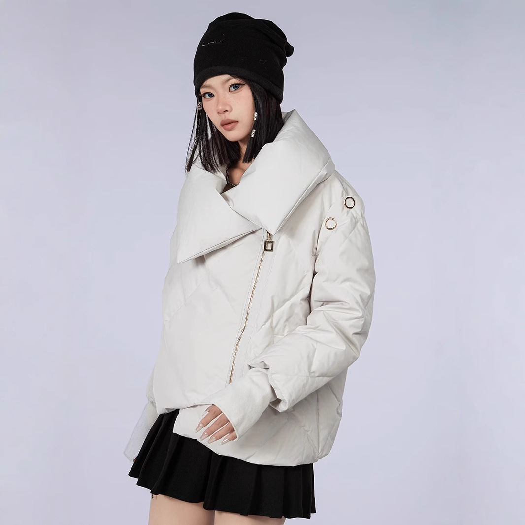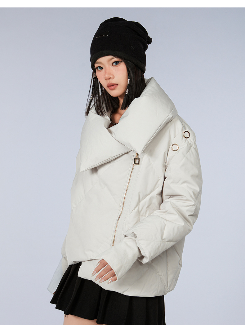 新款甜美风90高端白鸭绒女短款羽绒服保暖防寒外套欧美翻领派克服