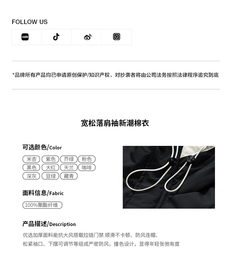 冬季连帽棉衣加厚保暖潮流休闲宽松羽绒服户外运动防风面包服批发
