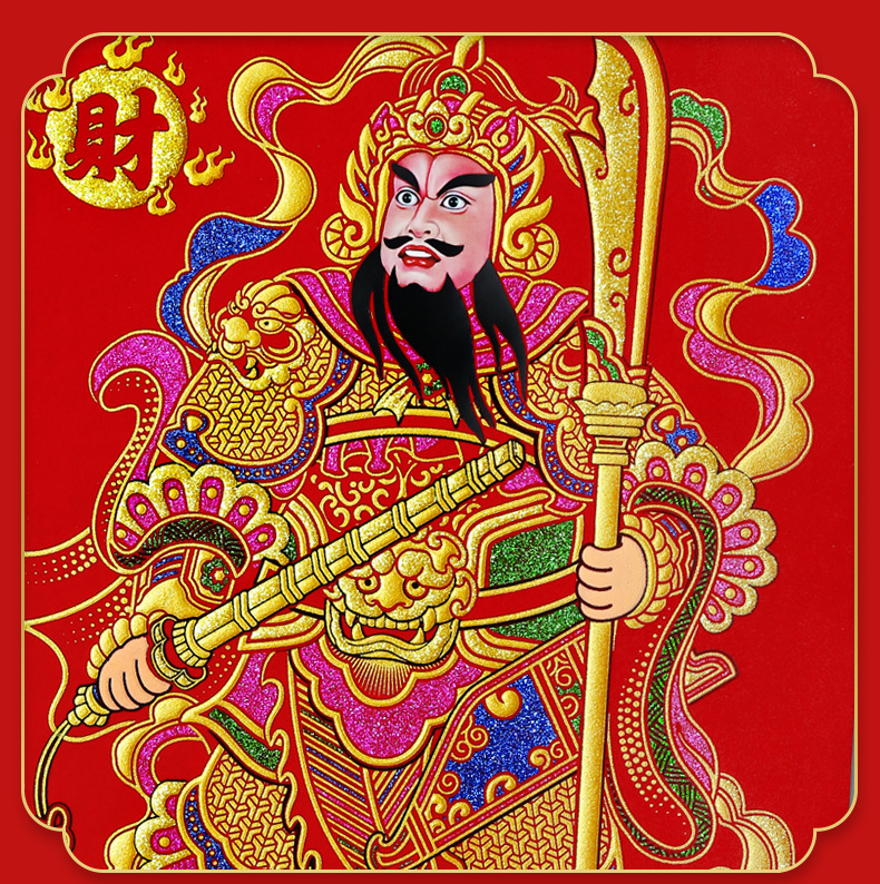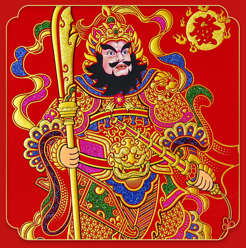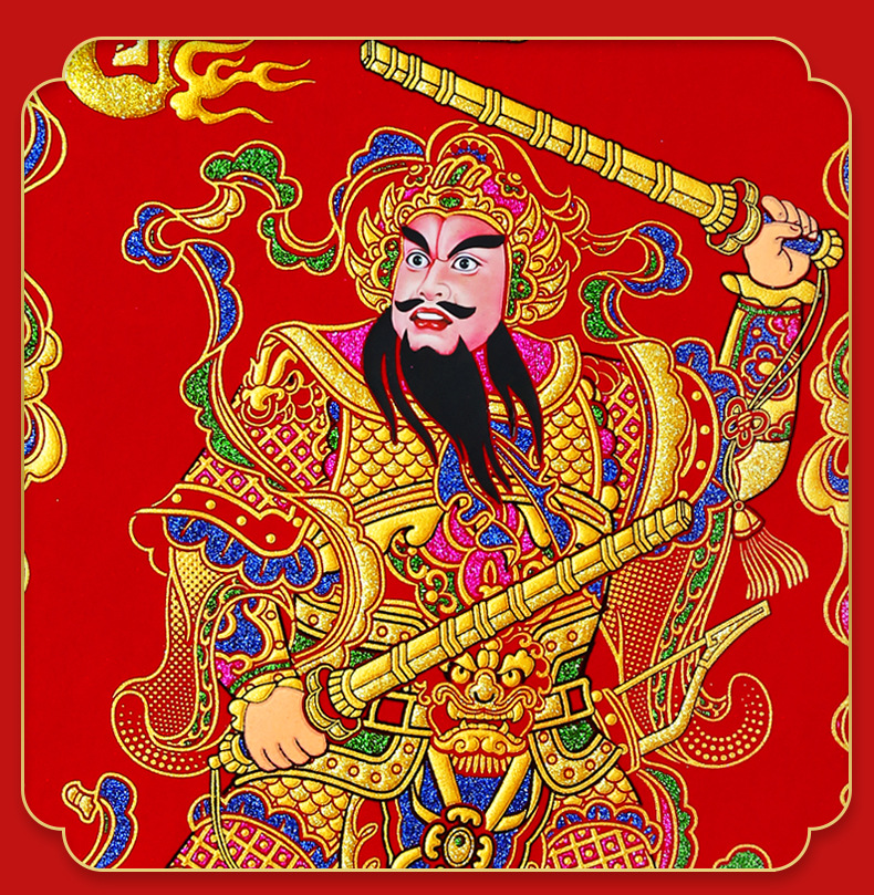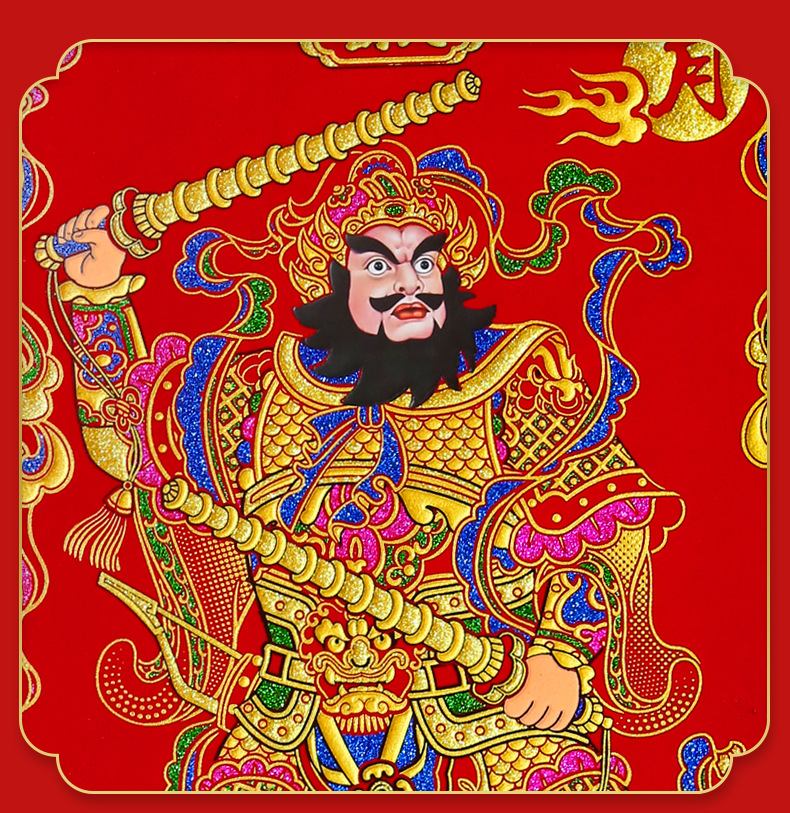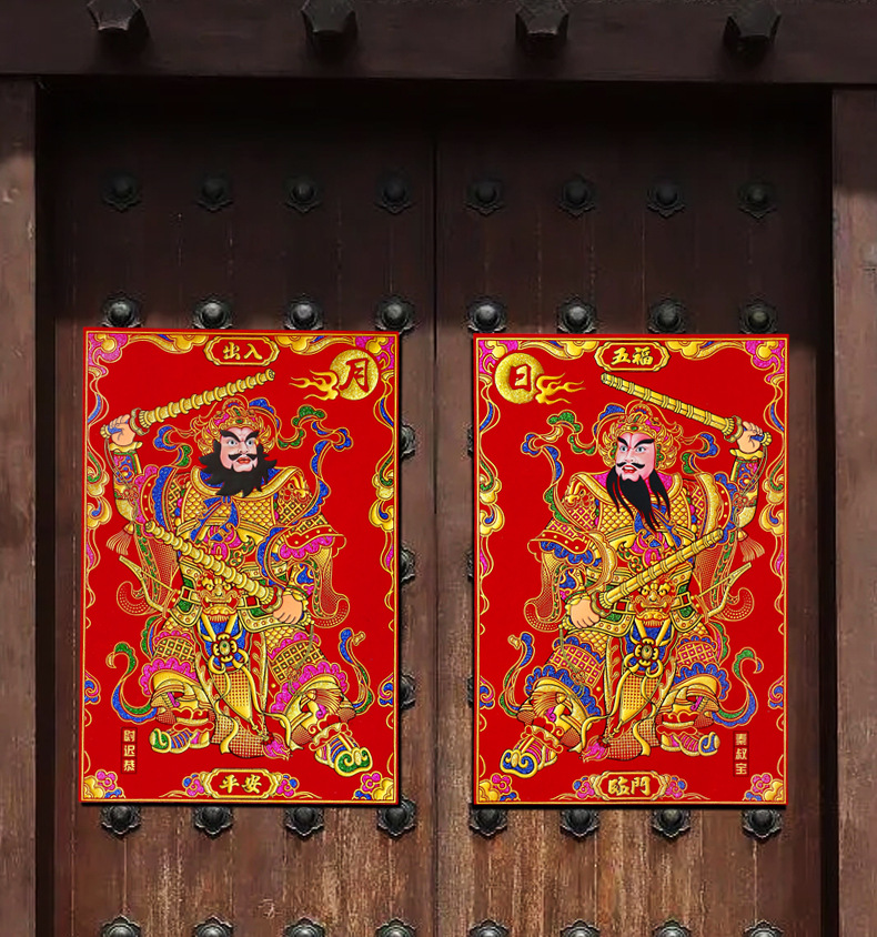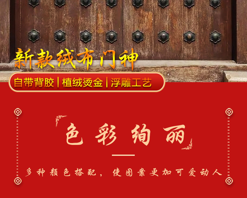 2025蛇年浮雕烫金门神对贴全背胶绒布秦琼尉迟恭财神年画批发发财