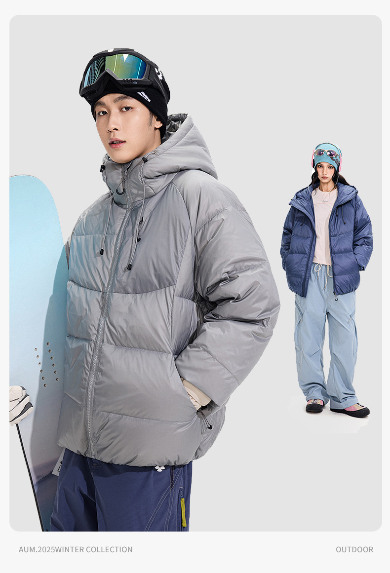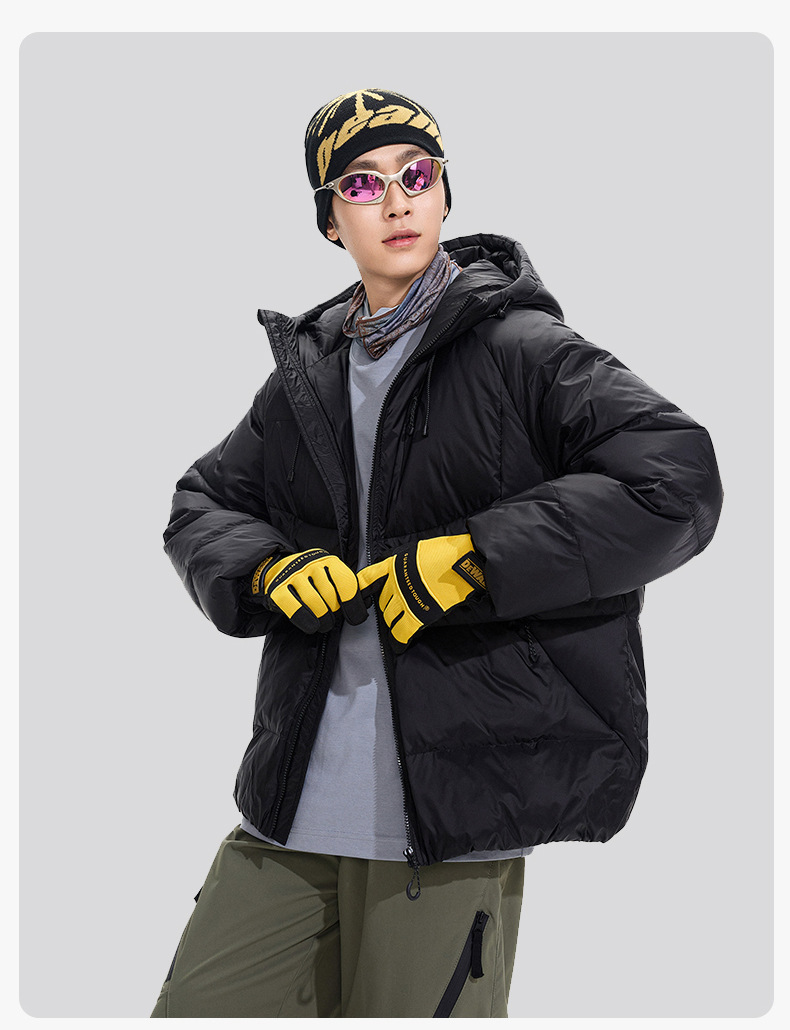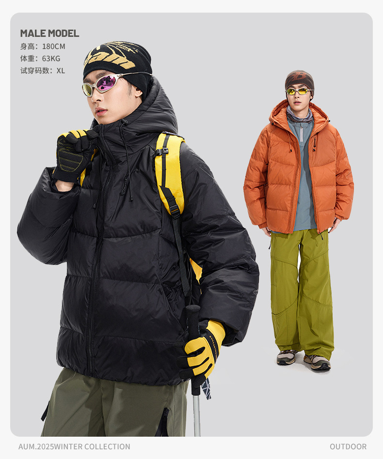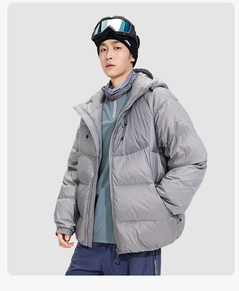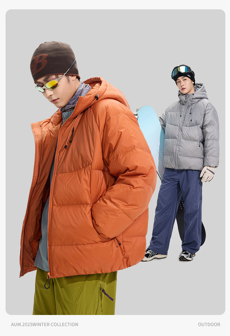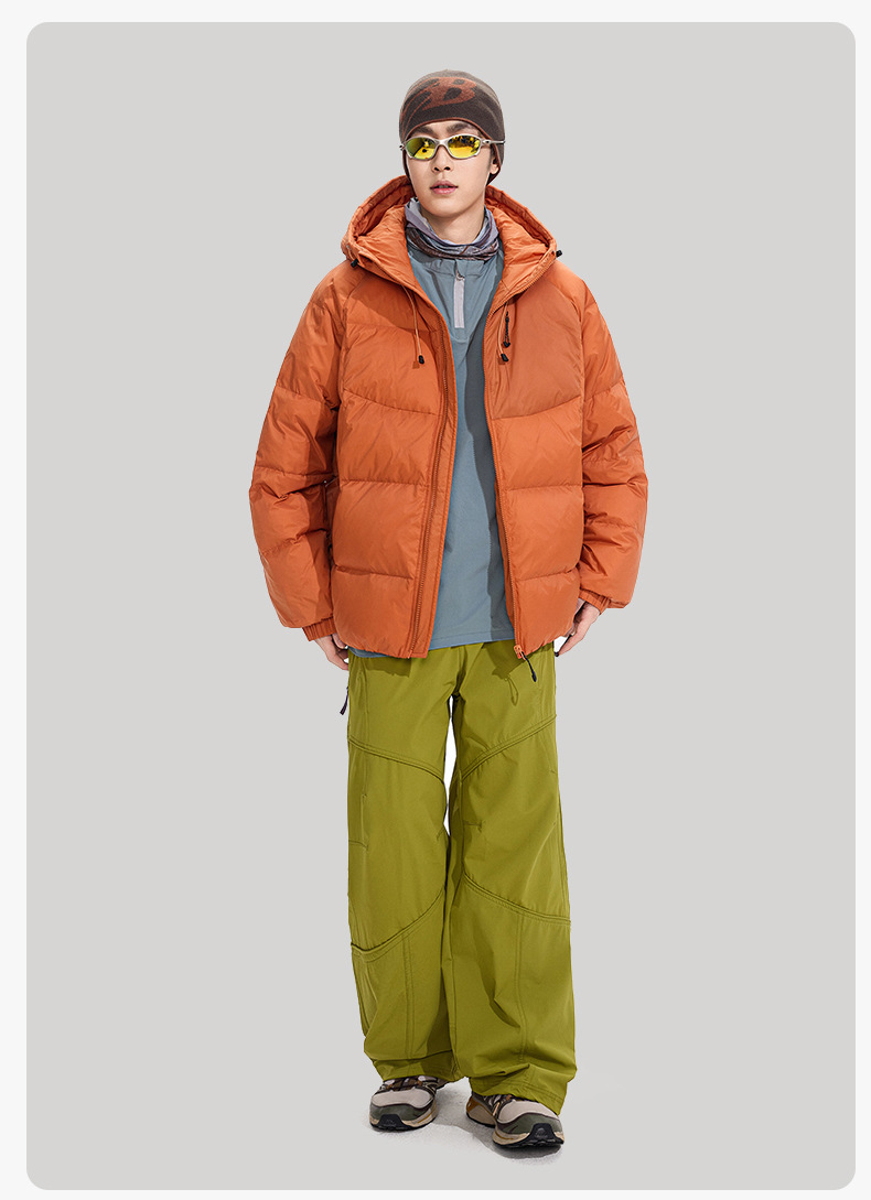 ACU男装|防风尼龙金属丝羽绒服日系户外休闲纯色保暖廓形连帽外套