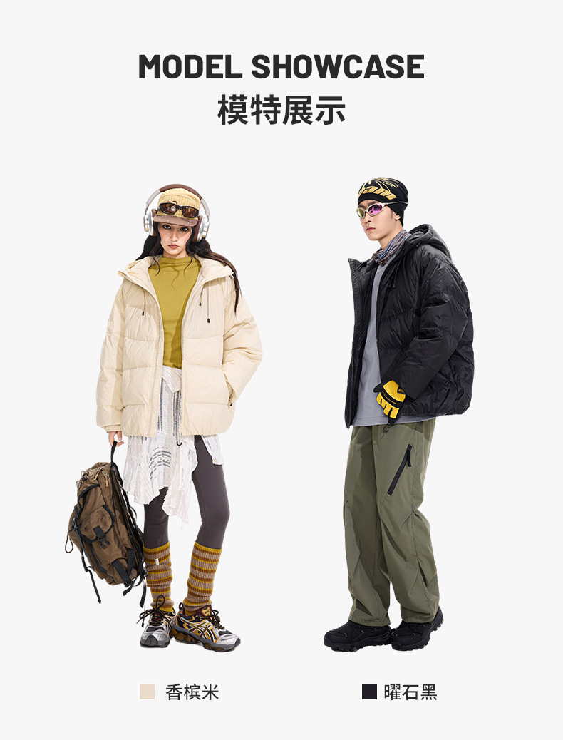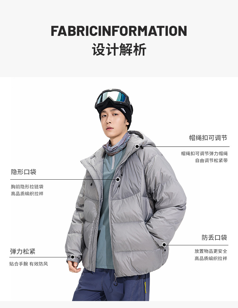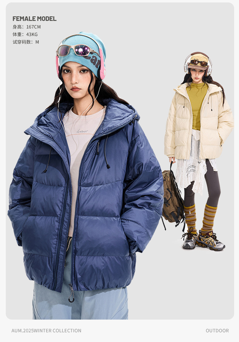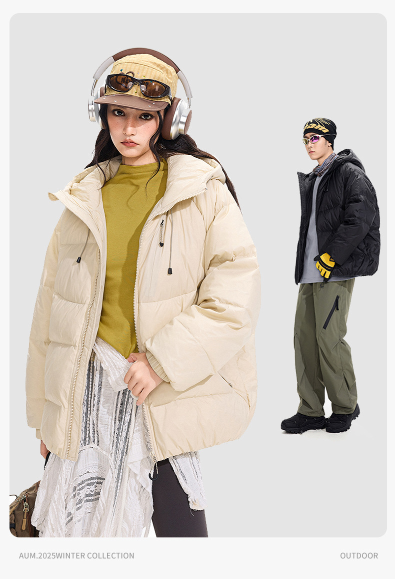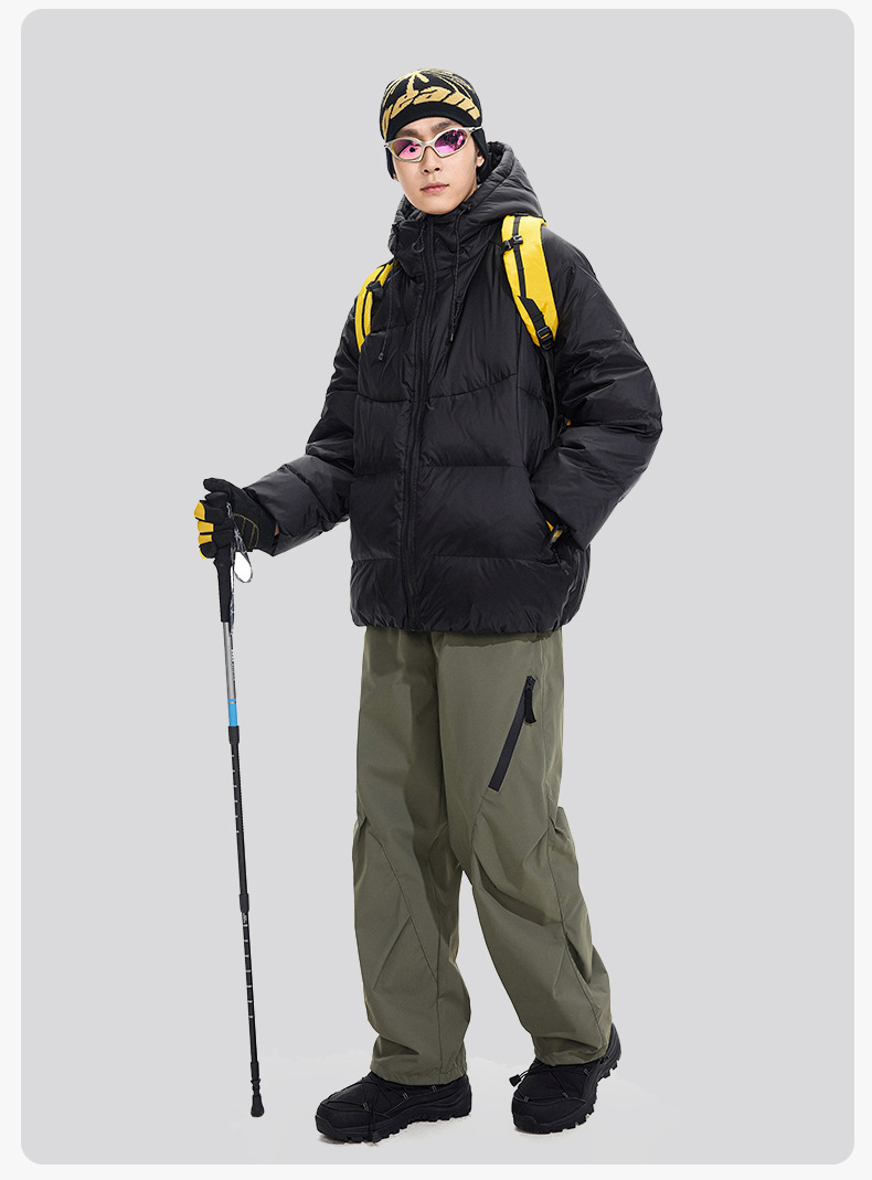 ACU男装|防风尼龙金属丝羽绒服日系户外休闲纯色保暖廓形连帽外套