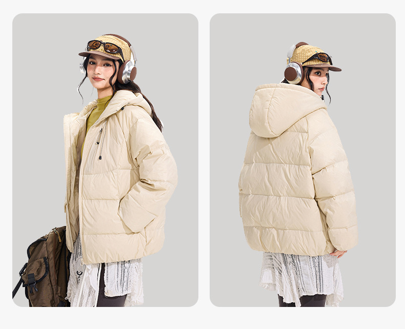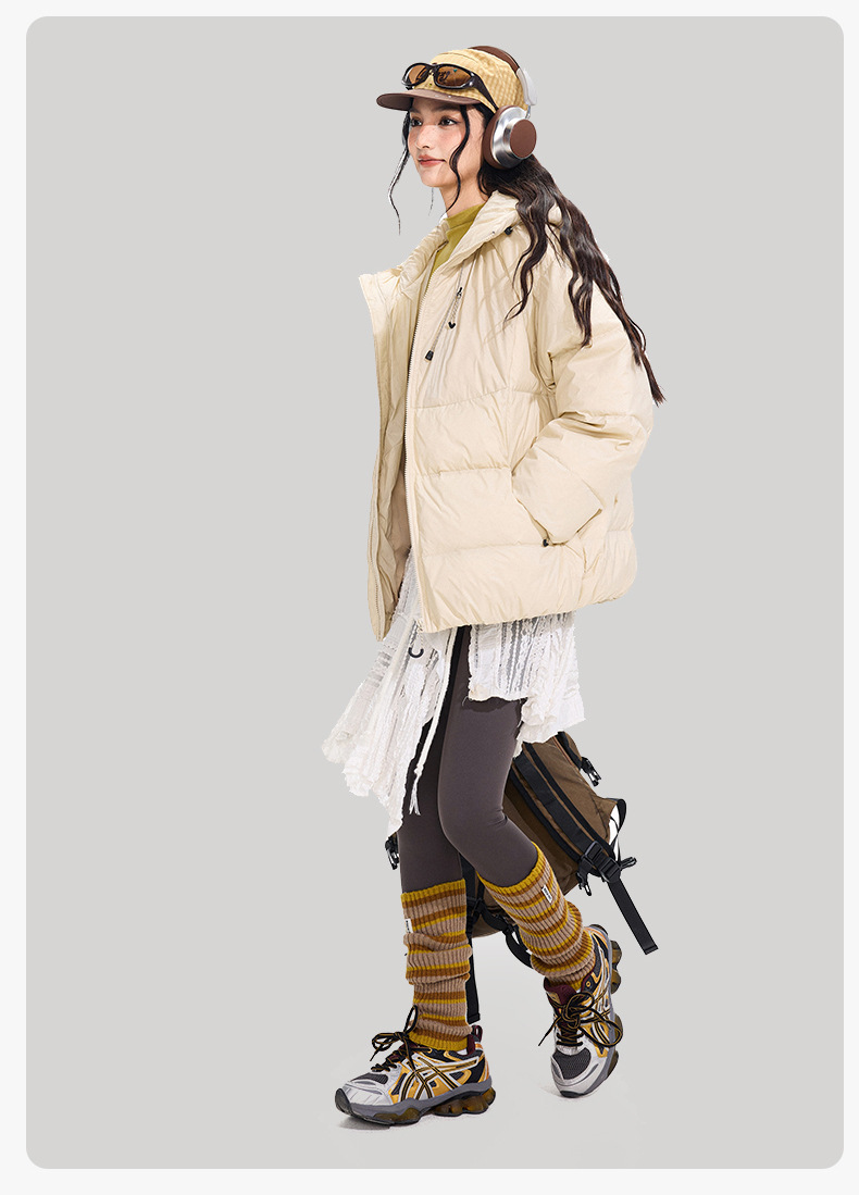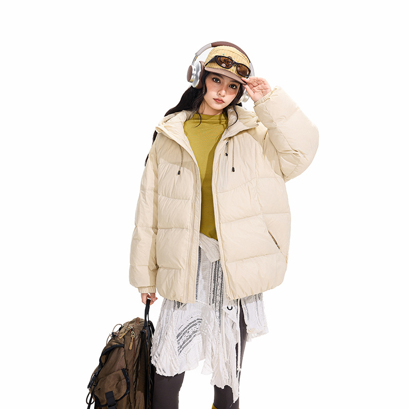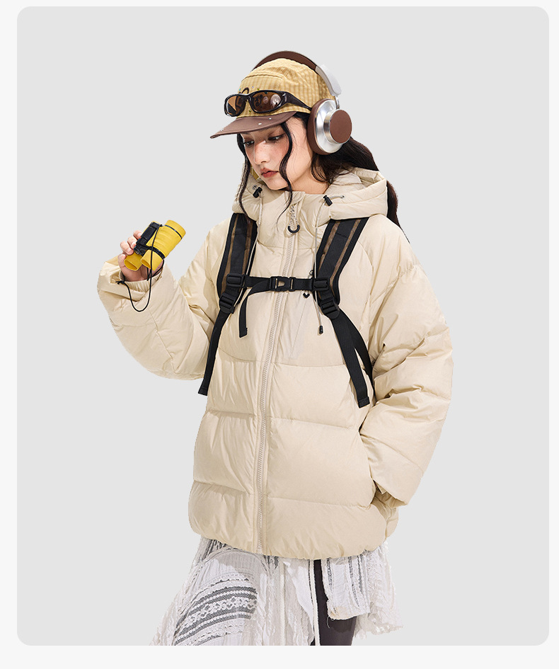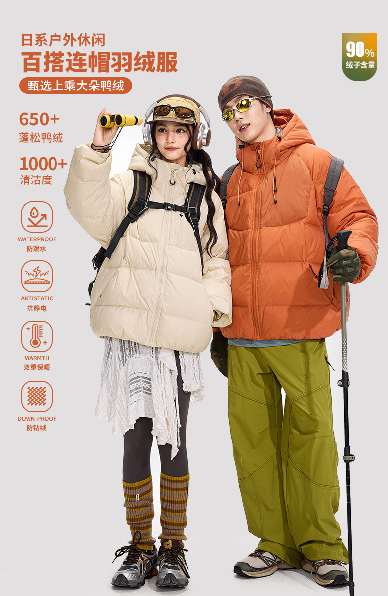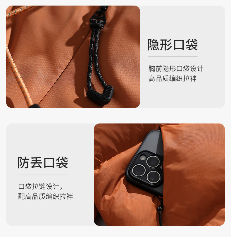 ACU男装|防风尼龙金属丝羽绒服日系户外休闲纯色保暖廓形连帽外套