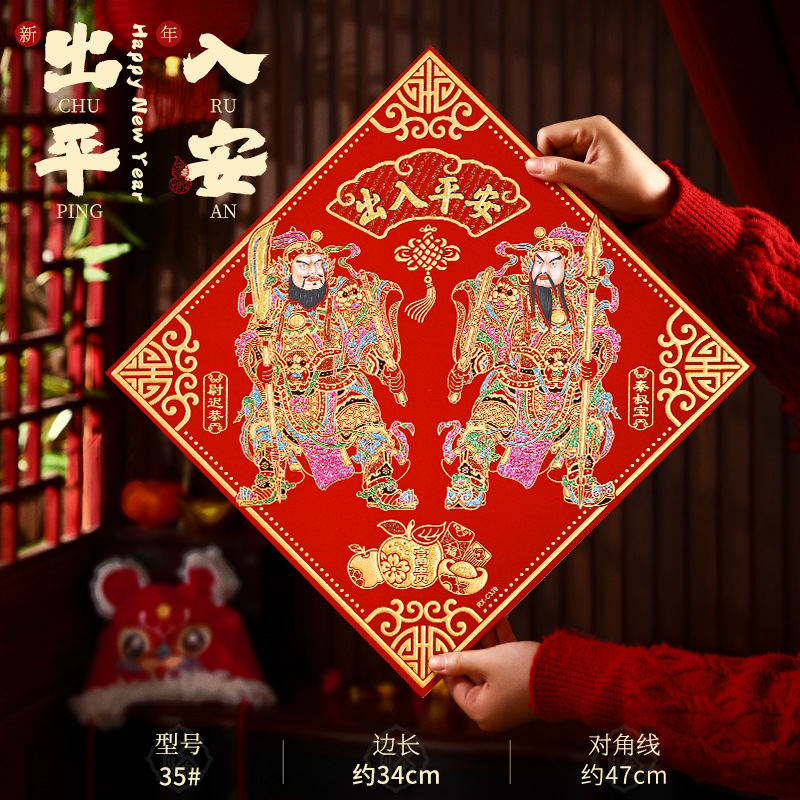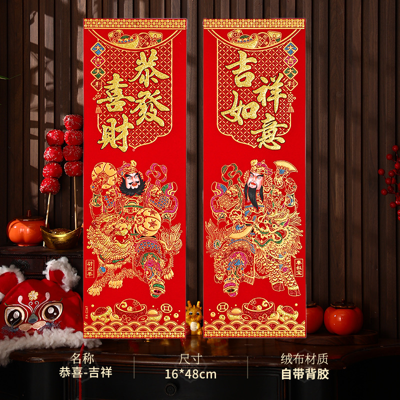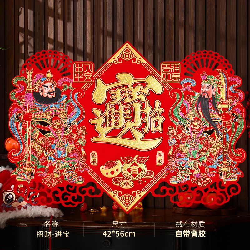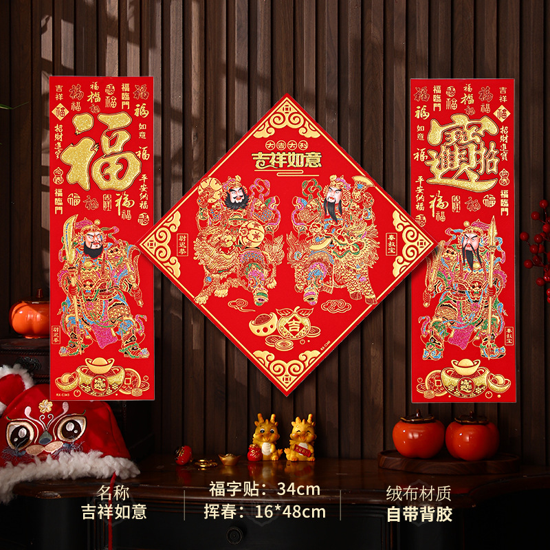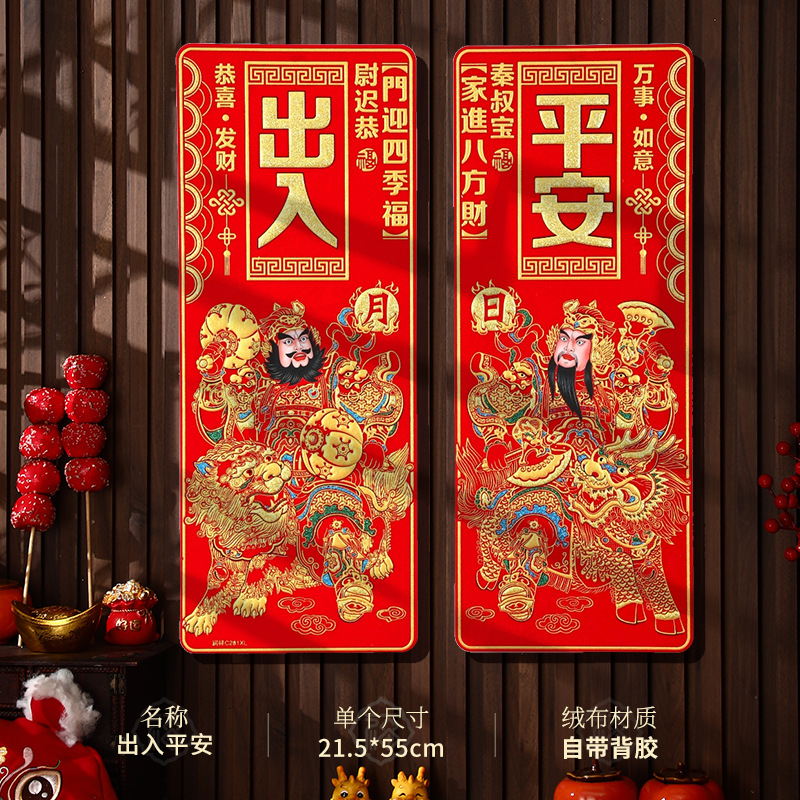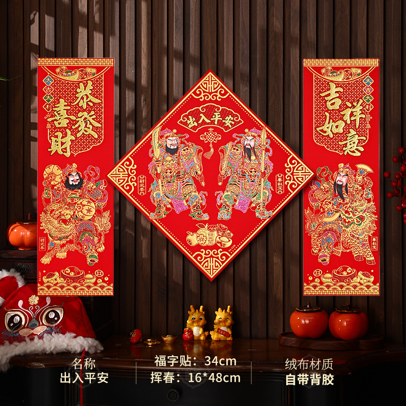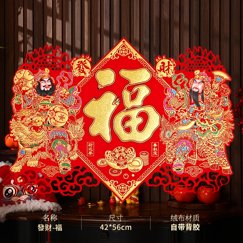年画新款门神福字2026新年绒布门画过年过年防盗大门马年春节门贴