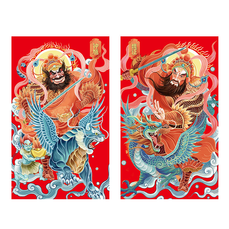 门神门贴钟馗魏征铜板纸门神覆膜防水耐晒新年春节国潮创意年画