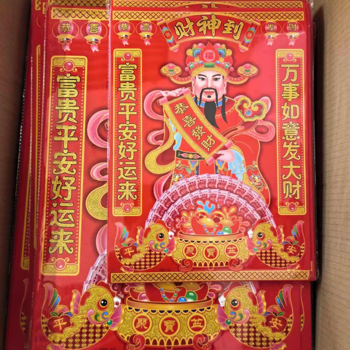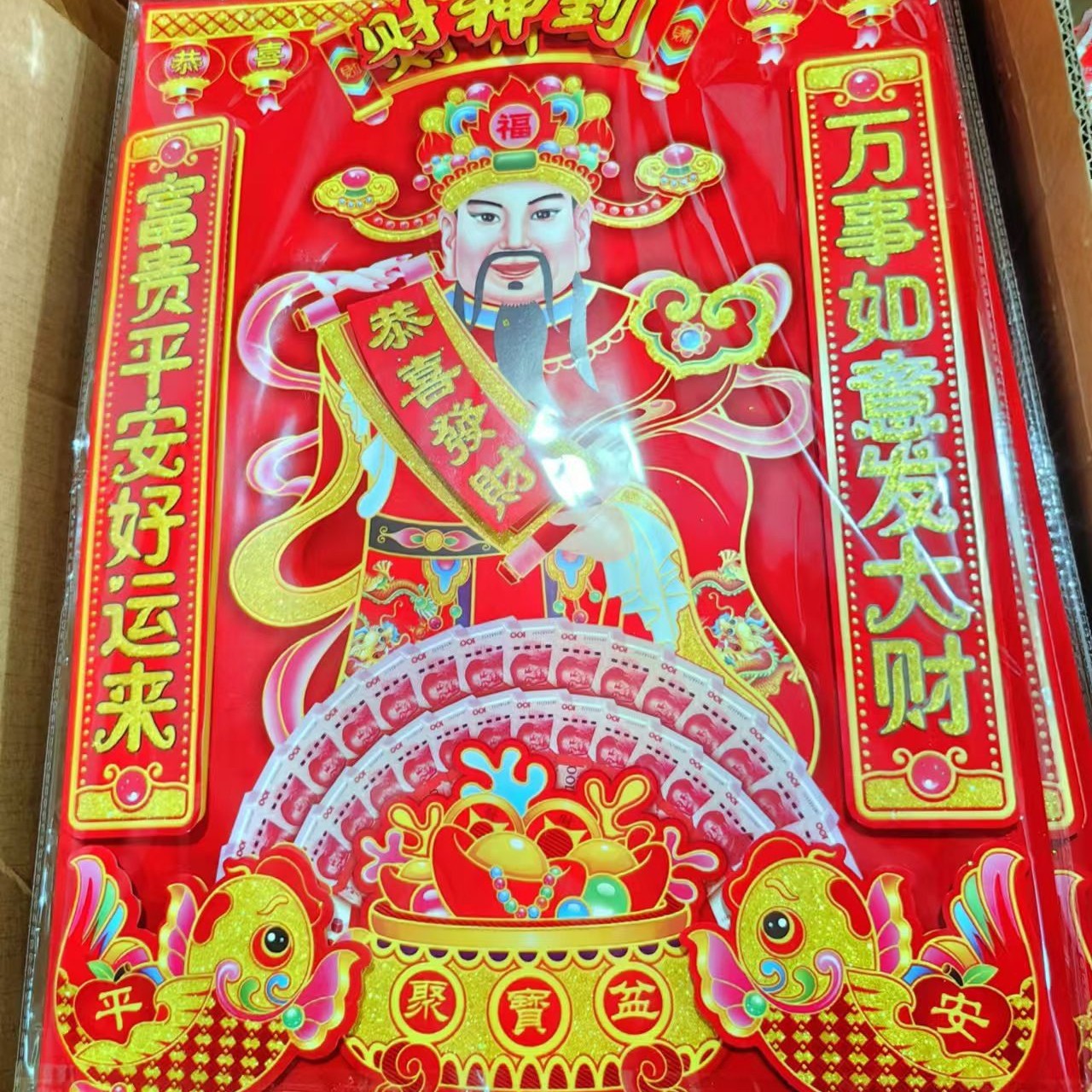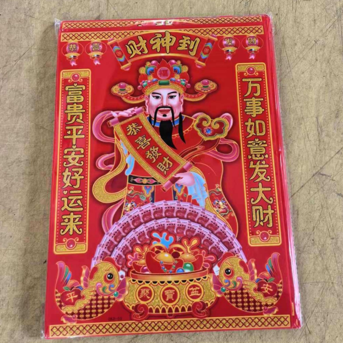 2026年春节过年财神到福字贴纸新款门神财神铜板纸门神年画批发
