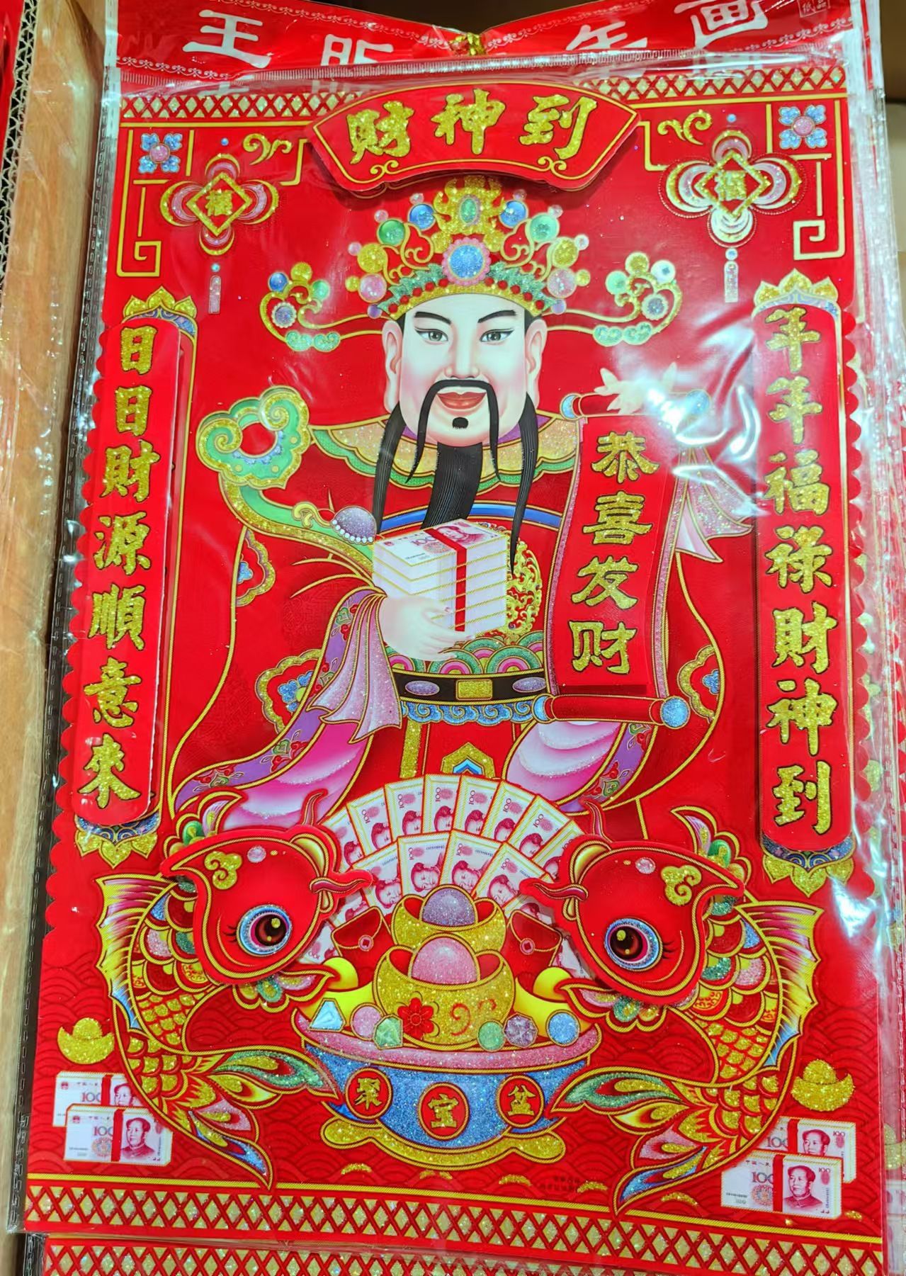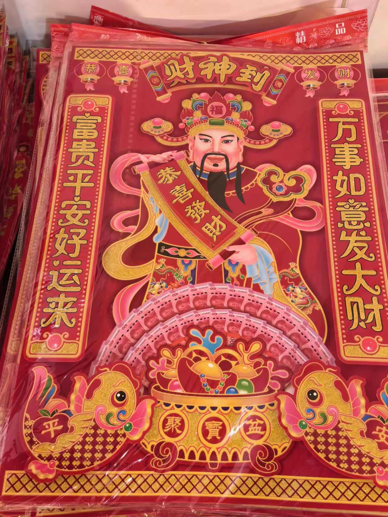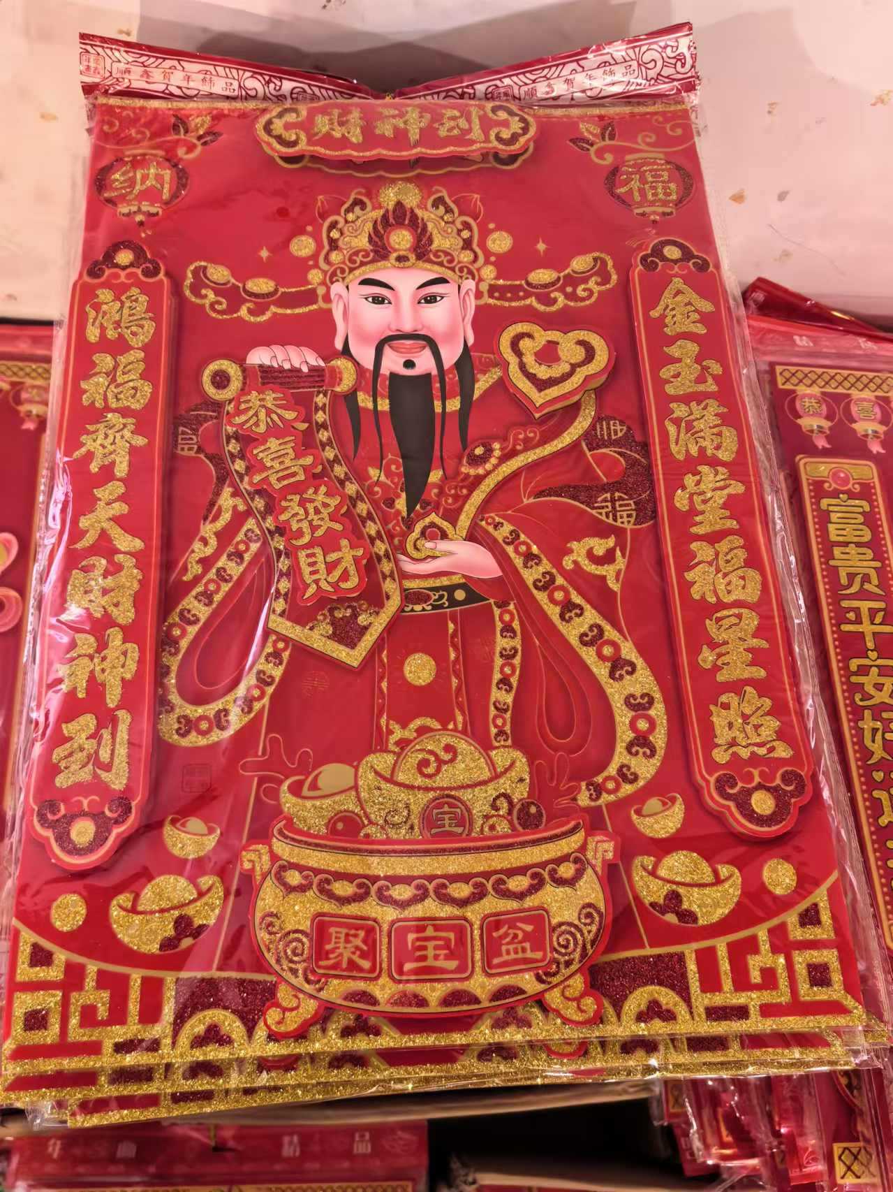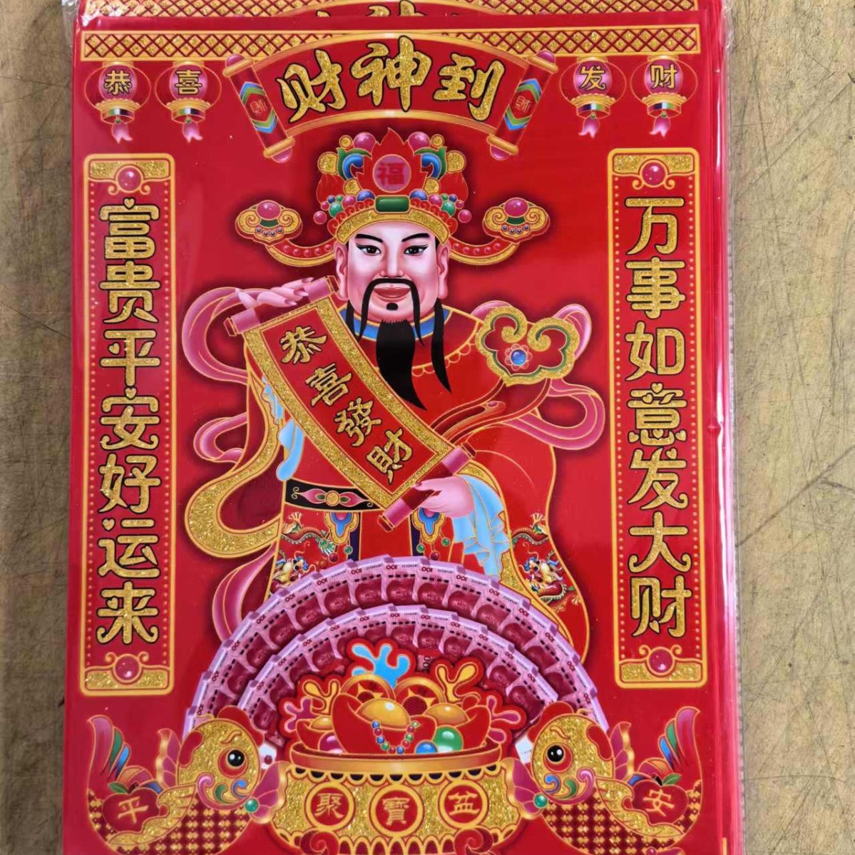 2026年春节过年财神到福字贴纸新款门神财神铜板纸门神年画批发