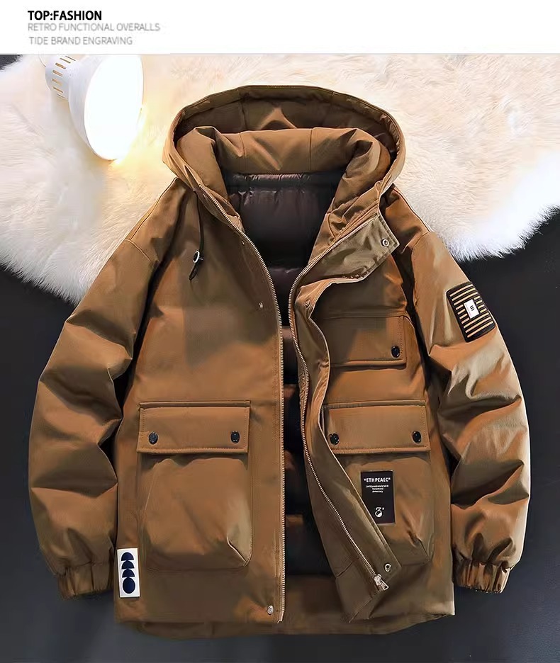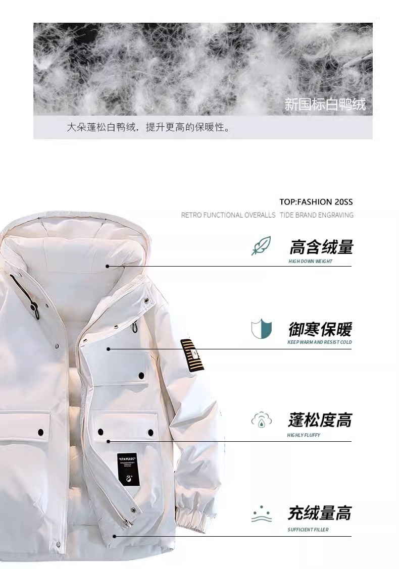 羽绒服男士冬季2025新款白鸭绒加厚防寒保暖青少年连帽工装外套男