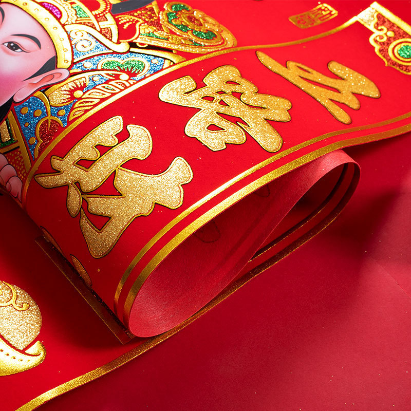 2026年财神爷挂画贴画卷轴门神绒布新年用品年画门贴批发财神到