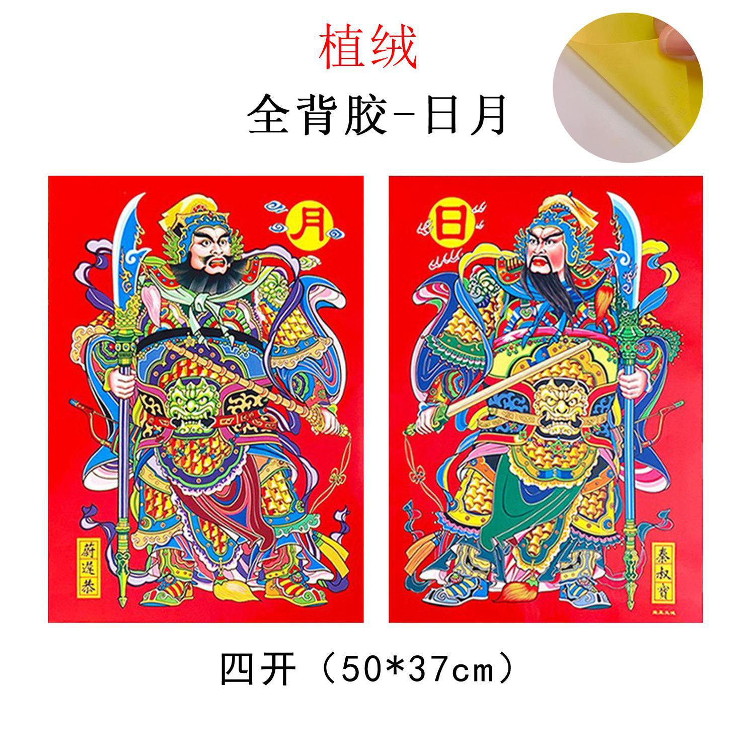 门神日月秦叔宝2026马年新款植绒全背胶防晒不褪色大门新年批发