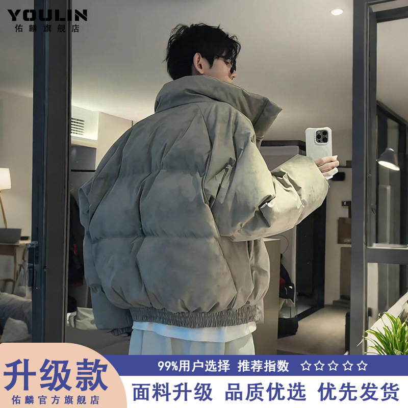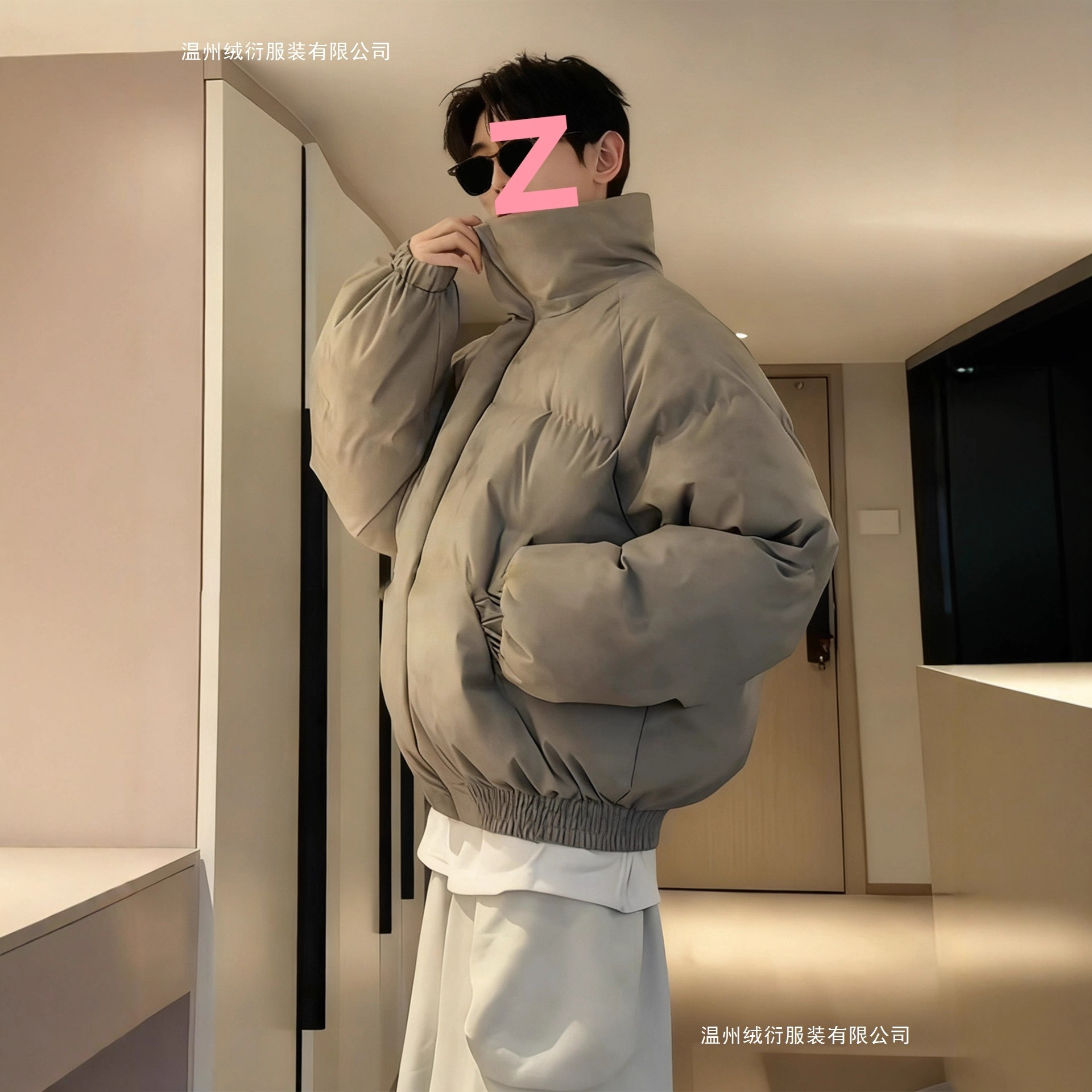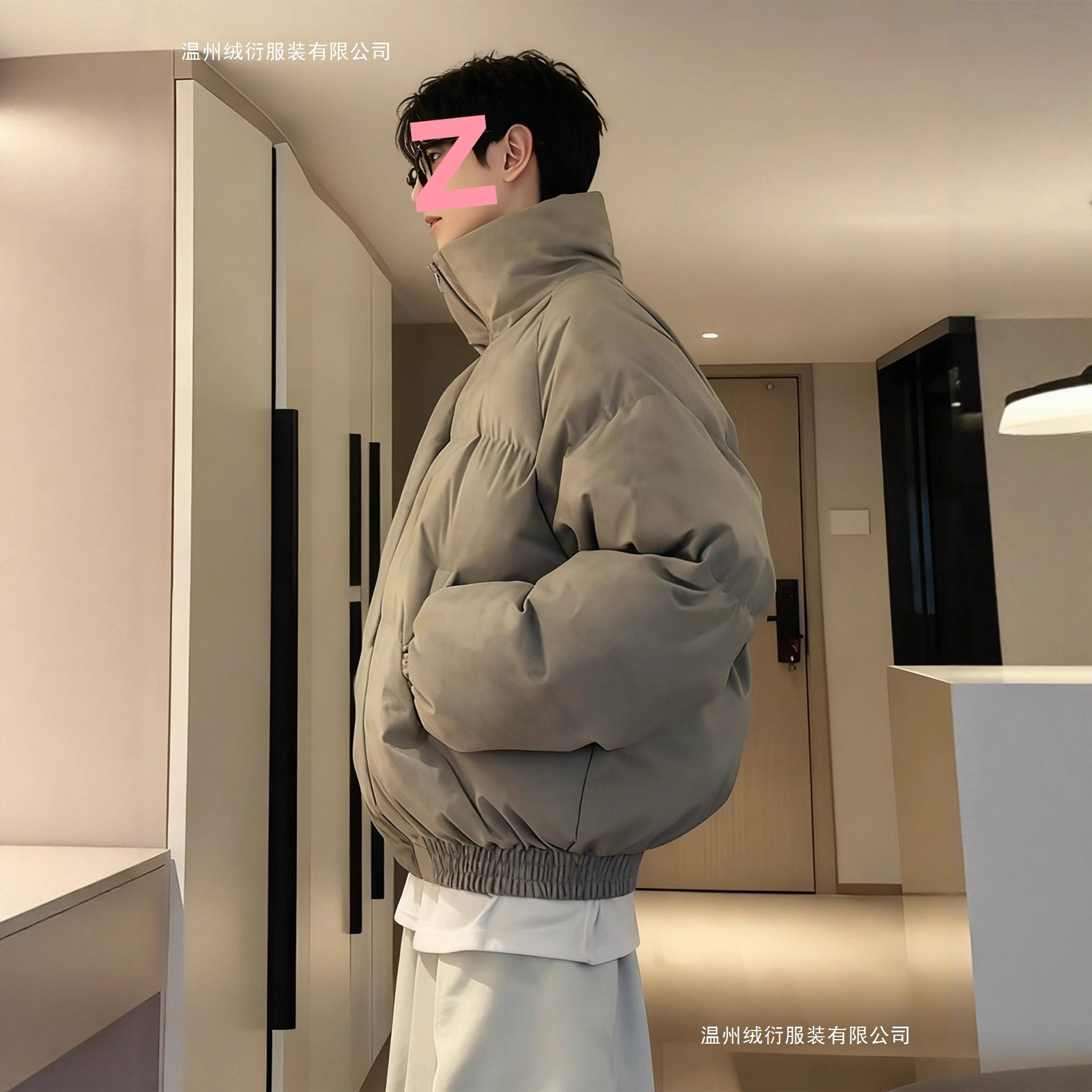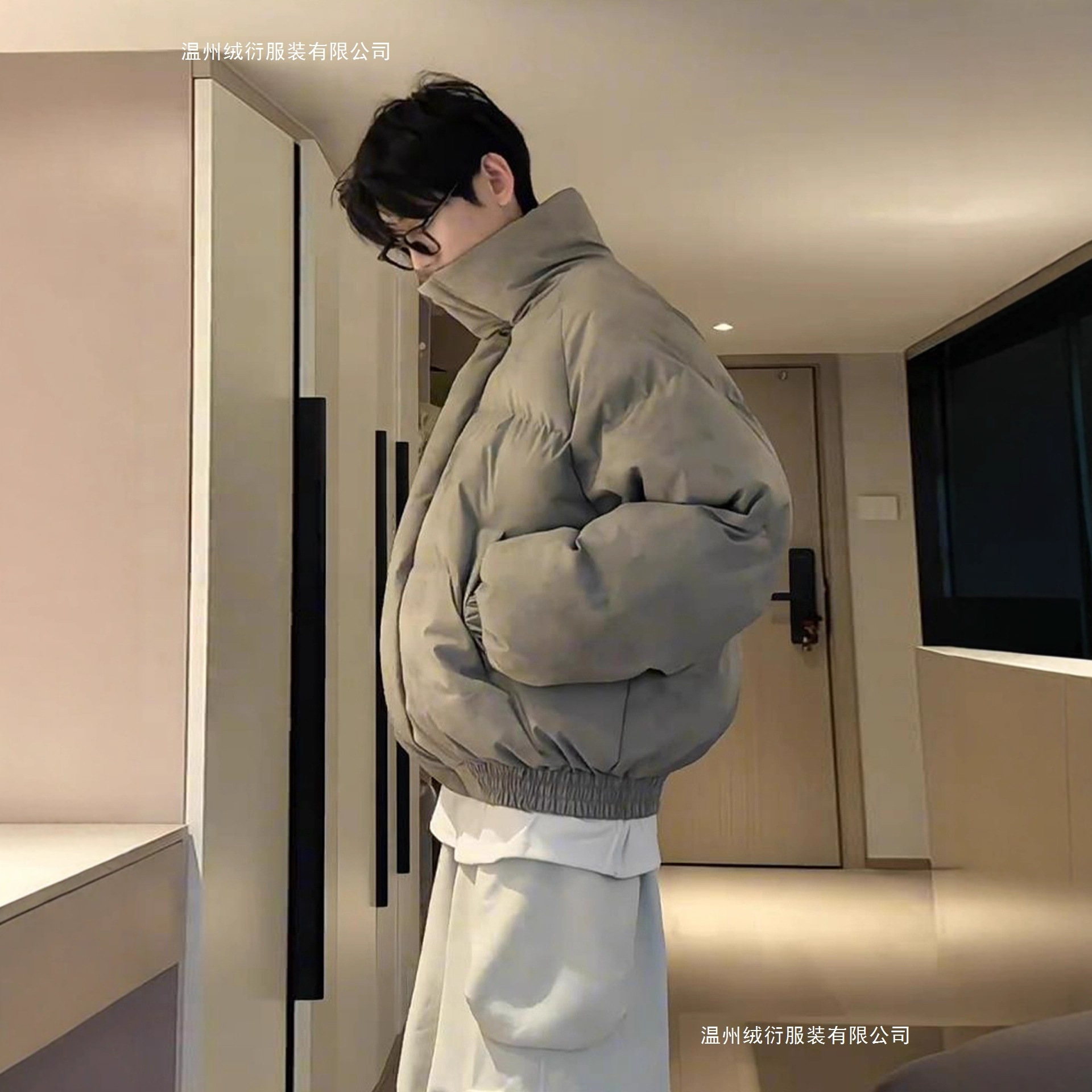 美式短款羽绒服男款冬季高领扎染面包棉质cleanfit高级感棉款外套
