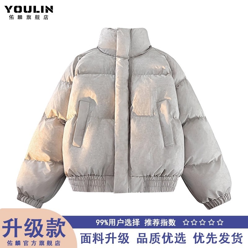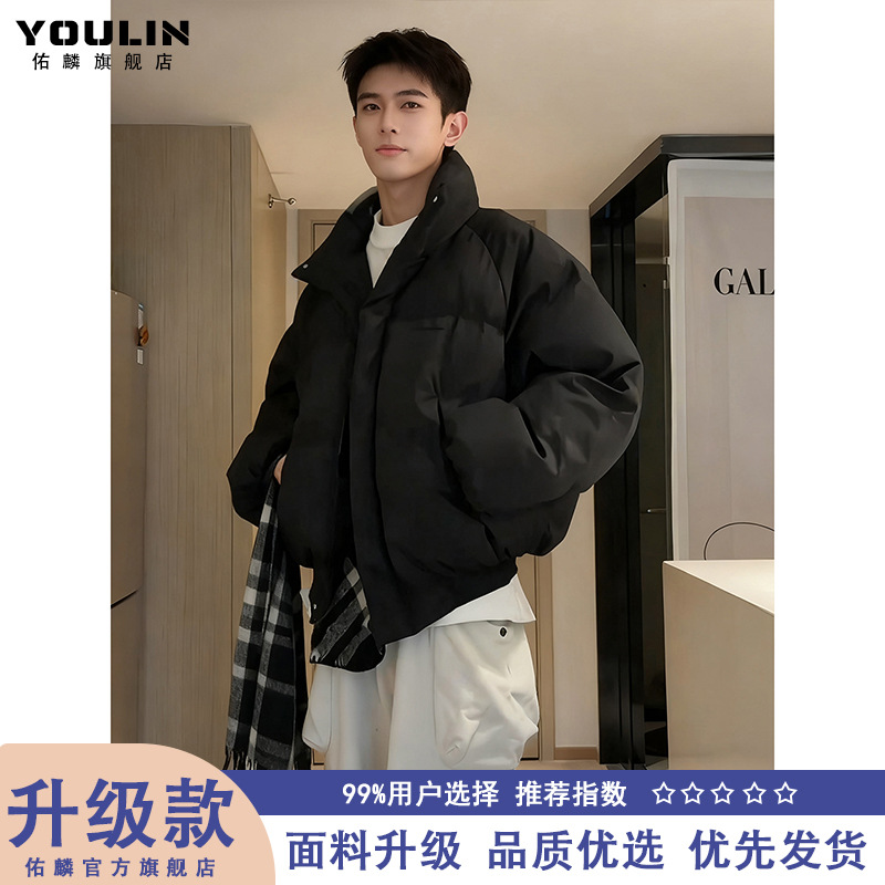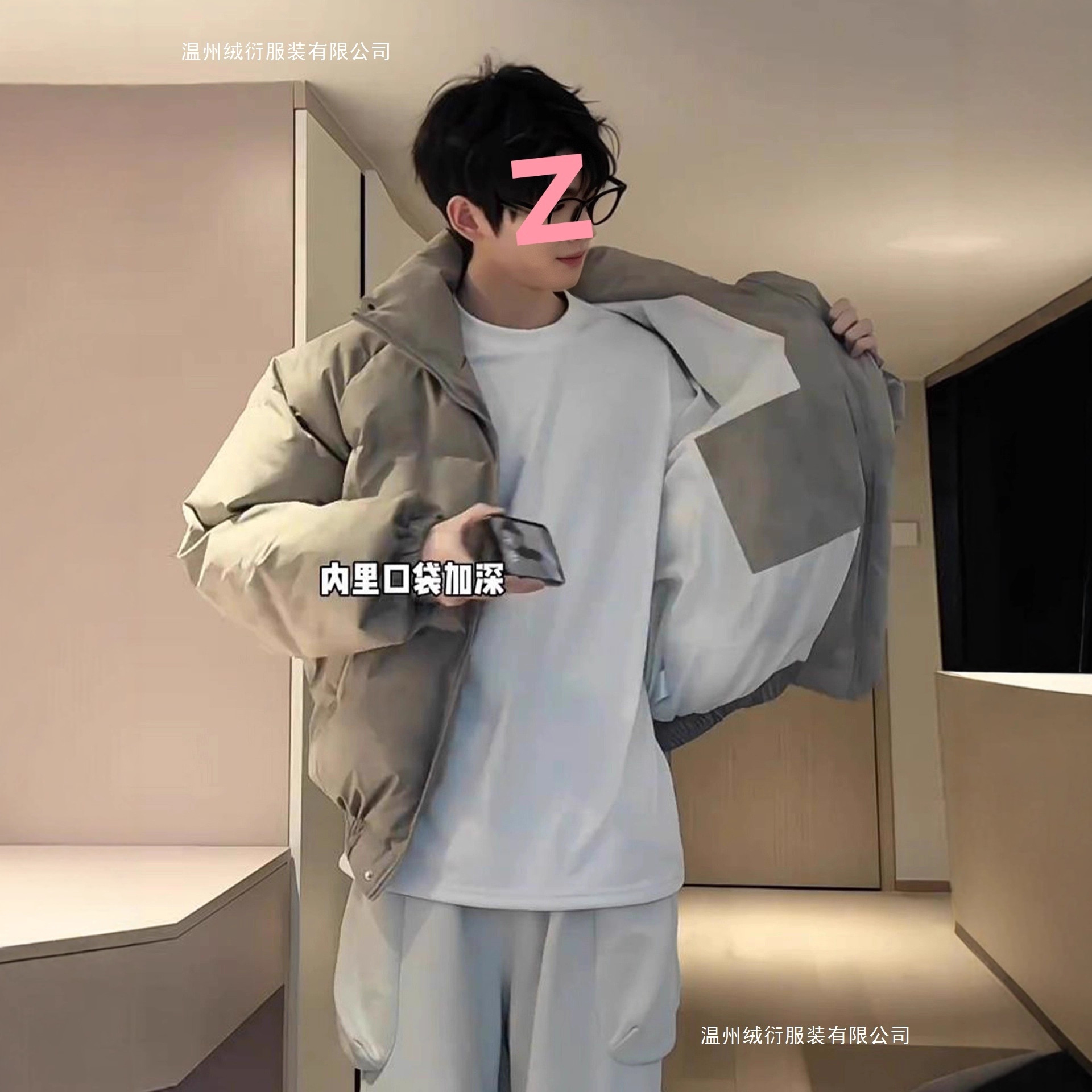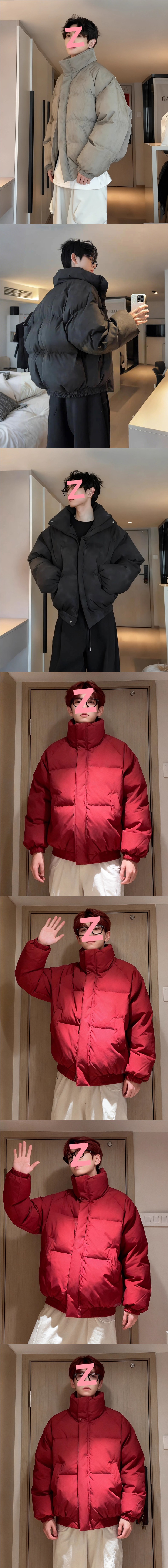 美式短款羽绒服男款冬季高领扎染面包棉质cleanfit高级感棉款外套