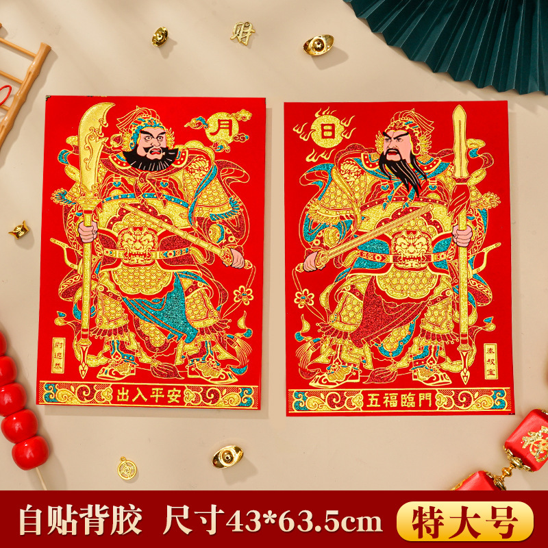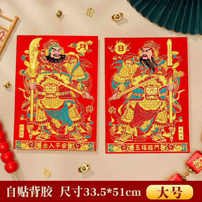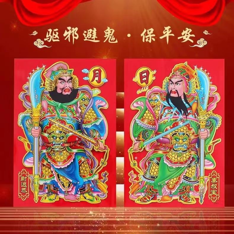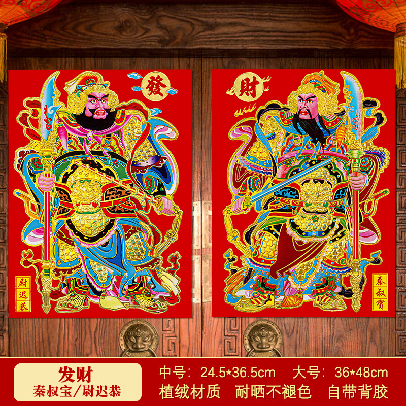 2026马年新春新款烫金门神门贴年画大门门神神像秦叔宝尉迟恭门画
