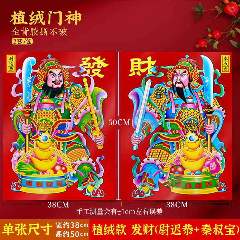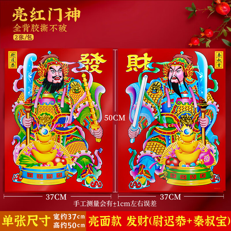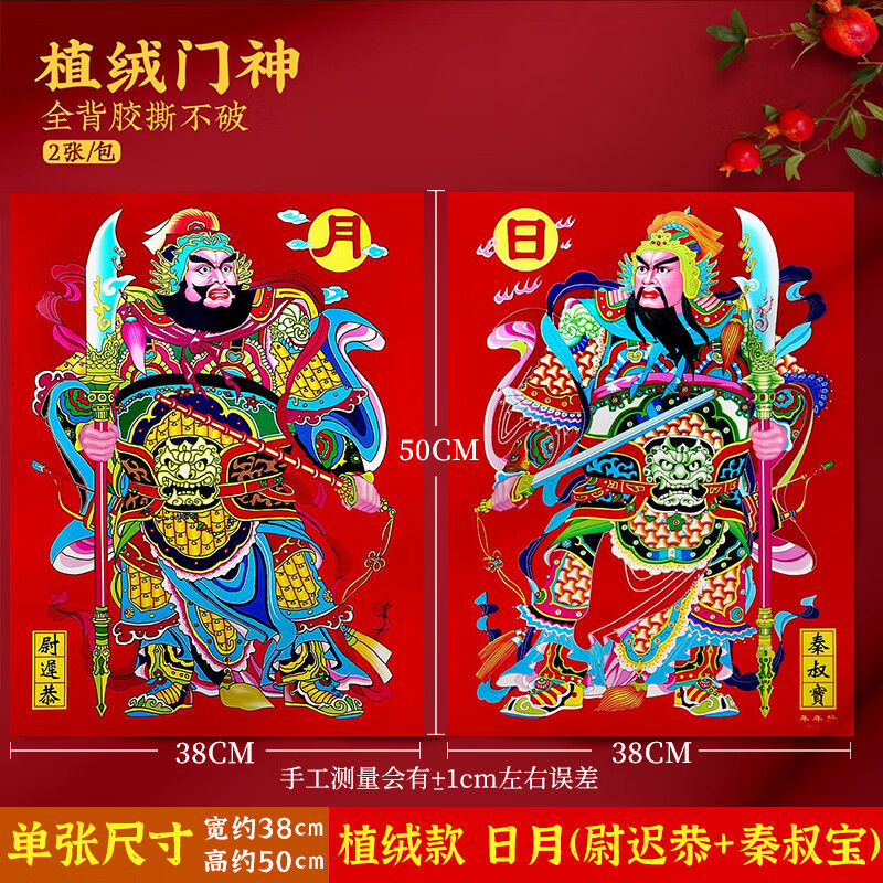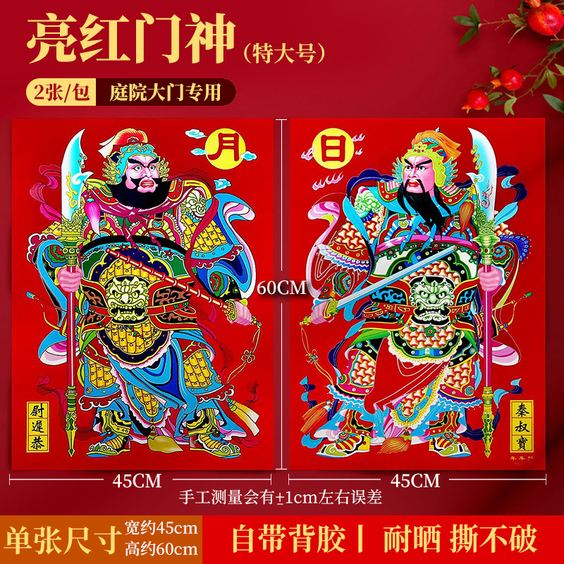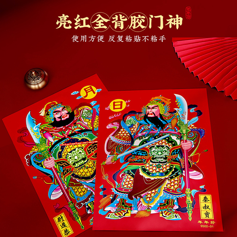 门神门贴新年大门年画镇宅撕不破全背胶秦叔宝尉迟恭日月门神批发
