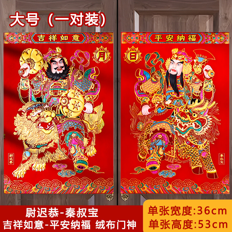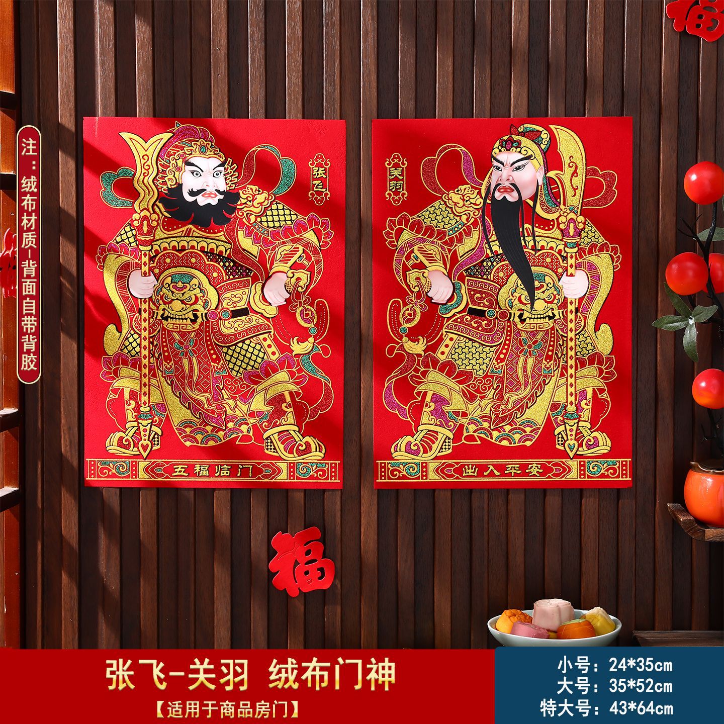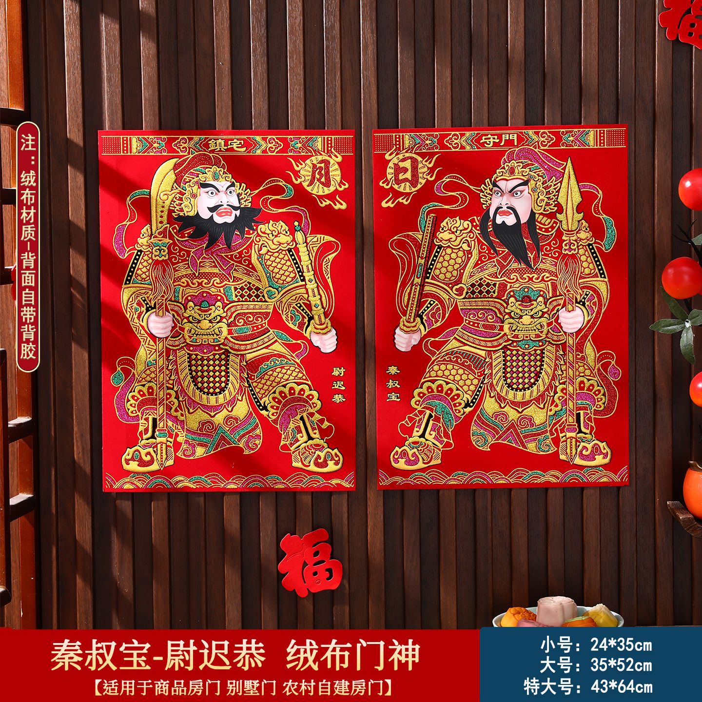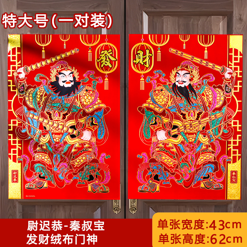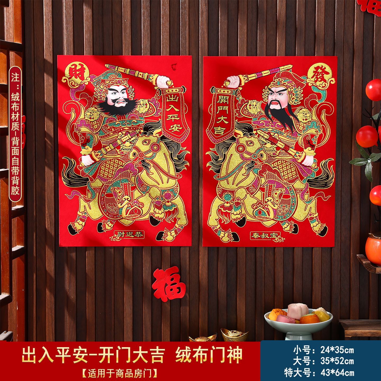 门神贴绒布门贴2026新年大门年画装饰财神爷秦叔宝尉迟恭春节门神