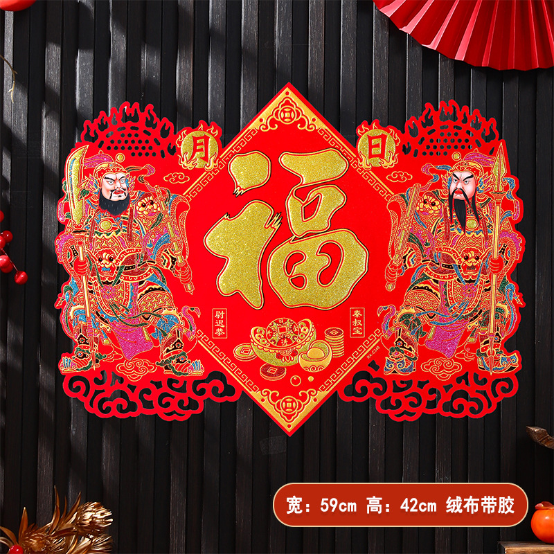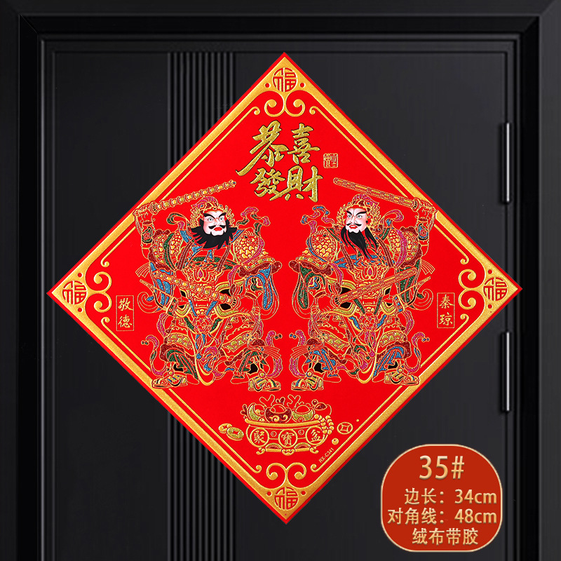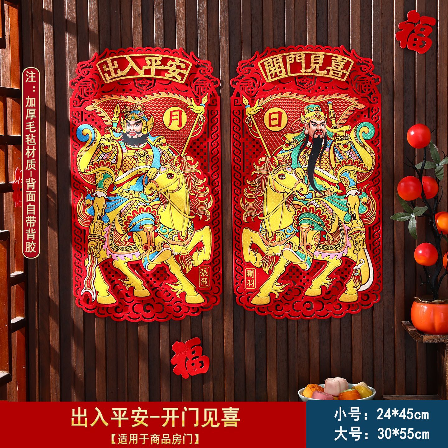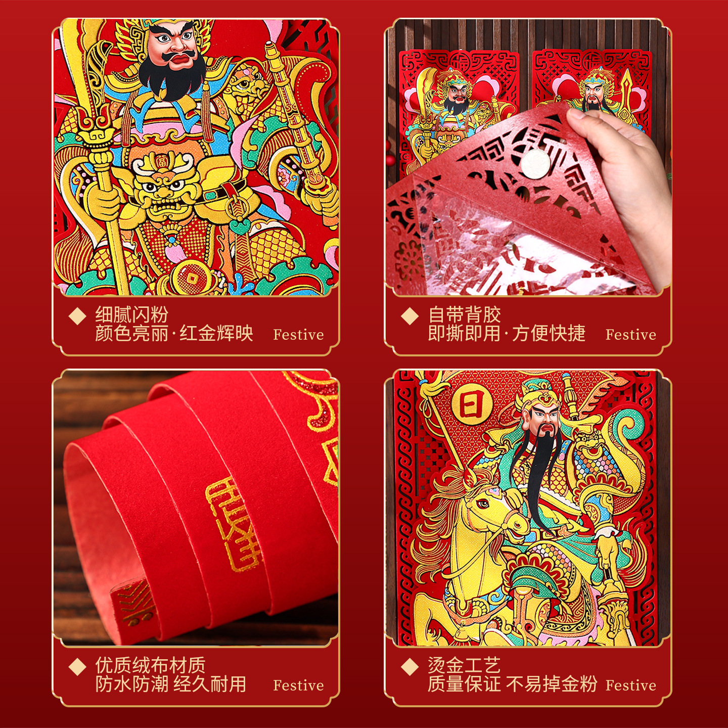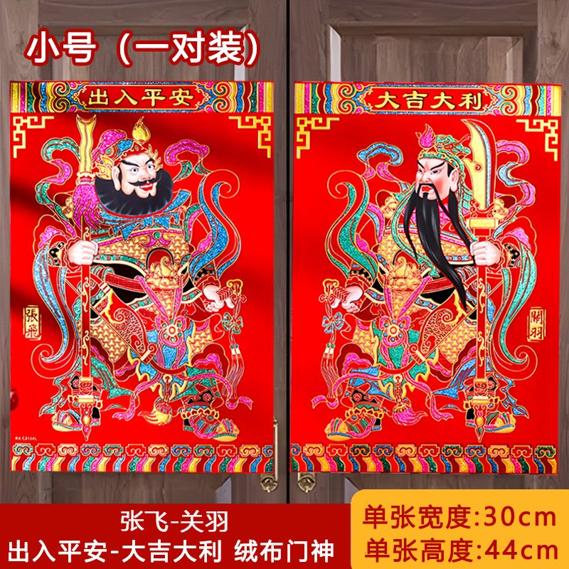 门神贴绒布门贴2026新年大门年画装饰财神爷秦叔宝尉迟恭春节门神
