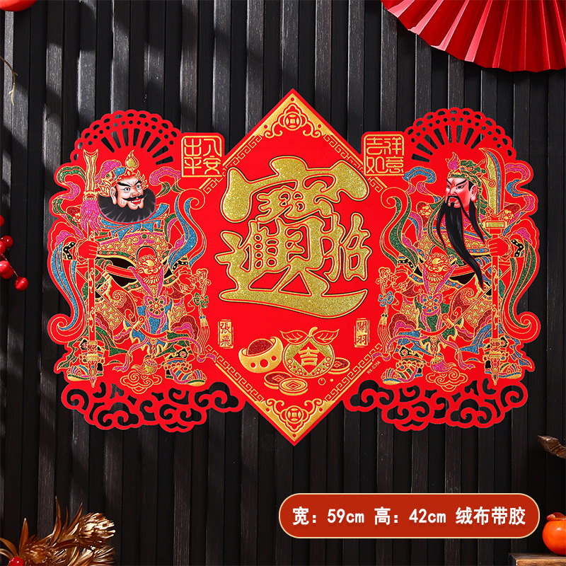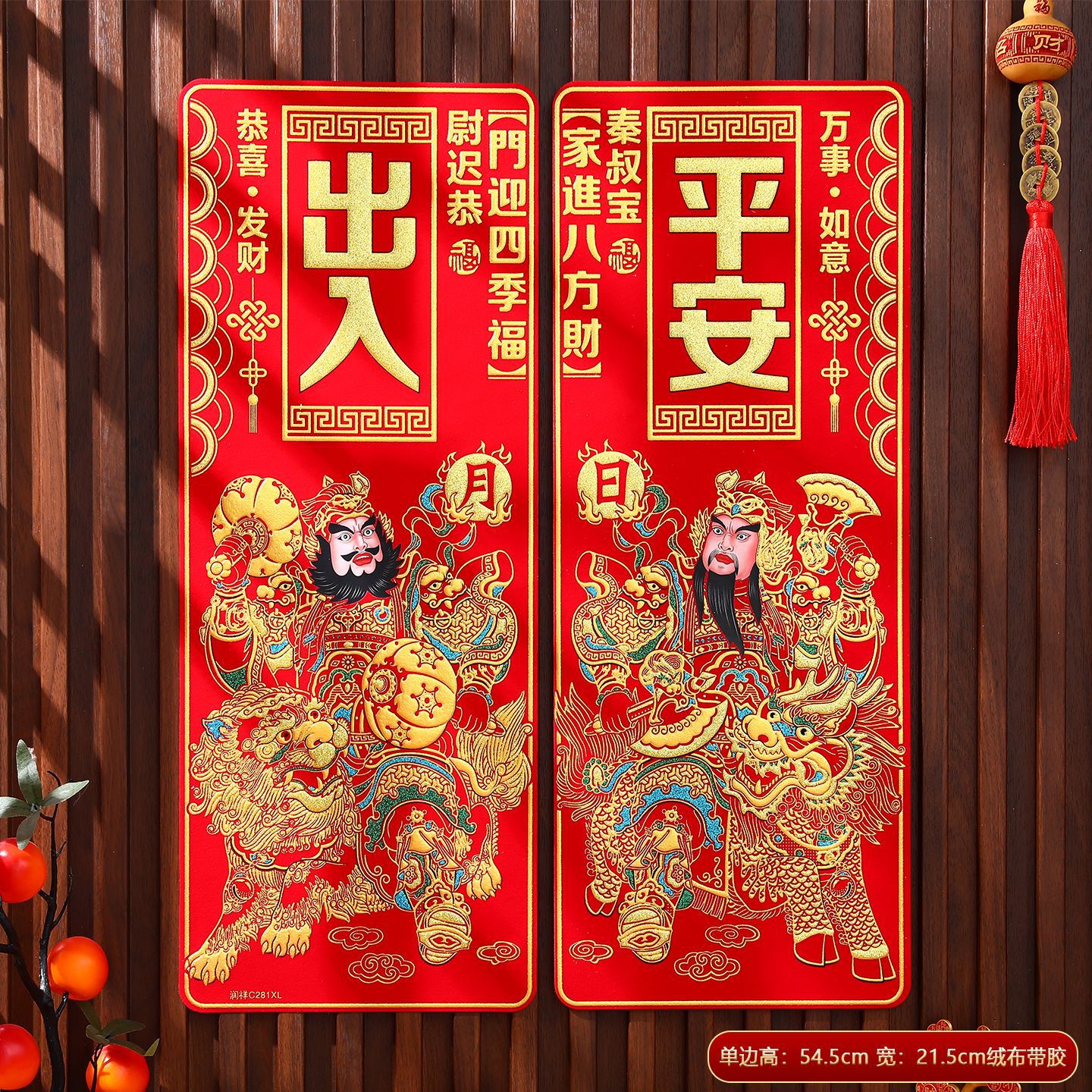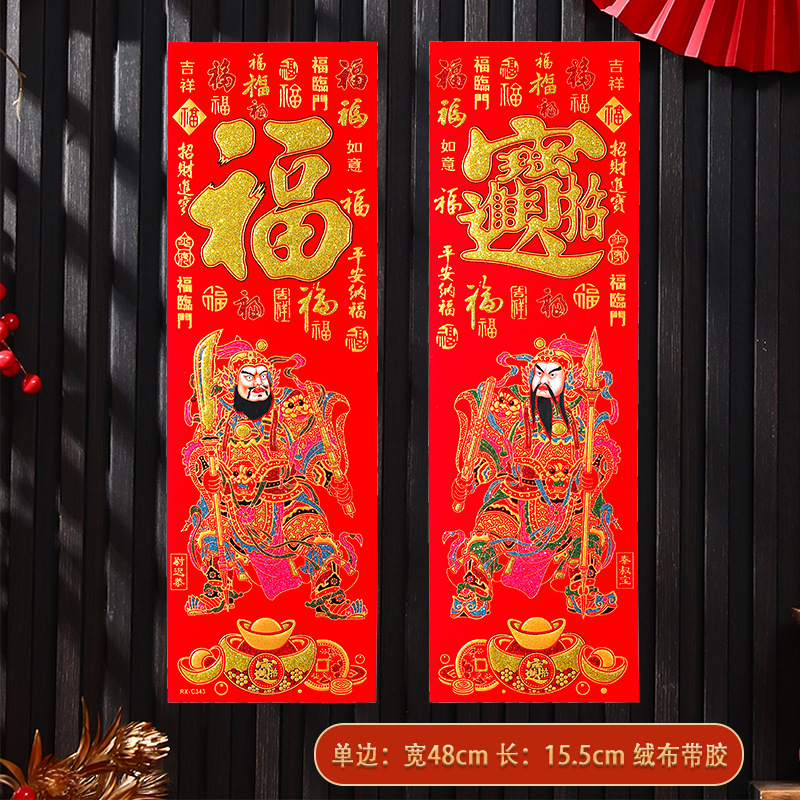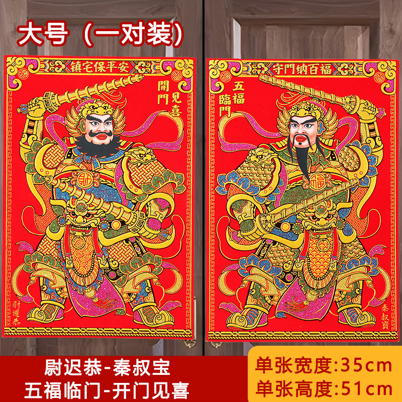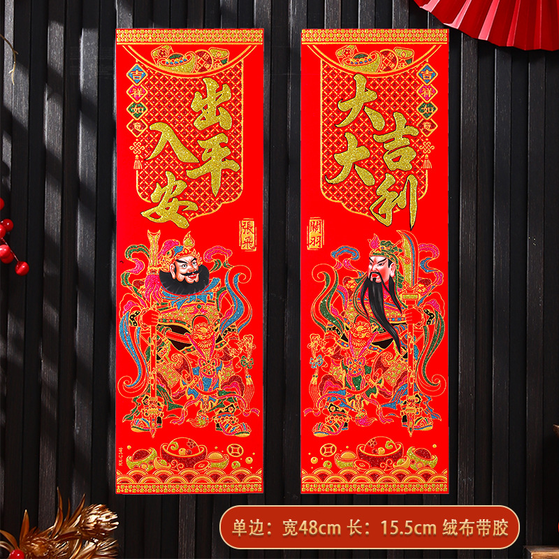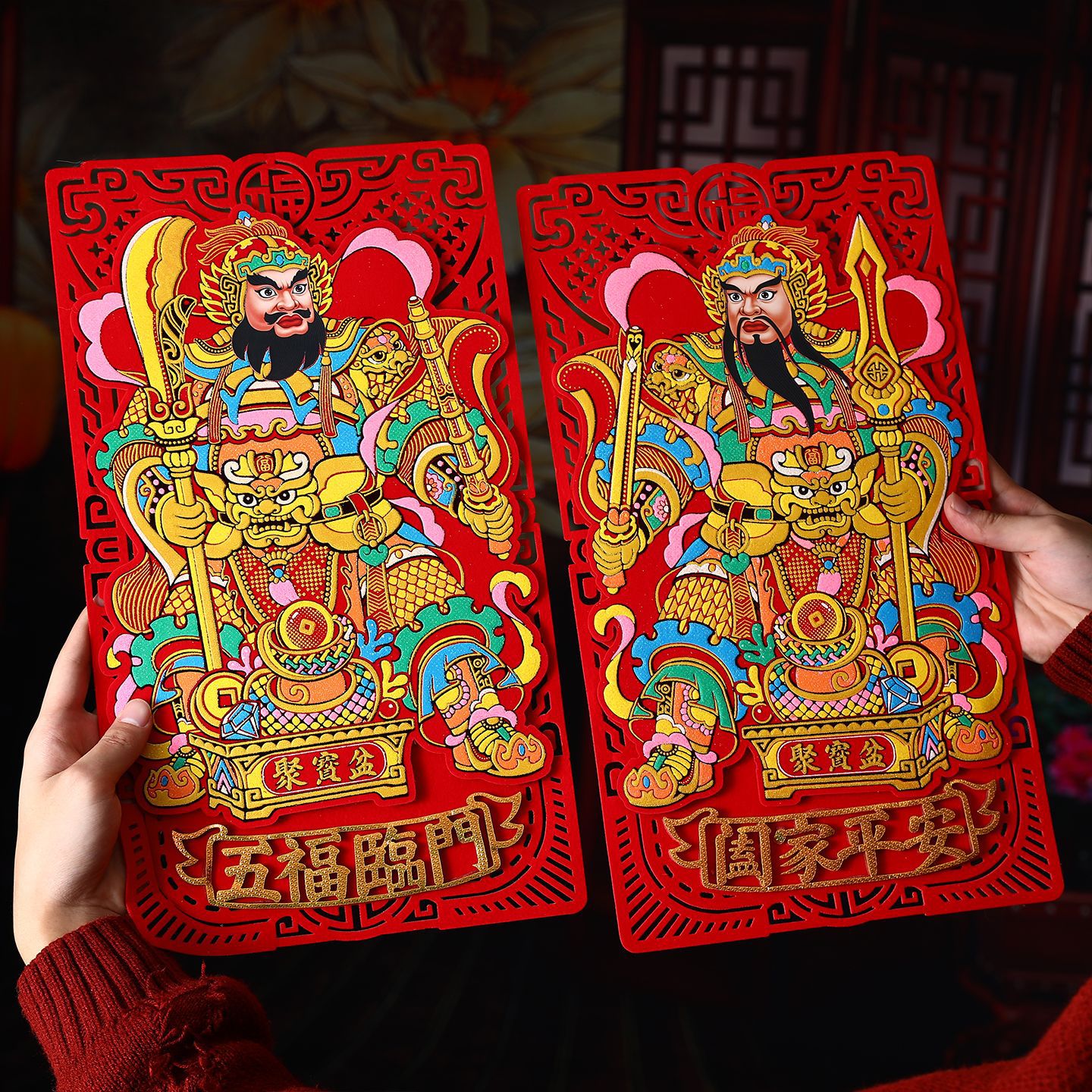门神贴绒布门贴2026新年大门年画装饰财神爷秦叔宝尉迟恭春节门神