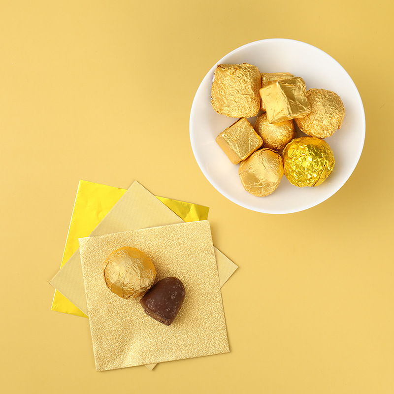 金色锡纸巧克力芝麻丸包装纸糖果光面网格橘皮纹普洱茶青柑铝箔纸