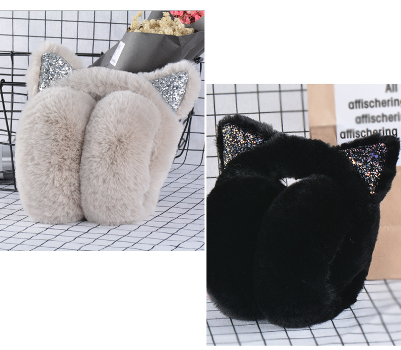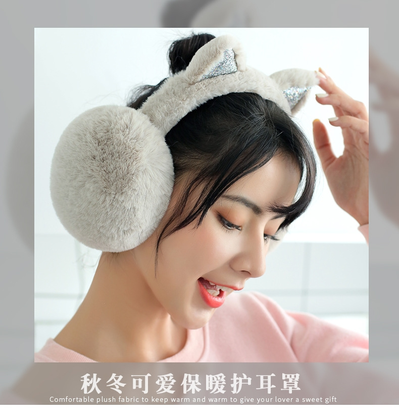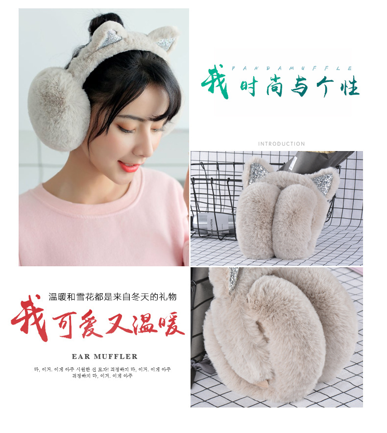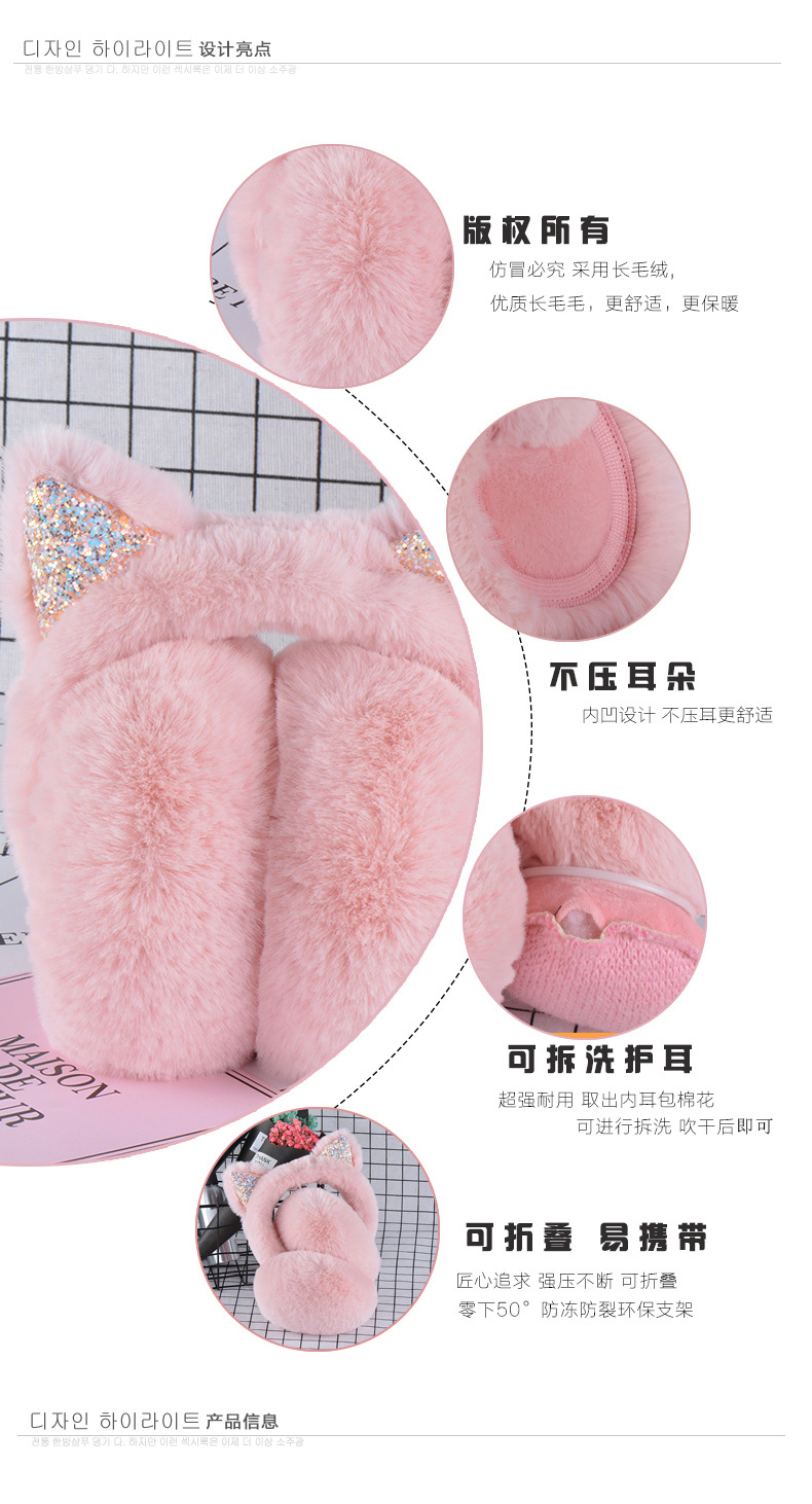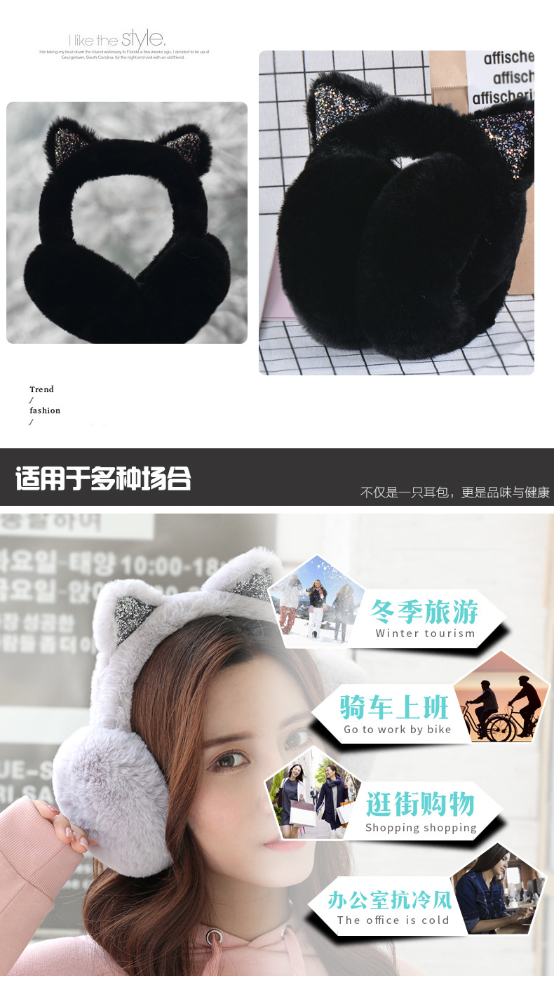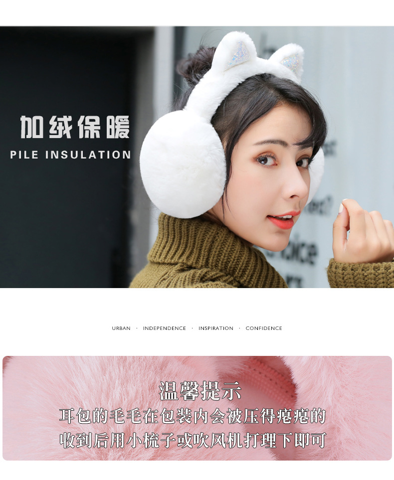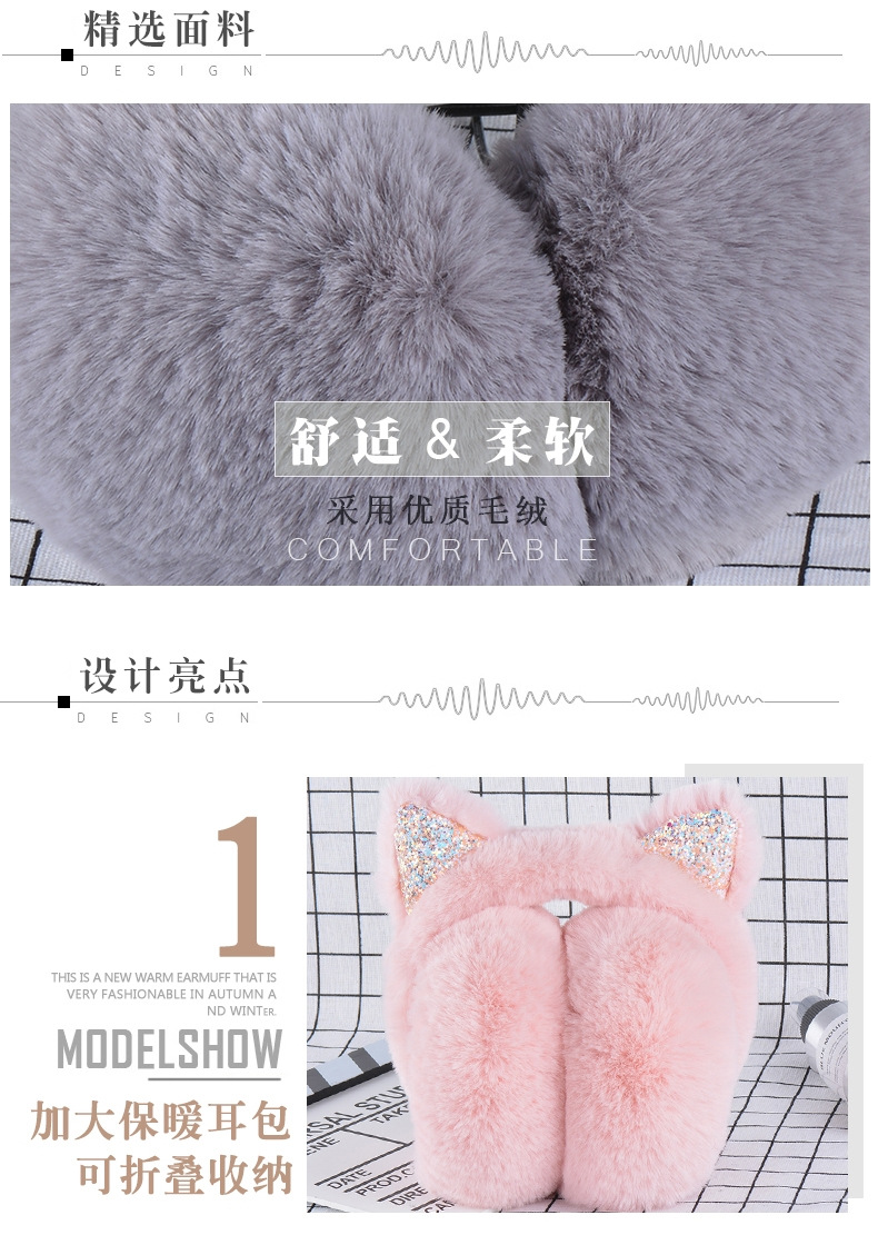 冬季户外保暖耳罩女耳套可爱耳包卡通猫耳毛绒耳朵套可折叠耳捂子