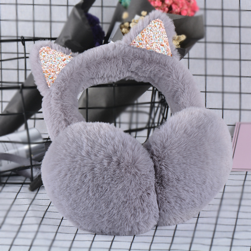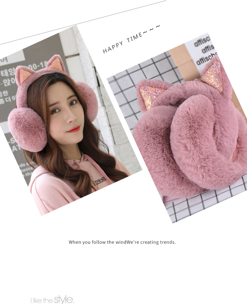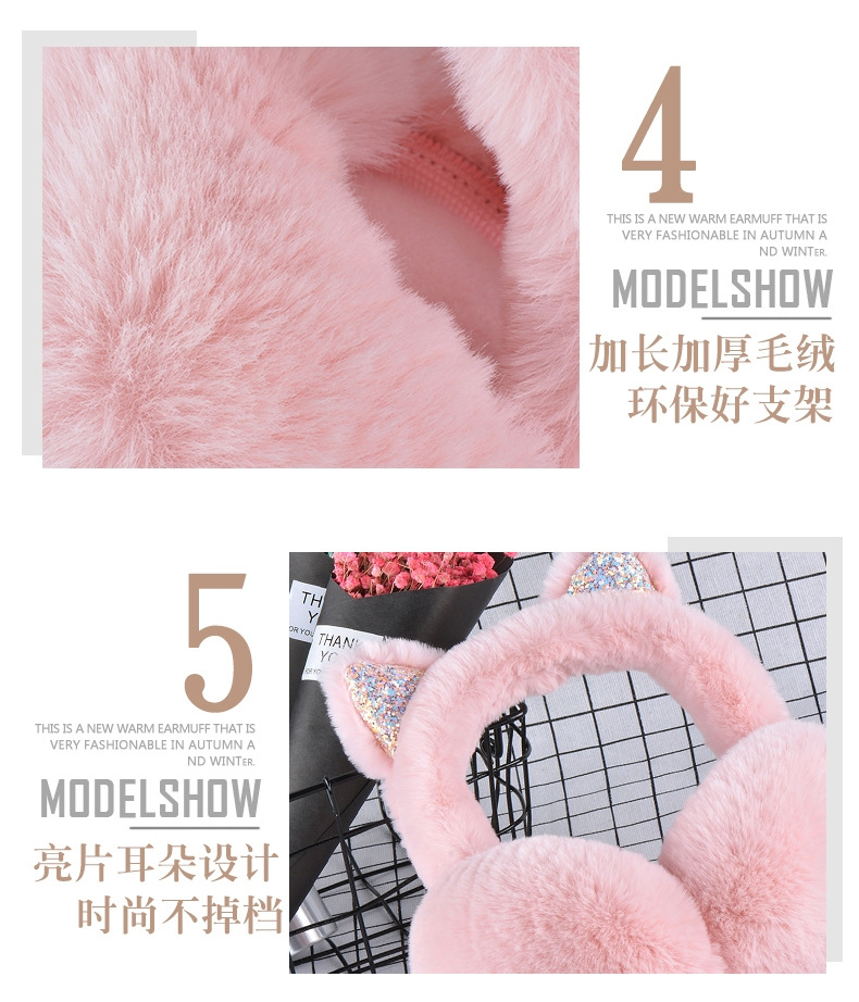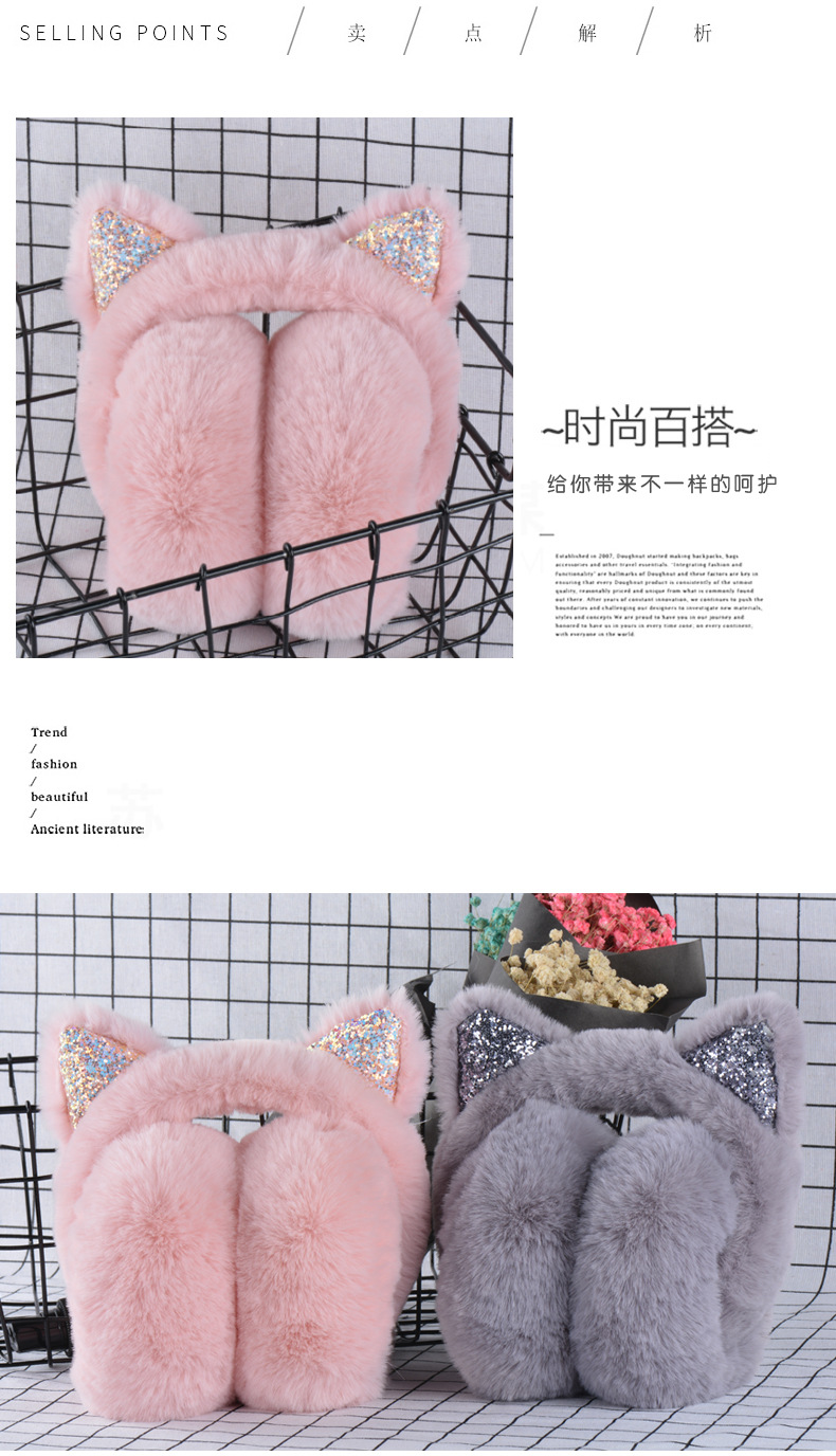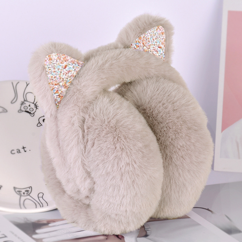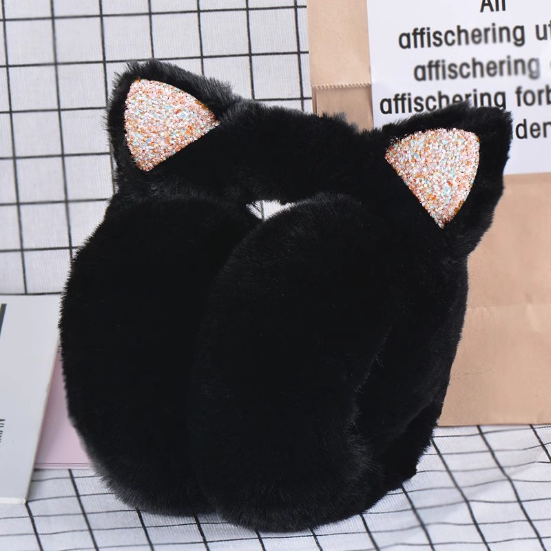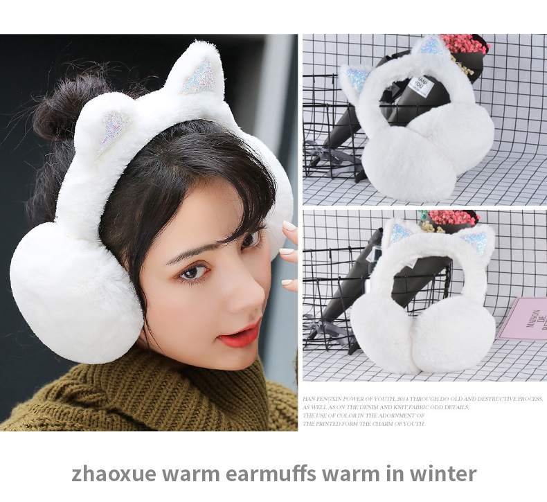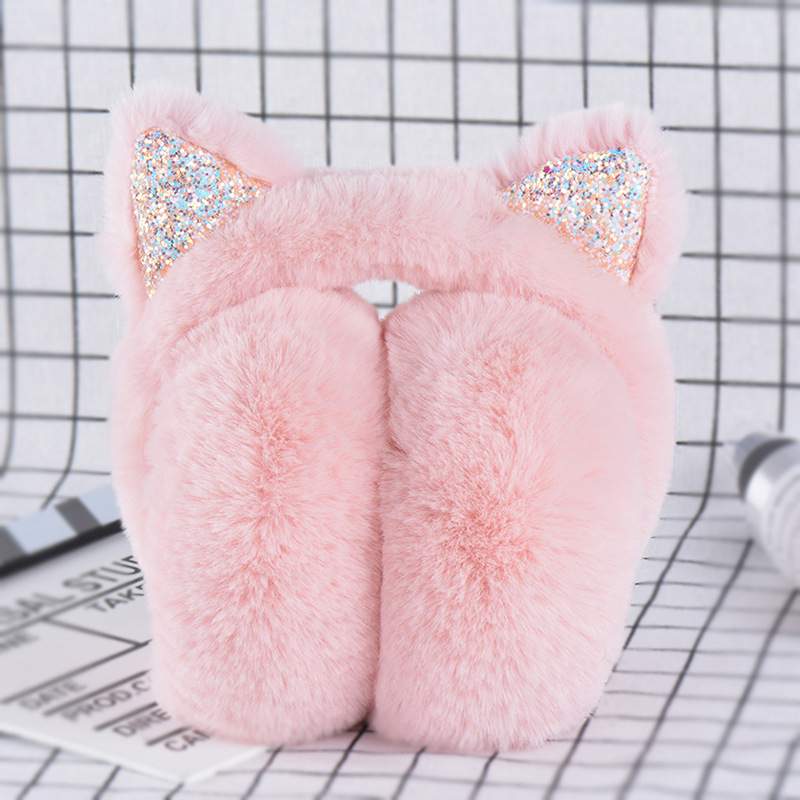 冬季户外保暖耳罩女耳套可爱耳包卡通猫耳毛绒耳朵套可折叠耳捂子