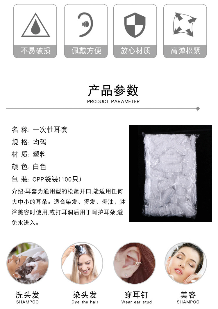 一次性加厚耳套打耳洞洗澡洗头防进水美容染发耳罩保护耳朵100只