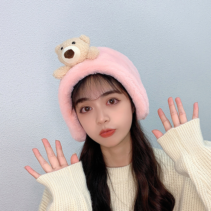 可爱熊耳朵耳罩女宽边发箍头饰秋冬保暖毛绒耳套耳包仿皮草护耳帽