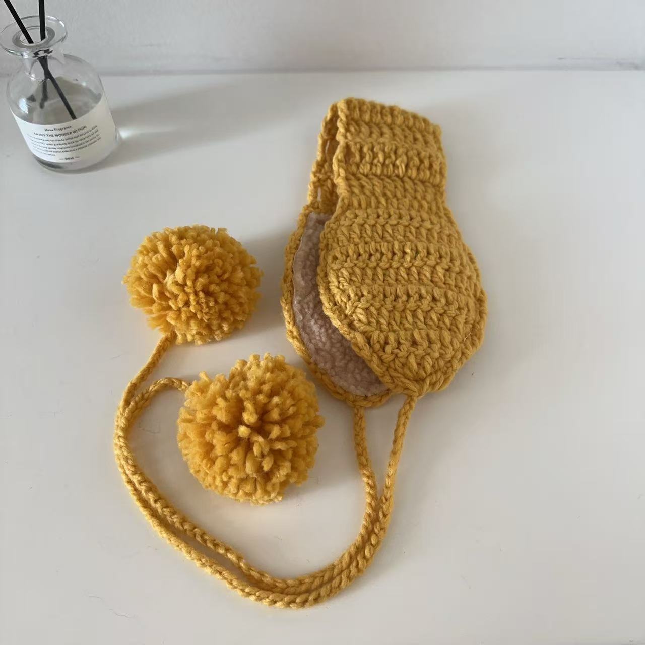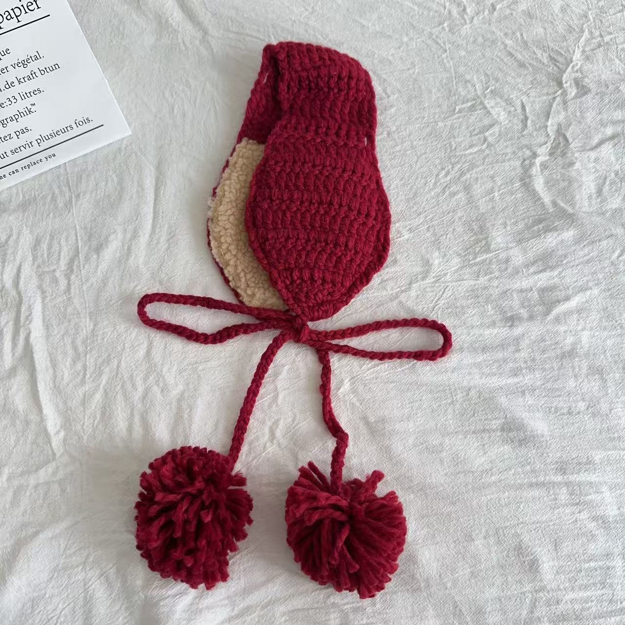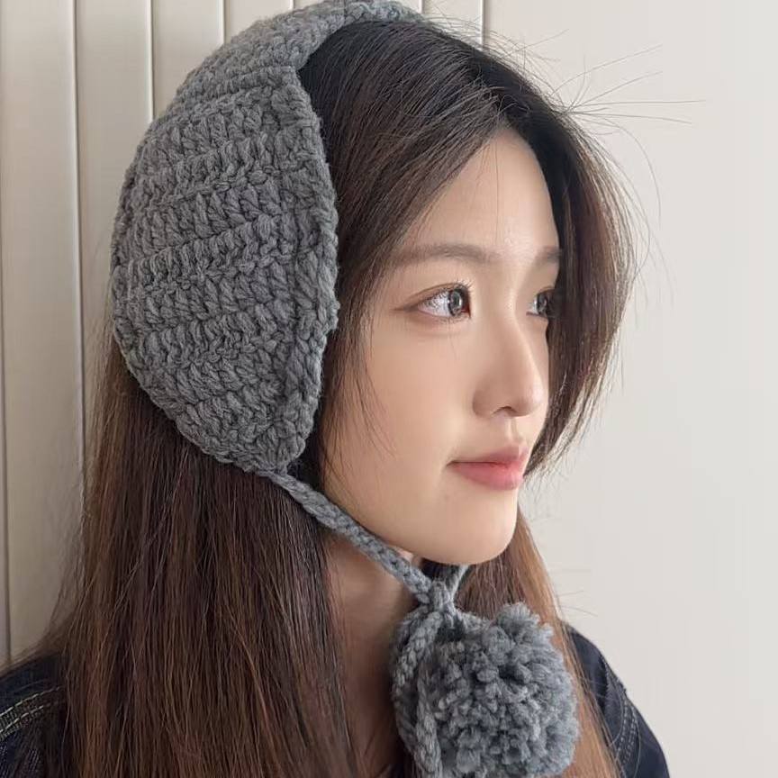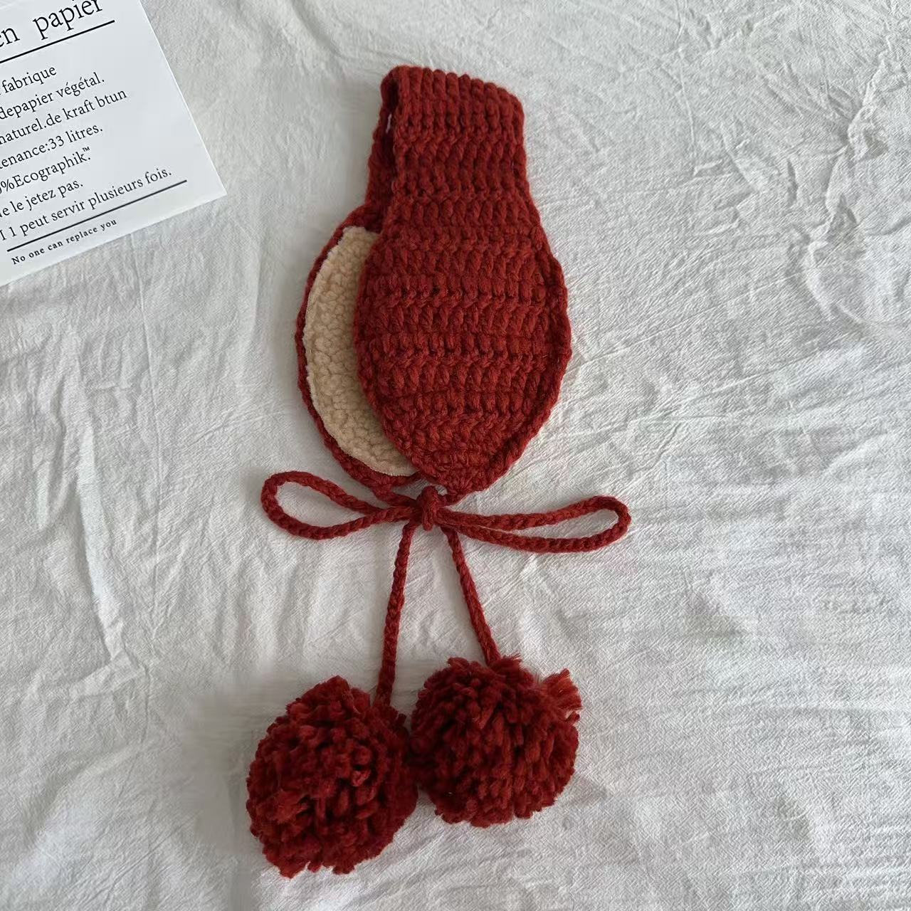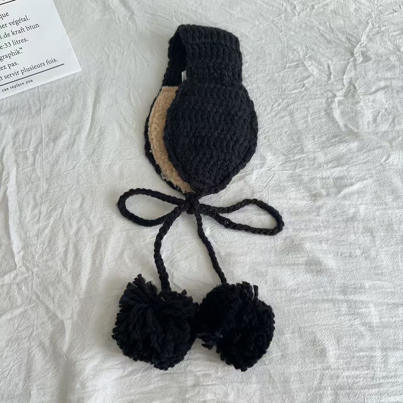 凉芳韩版chic可爱护耳保暖加绒耳罩女秋冬季绑带软妹针织耳包