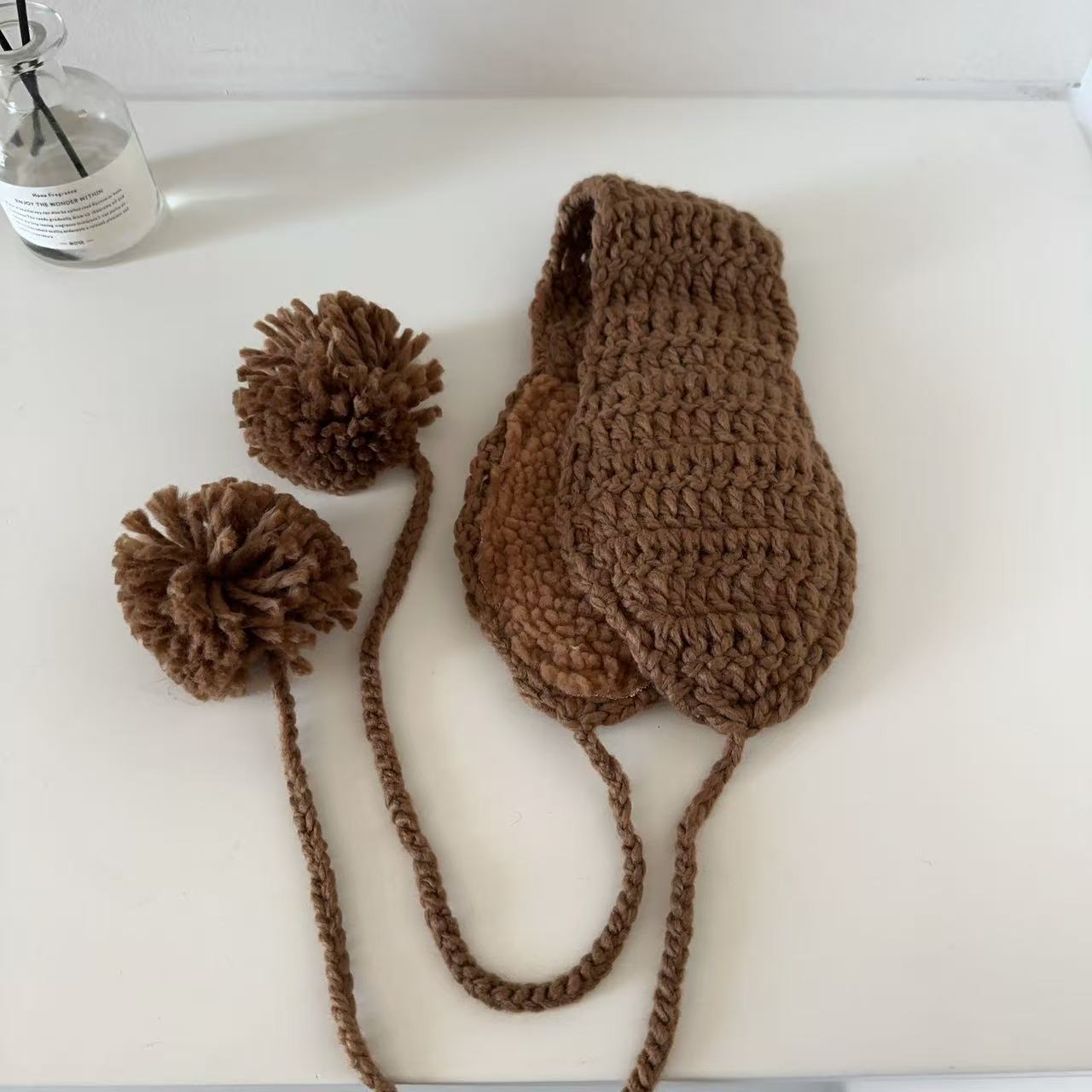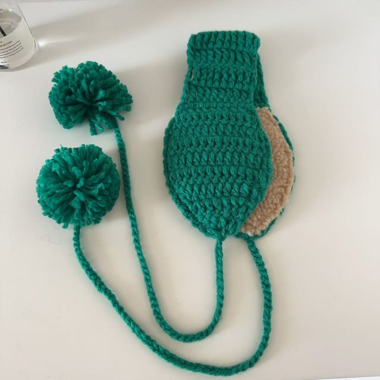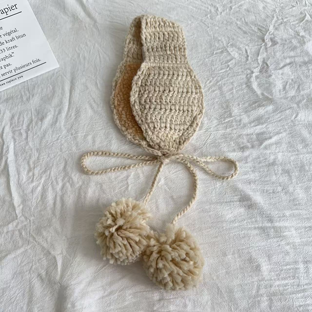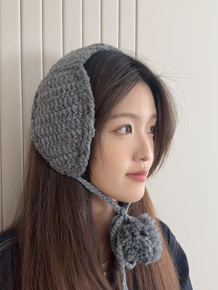 凉芳韩版chic可爱护耳保暖加绒耳罩女秋冬季绑带软妹针织耳包