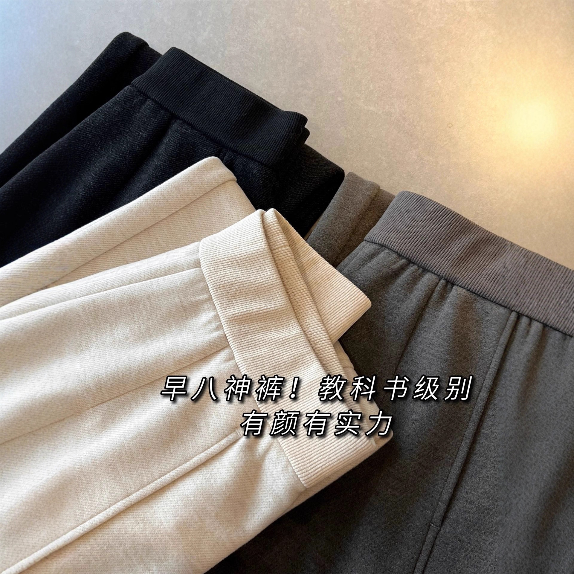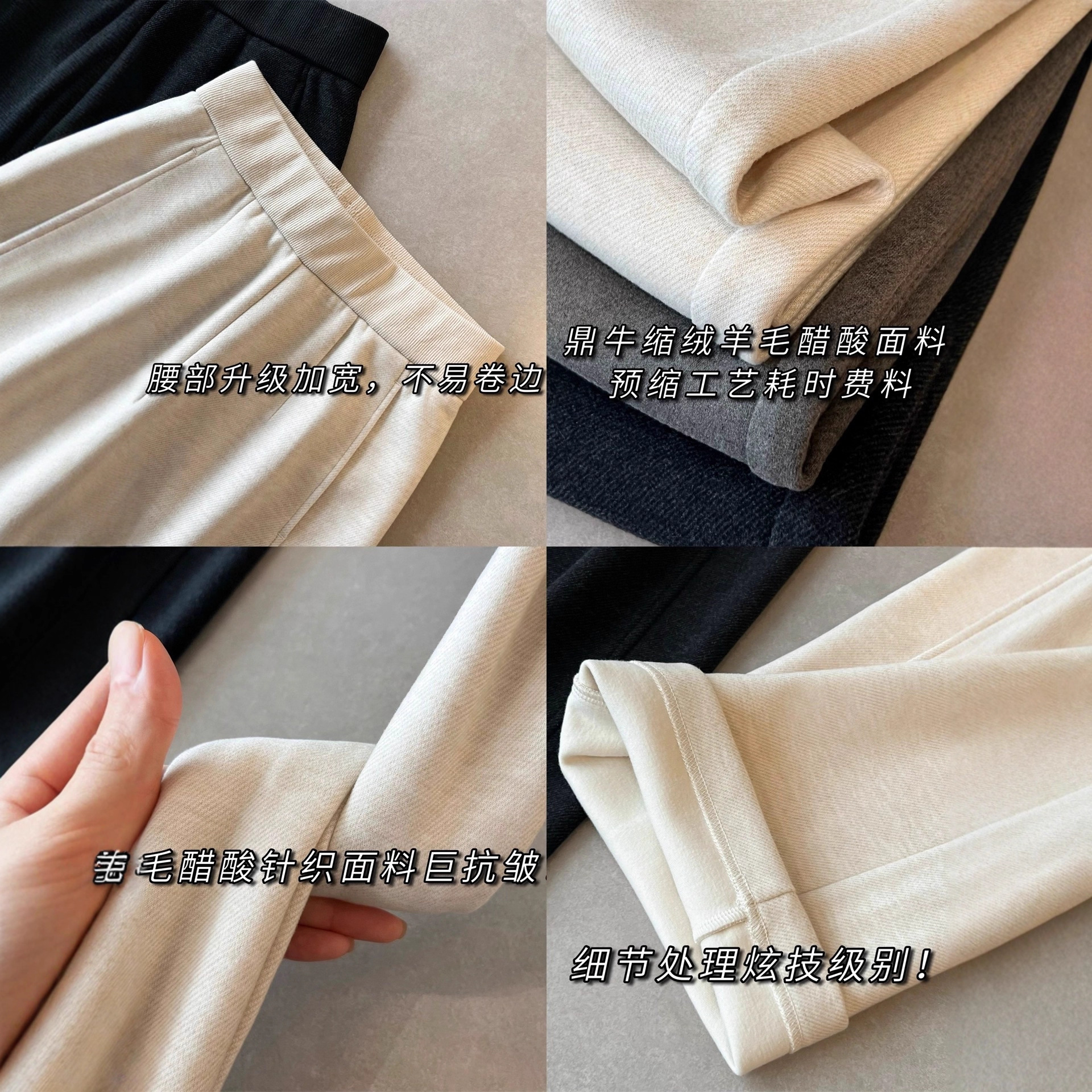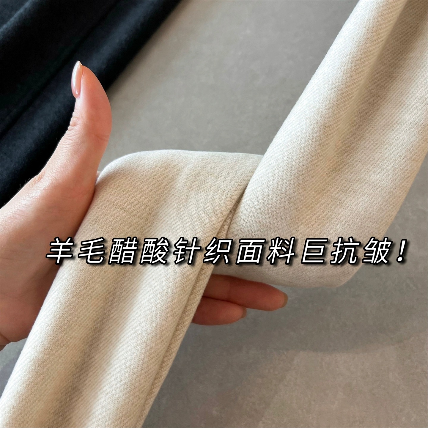 早八裤加绒加厚高端醋酸羊毛休闲女裤窄版直筒裤毛呢裤子女秋冬