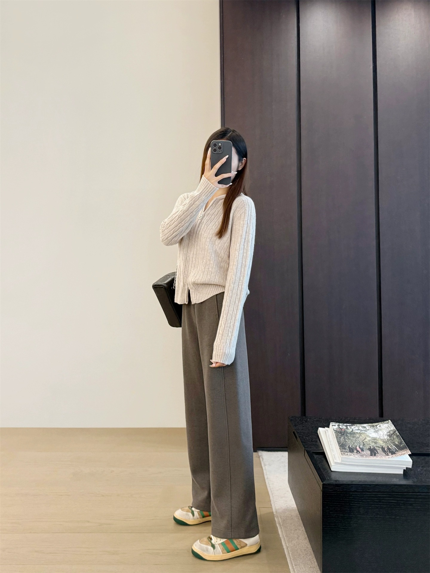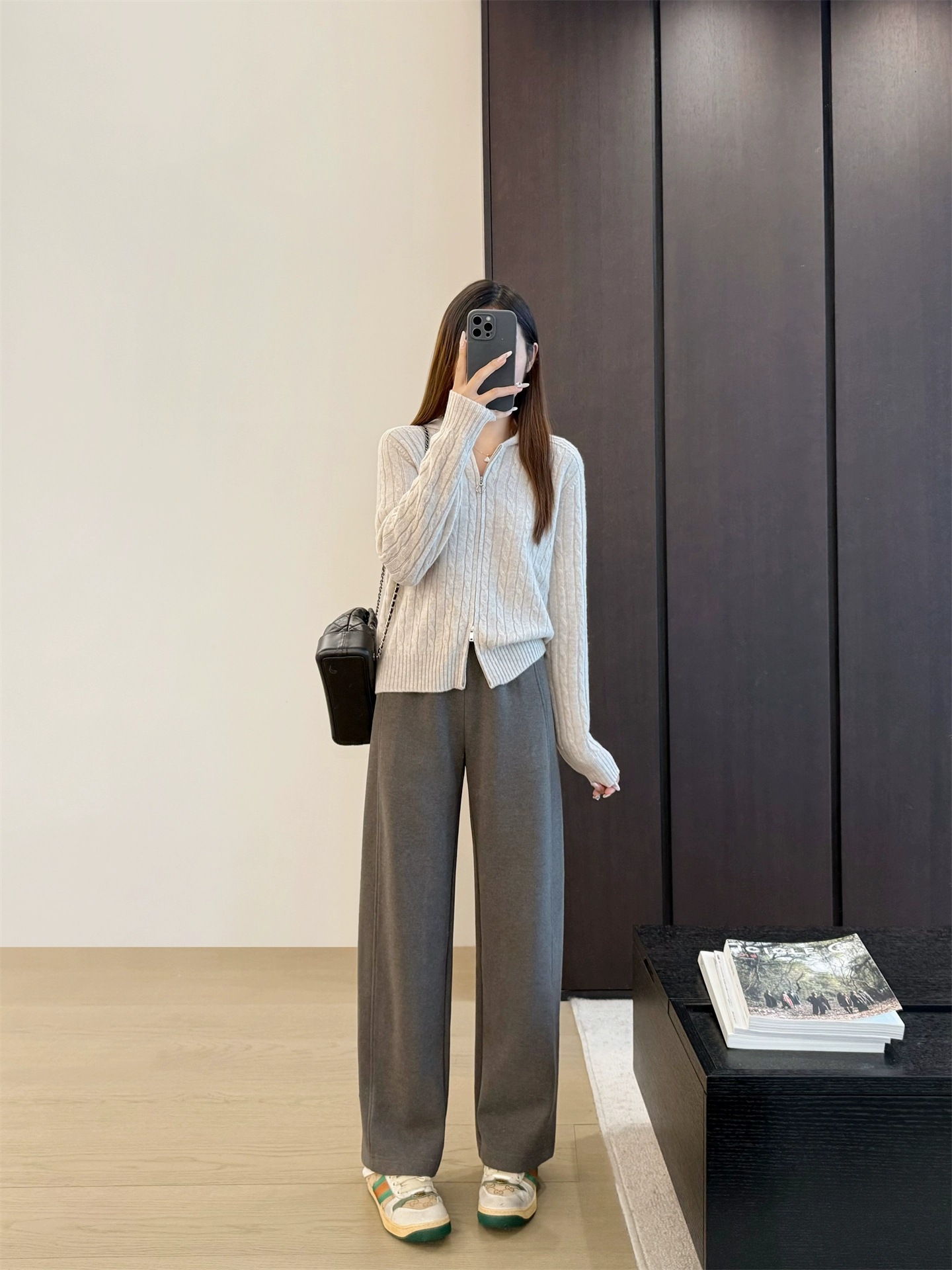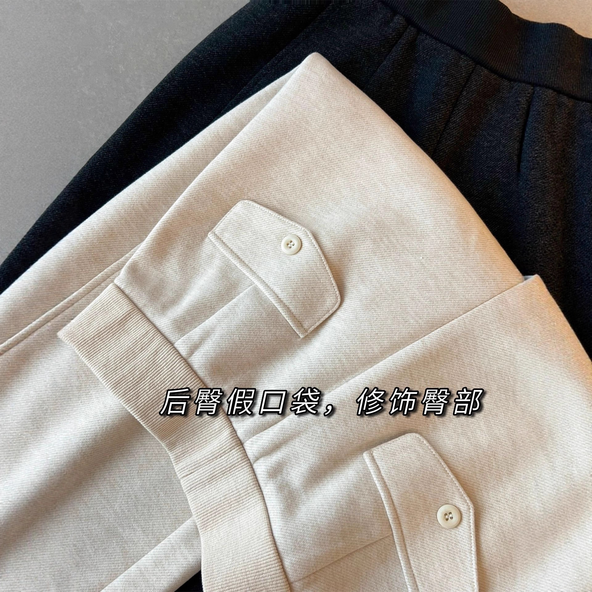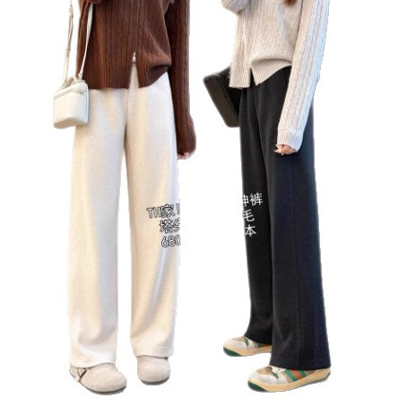 早八裤加绒加厚高端醋酸羊毛休闲女裤窄版直筒裤毛呢裤子女秋冬