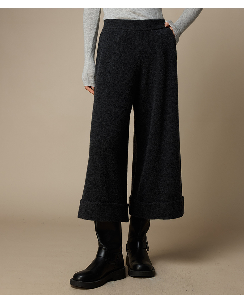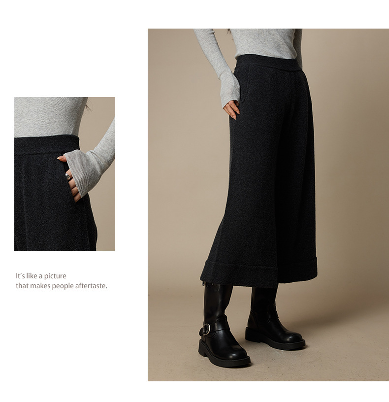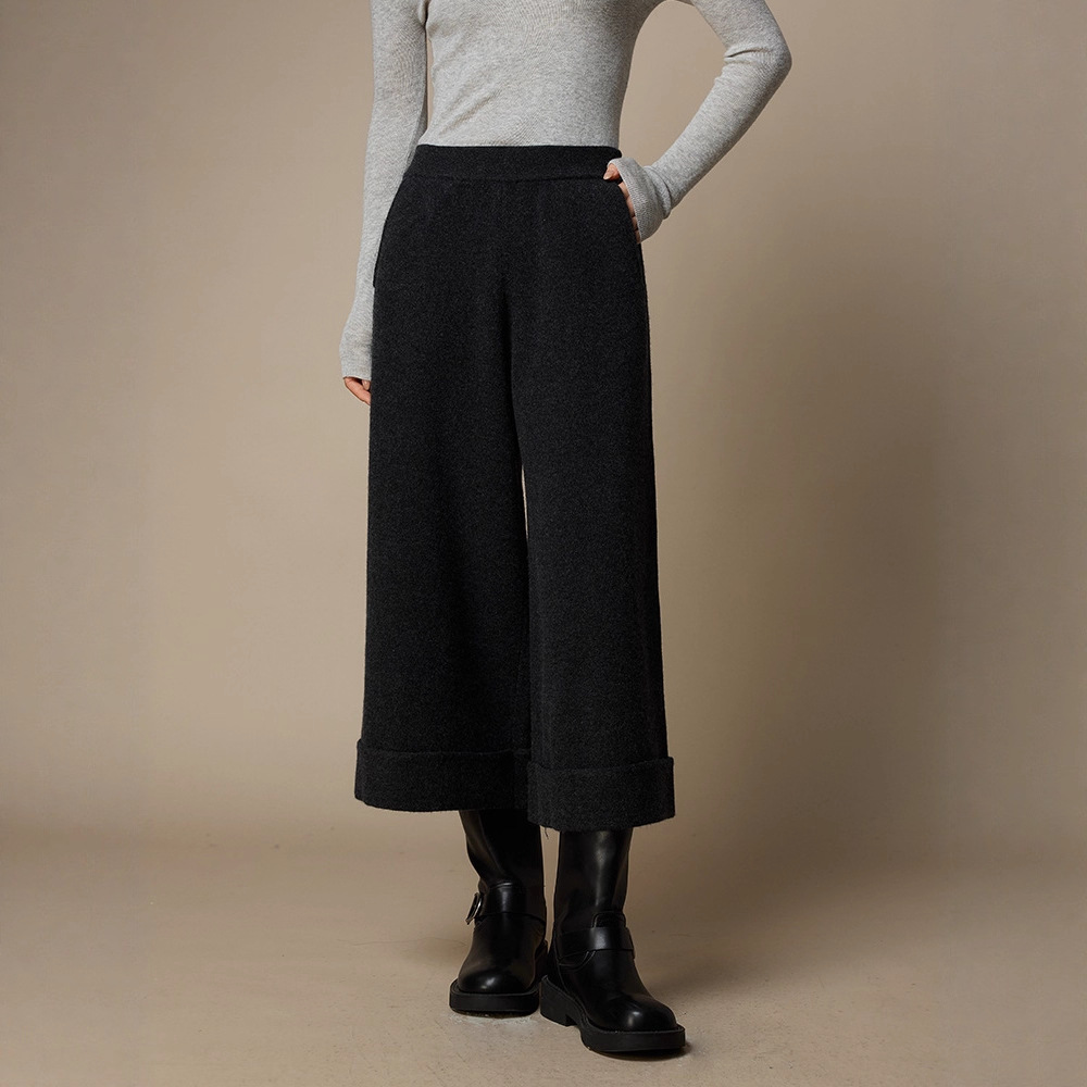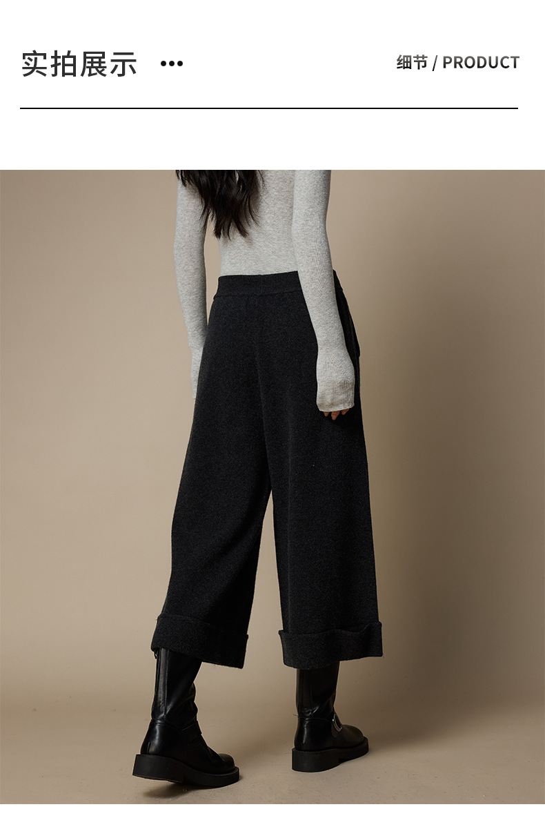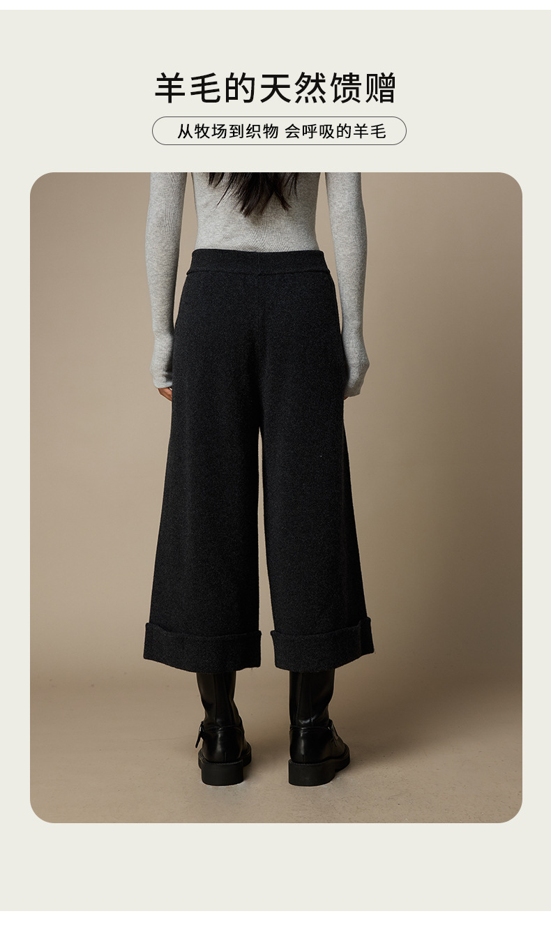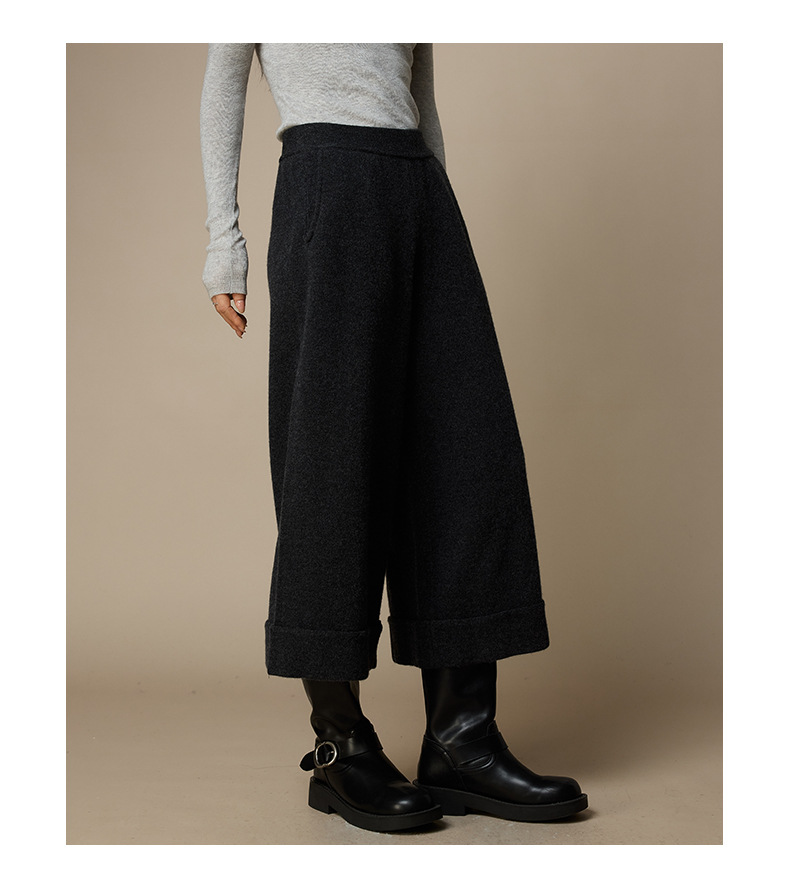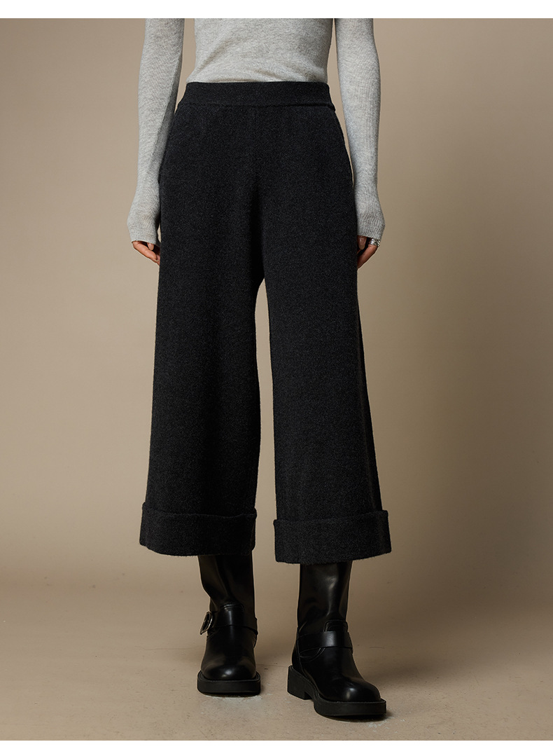 高级感100羊毛阔腿裤卷边直筒七分裤25新款冬季女装百搭厚款裤子