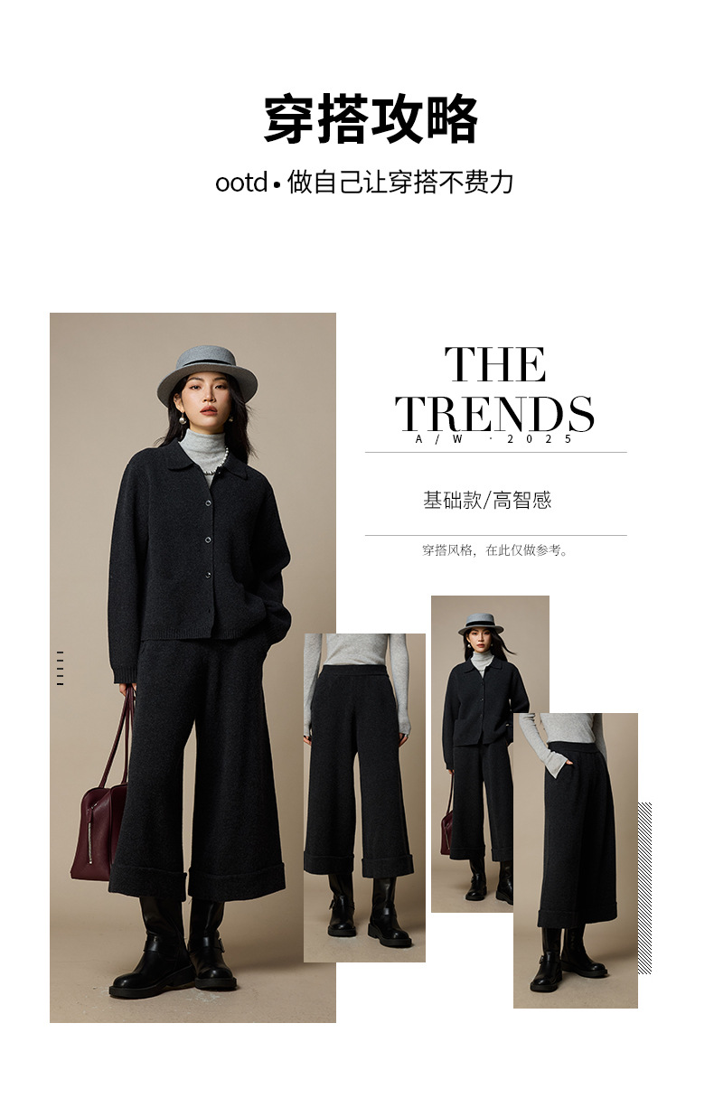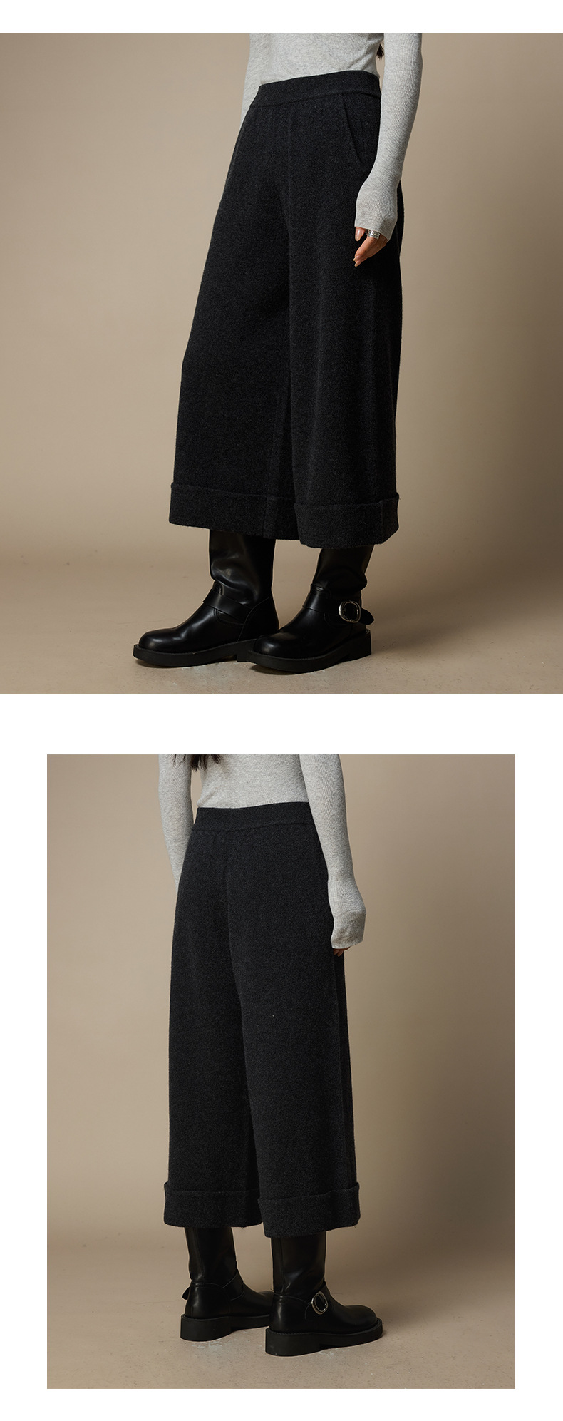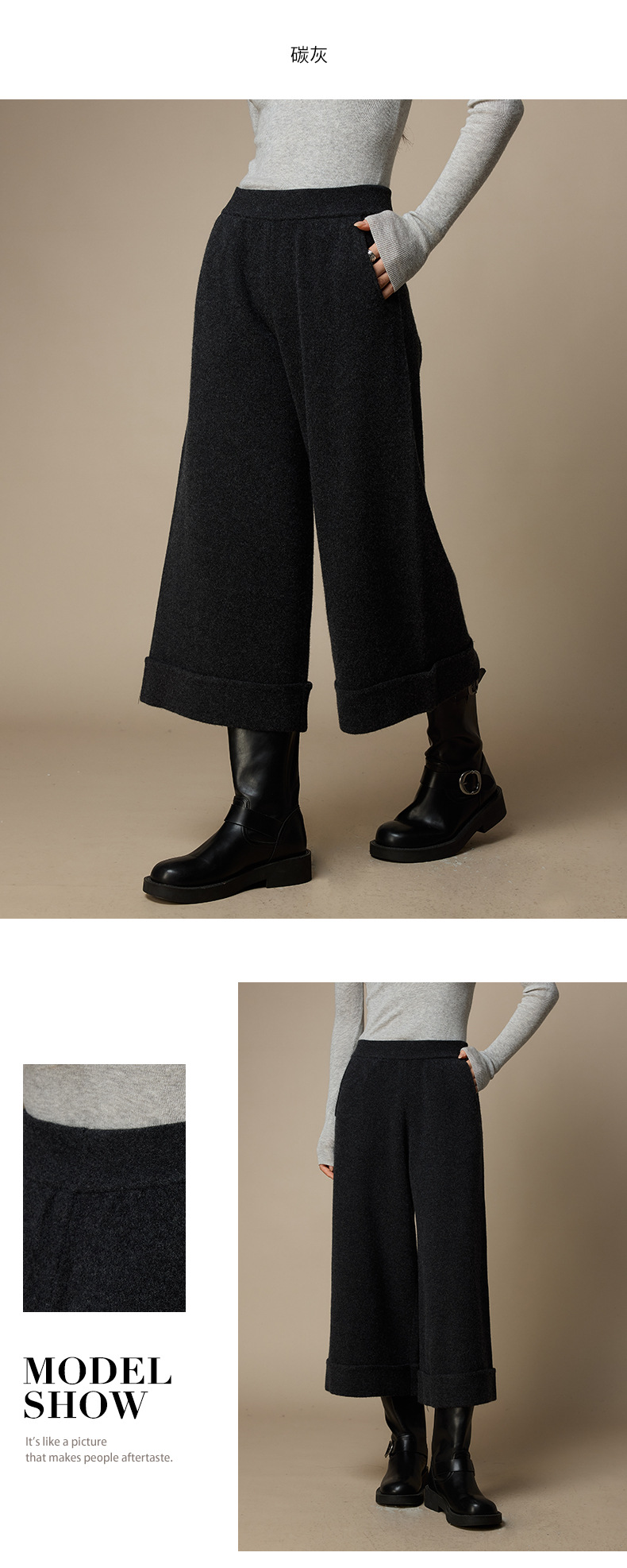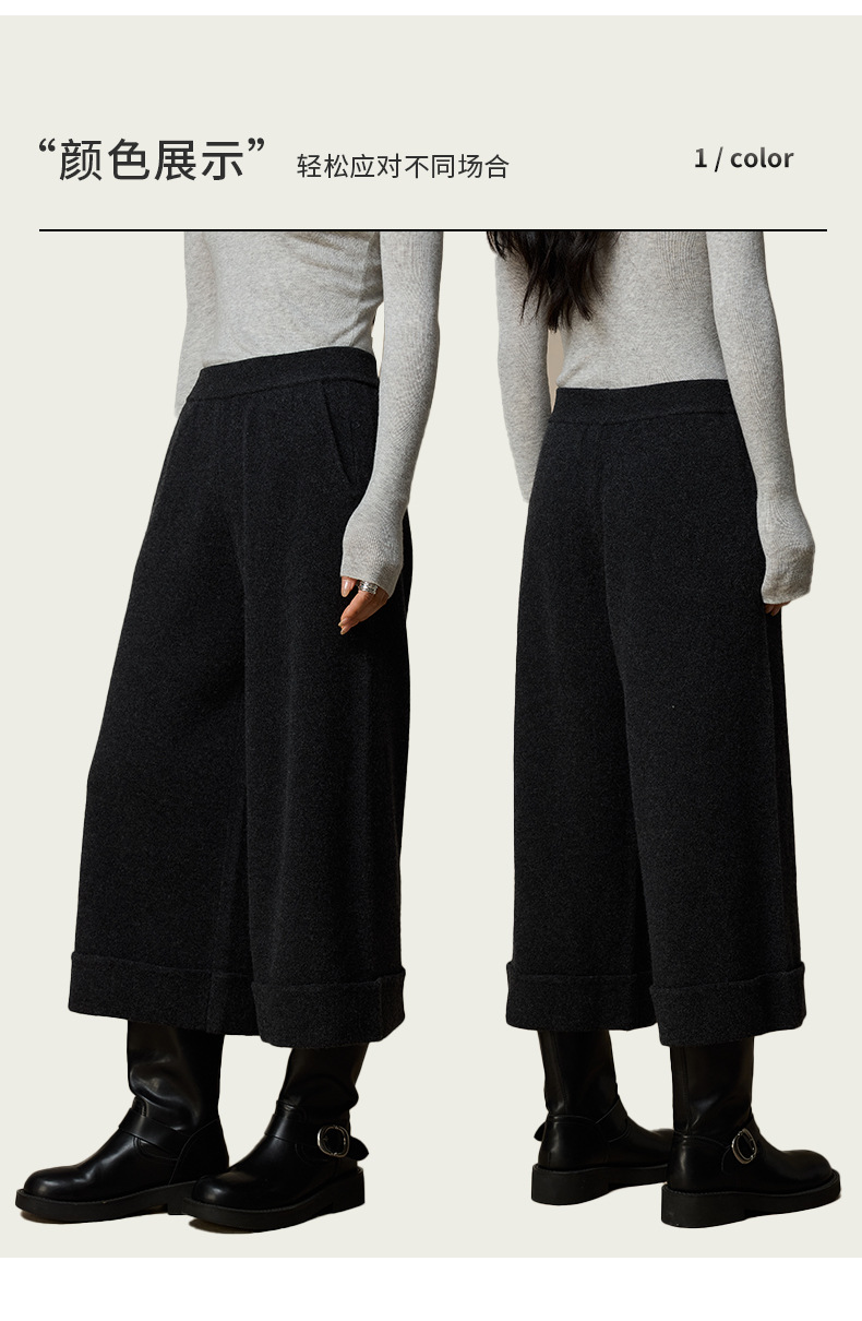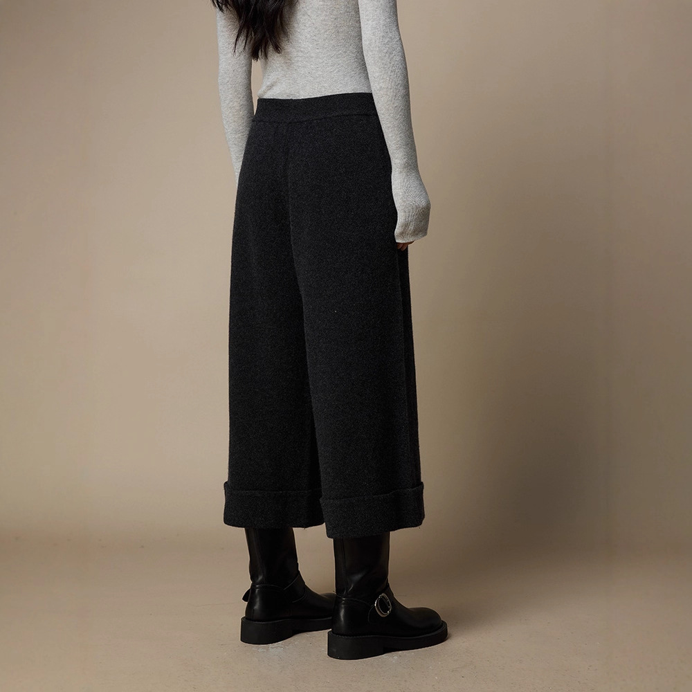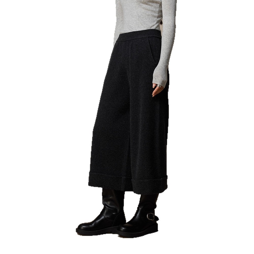 高级感100羊毛阔腿裤卷边直筒七分裤25新款冬季女装百搭厚款裤子