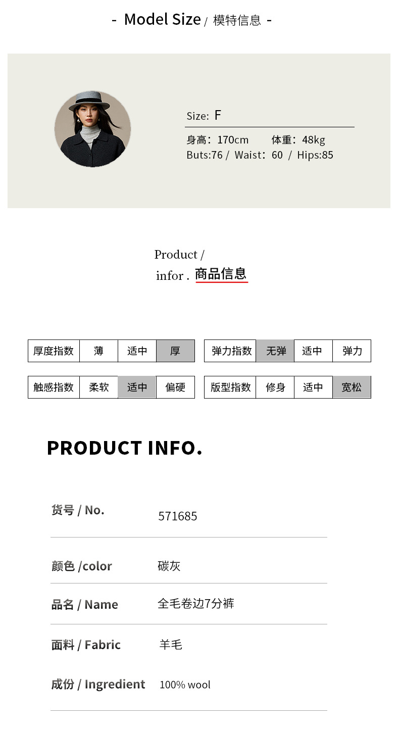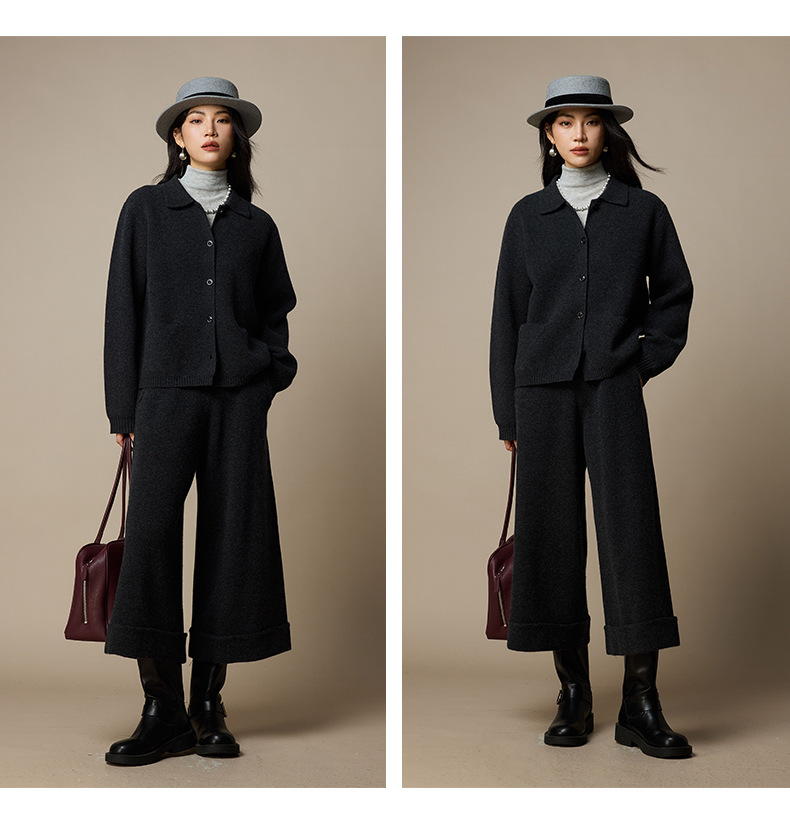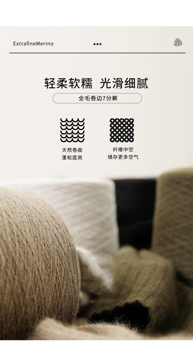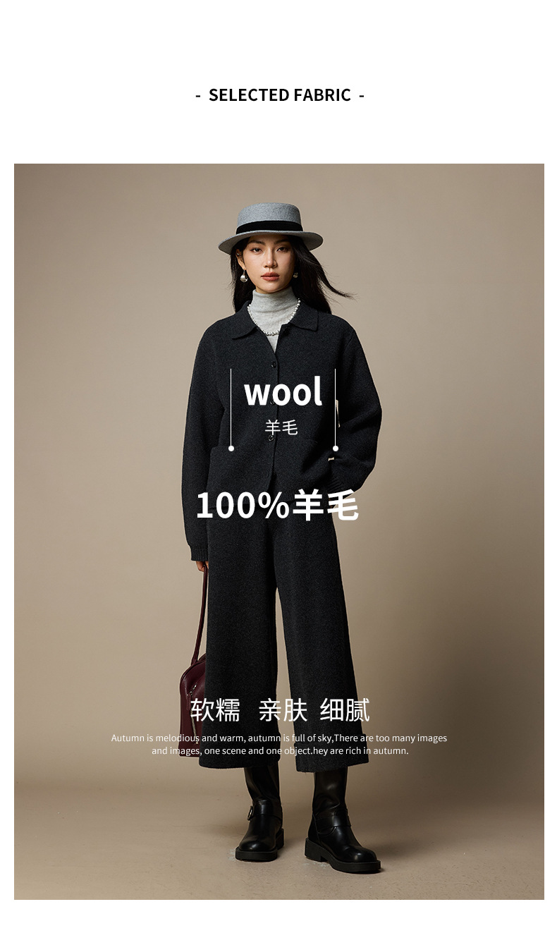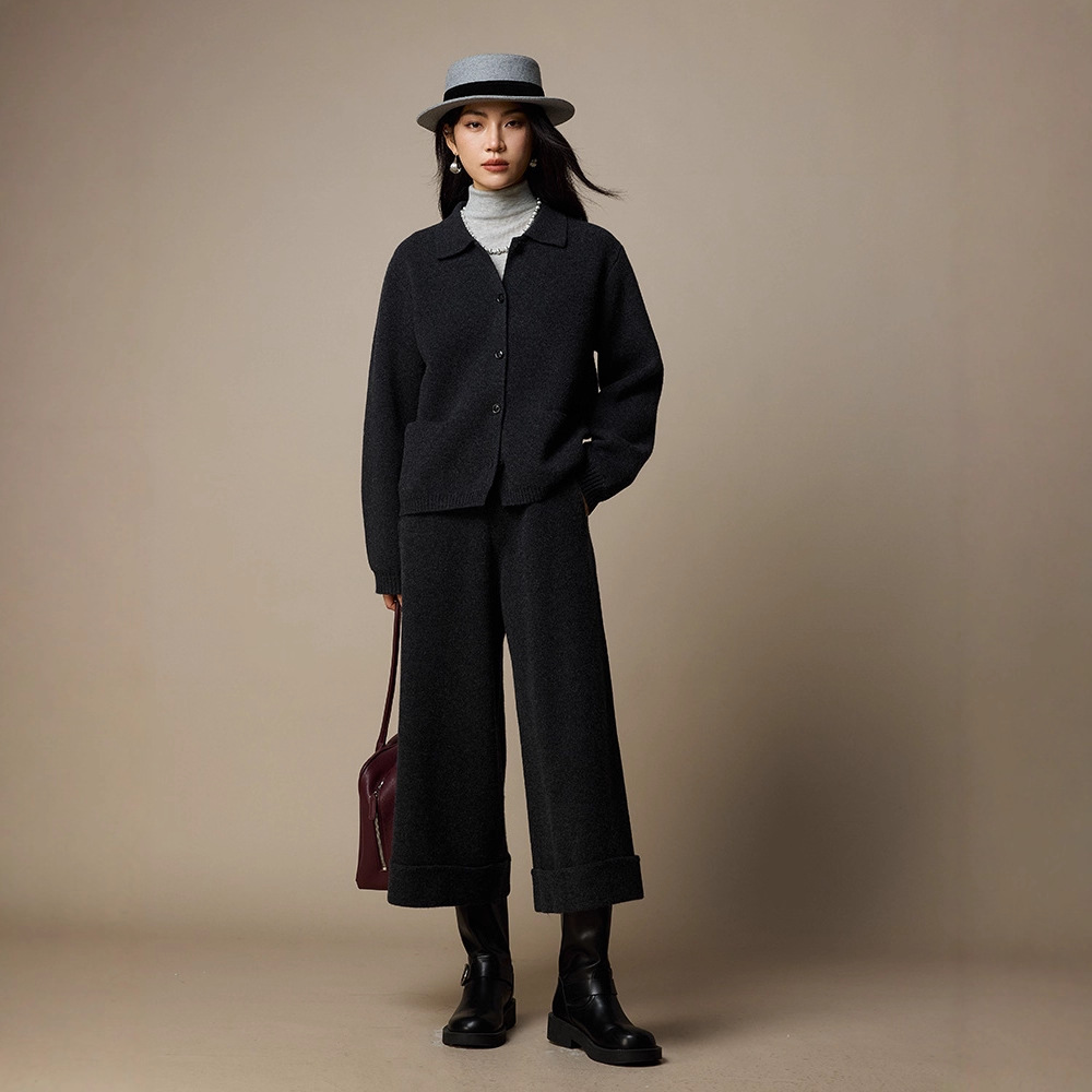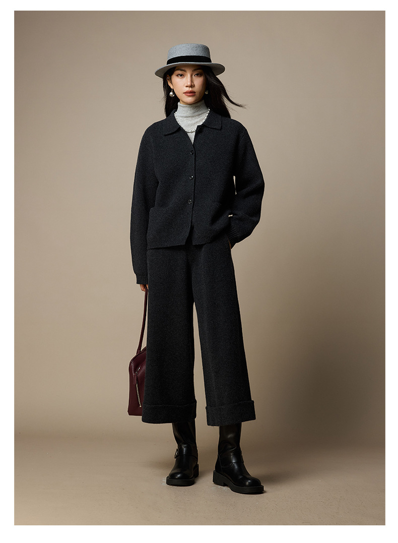 高级感100羊毛阔腿裤卷边直筒七分裤25新款冬季女装百搭厚款裤子