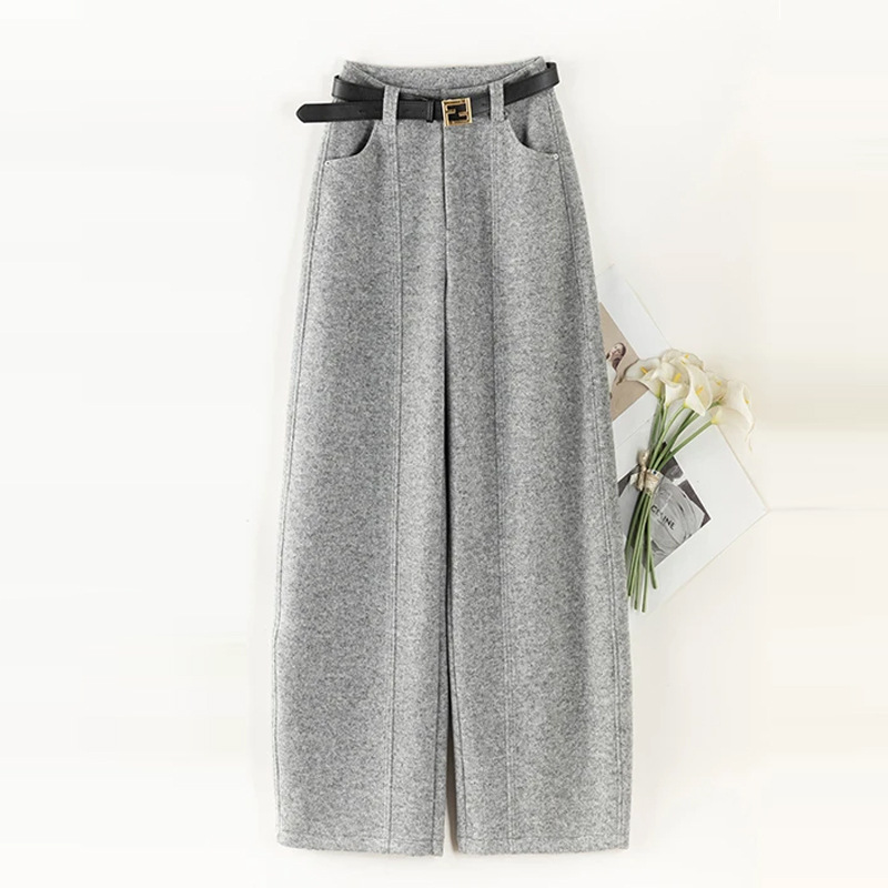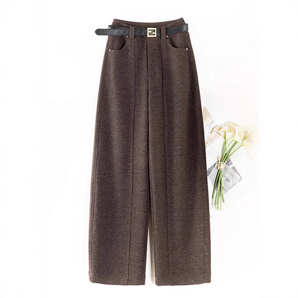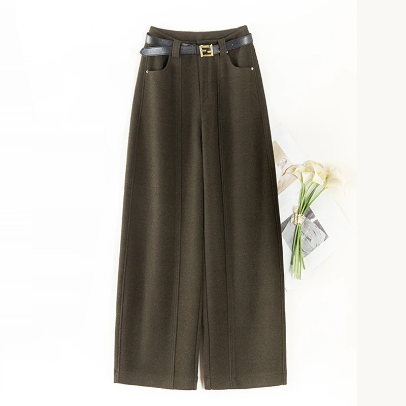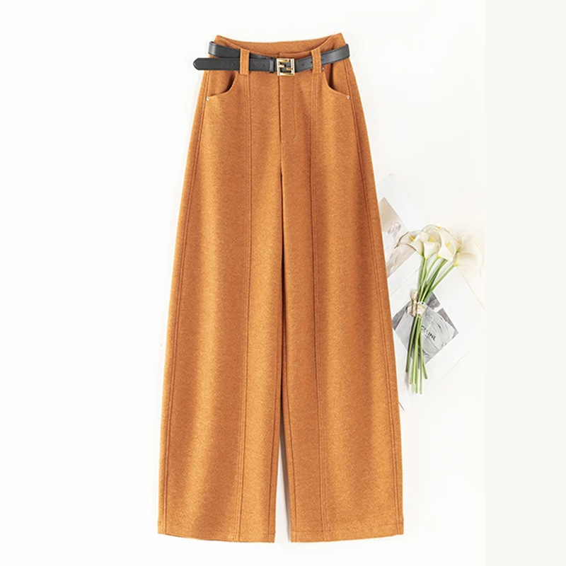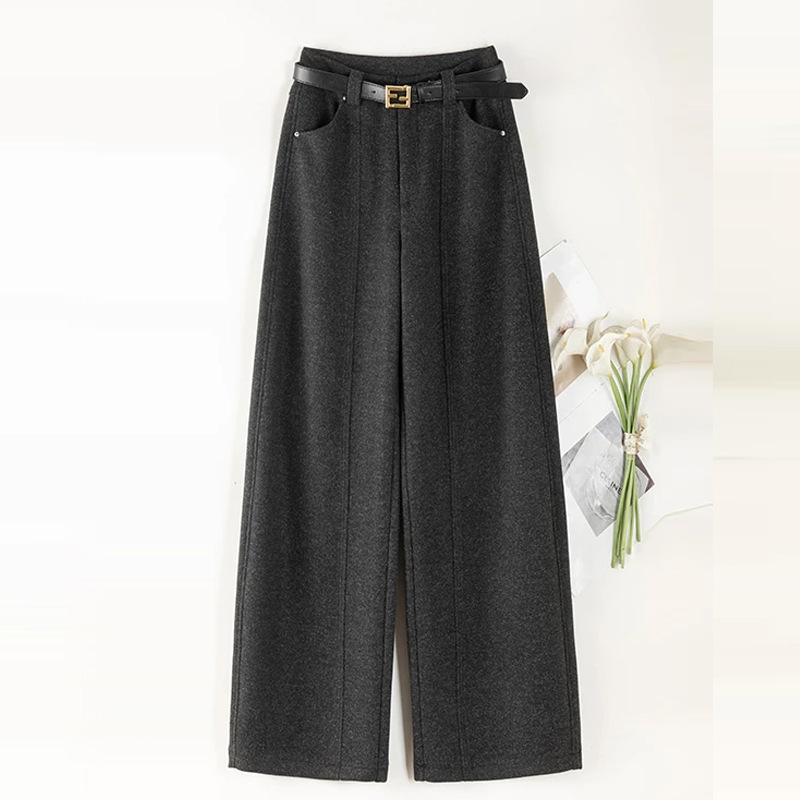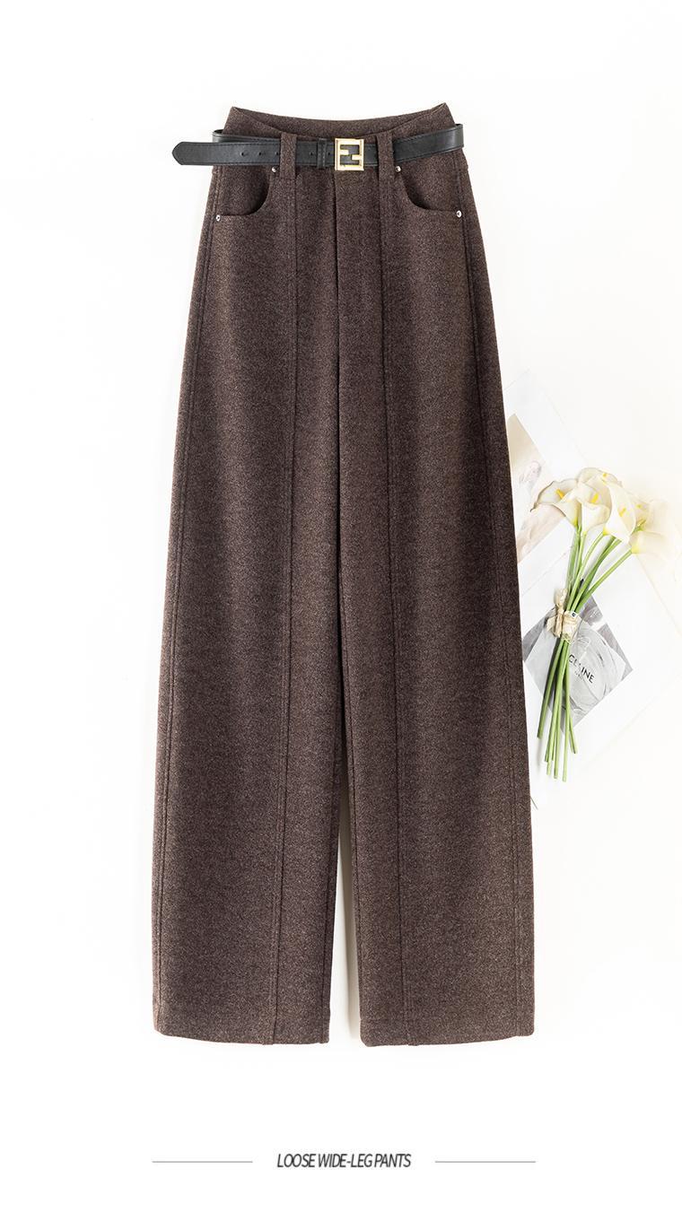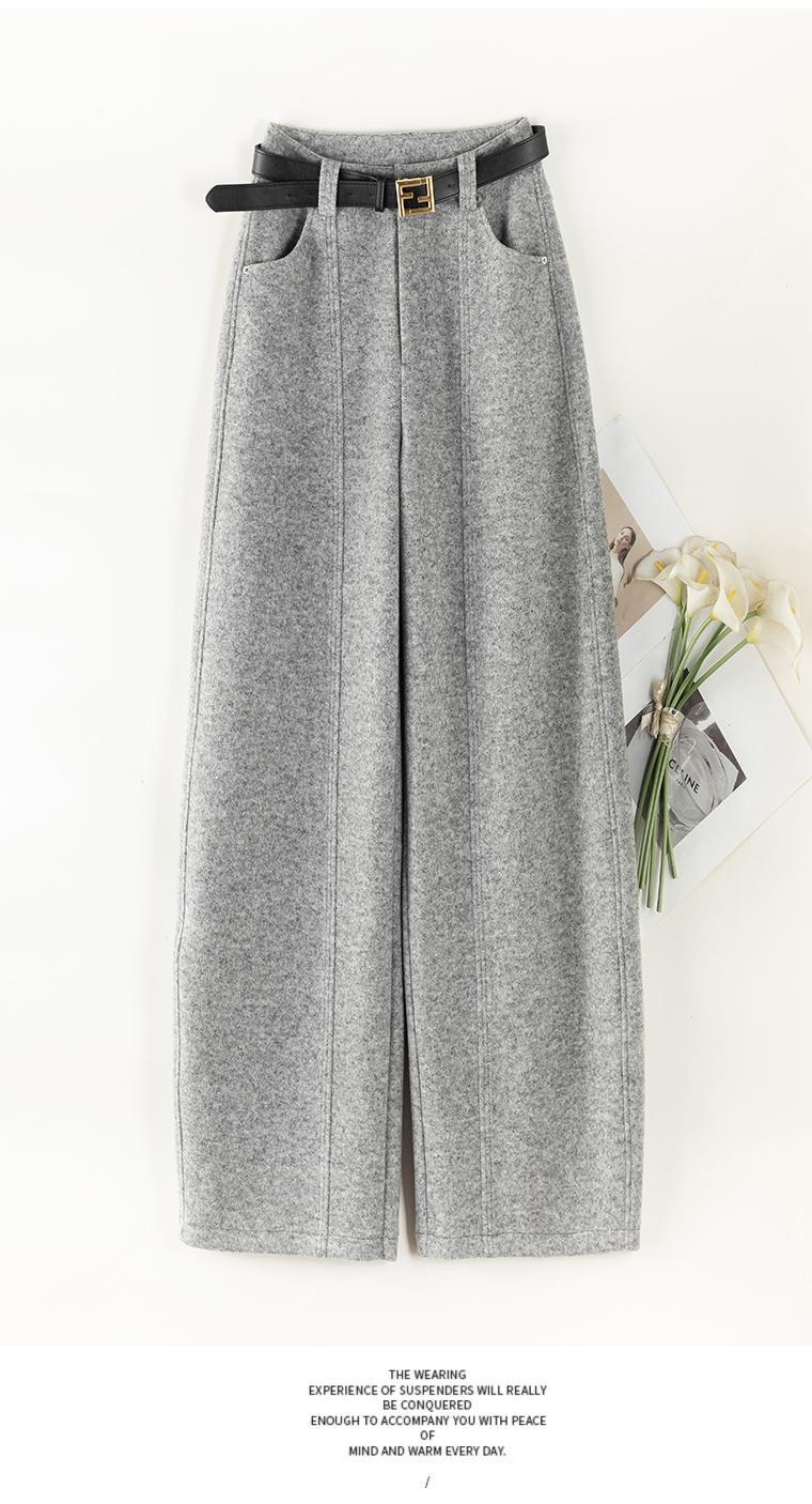 加厚雪花毛呢阔腿裤女秋冬2025新款高腰设计感直筒休闲拖地裤子