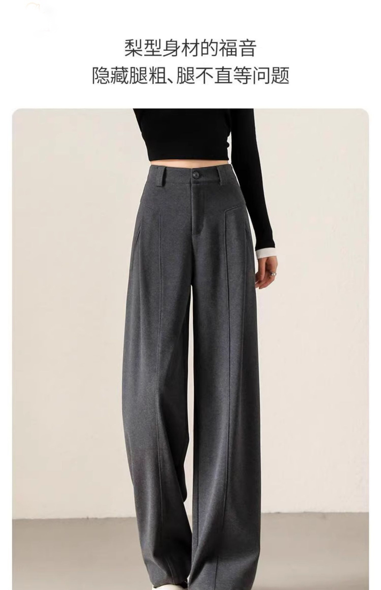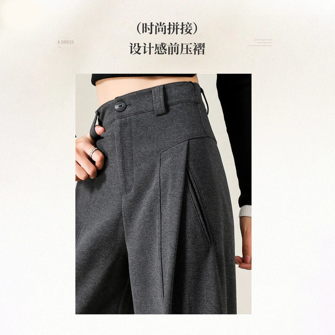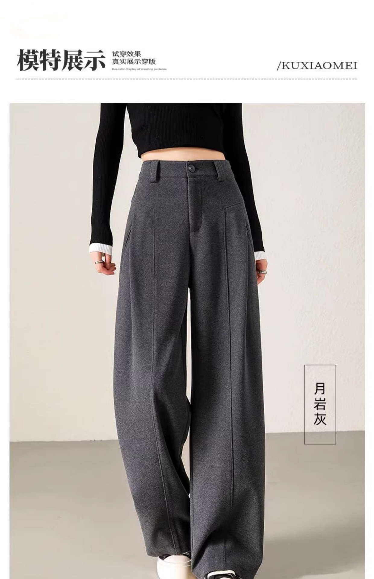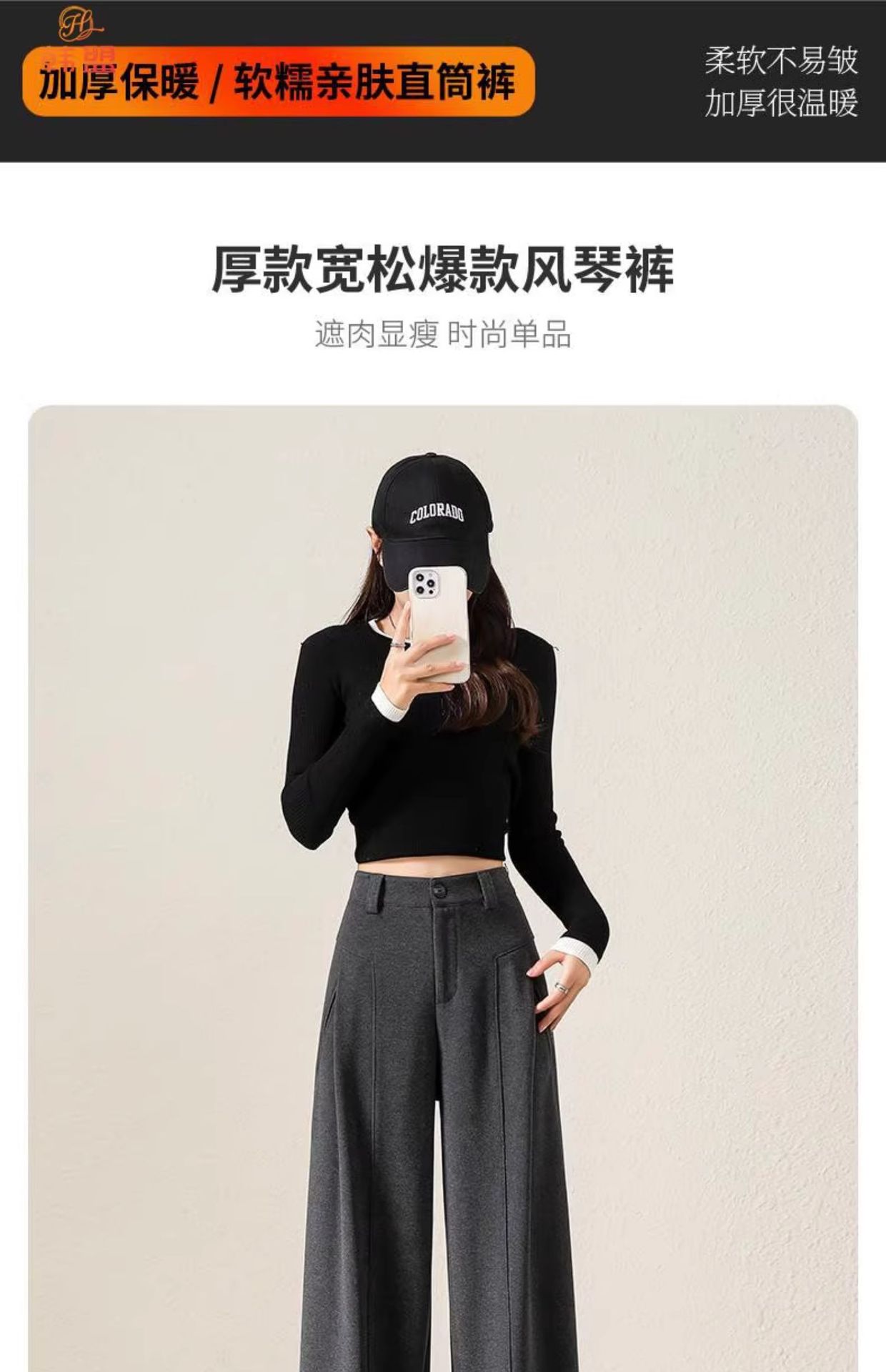 羊毛呢加厚保暖阔腿裤女2025秋冬加绒新款高腰显瘦休闲直筒风琴裤