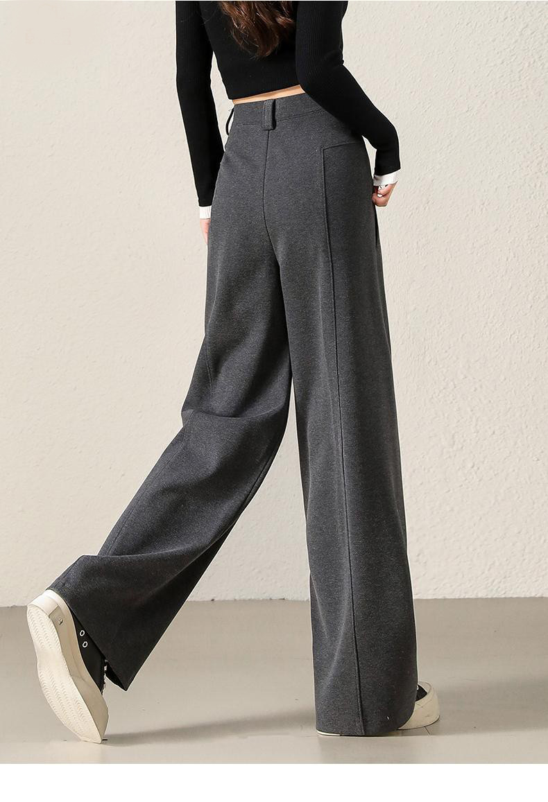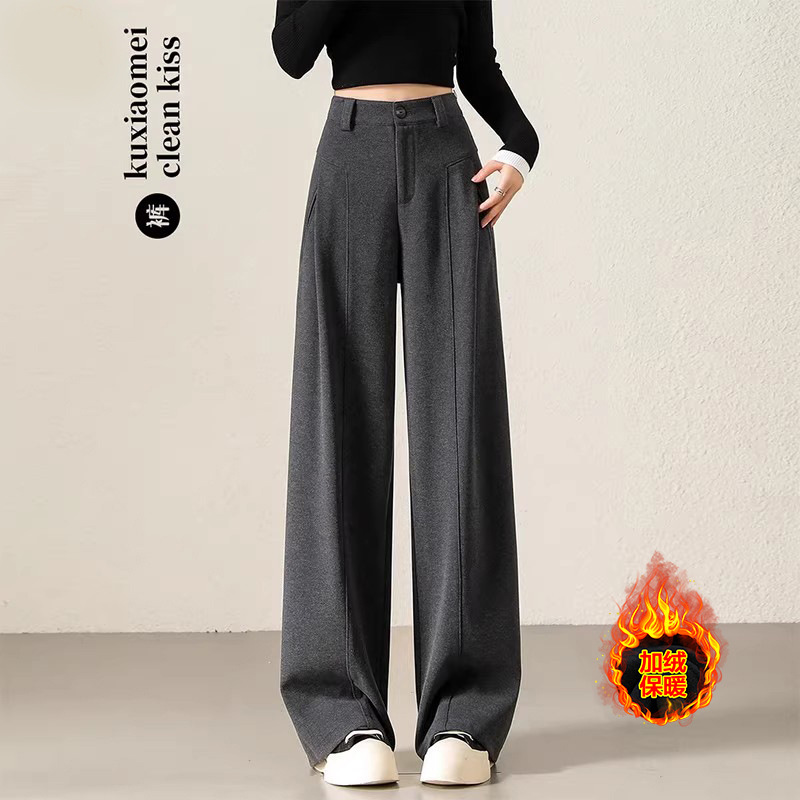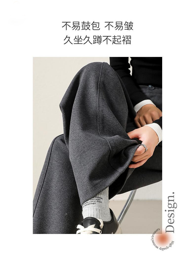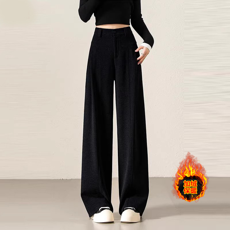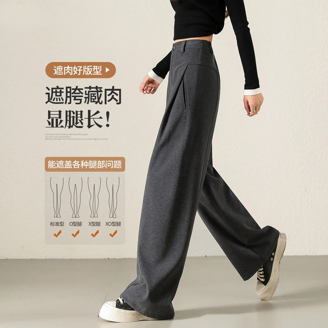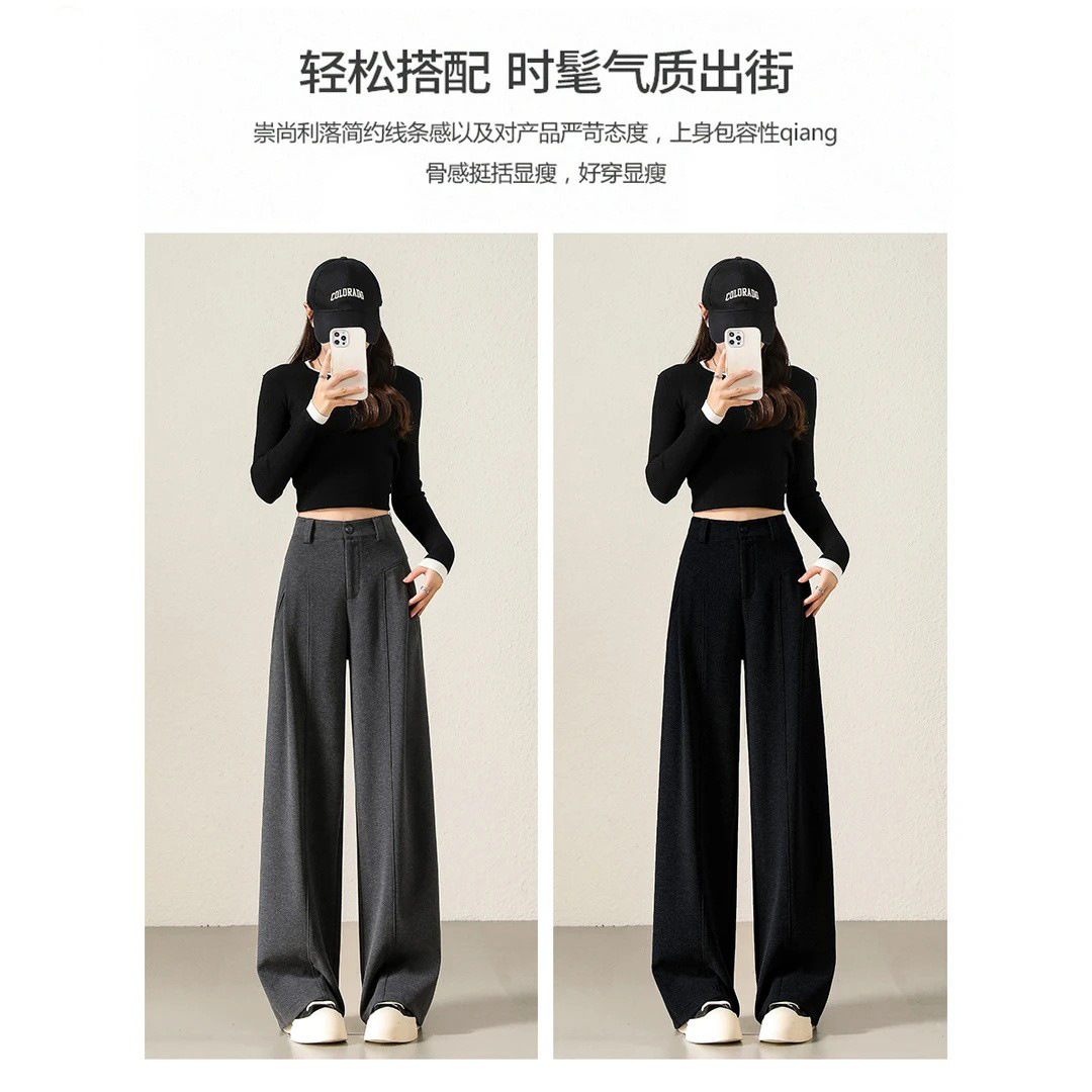 羊毛呢加厚保暖阔腿裤女2025秋冬加绒新款高腰显瘦休闲直筒风琴裤