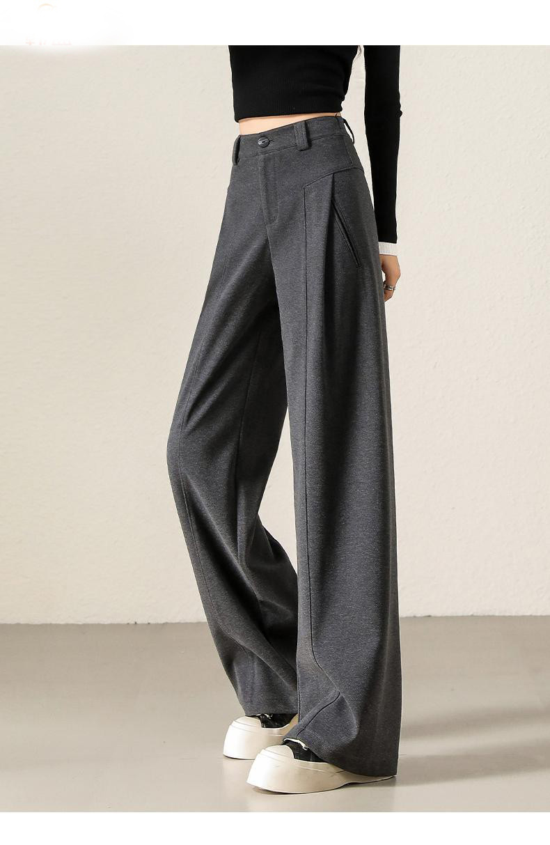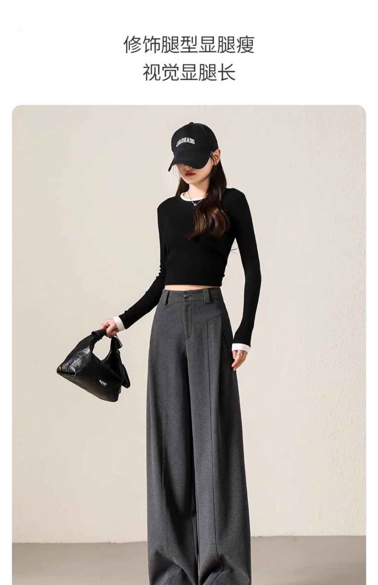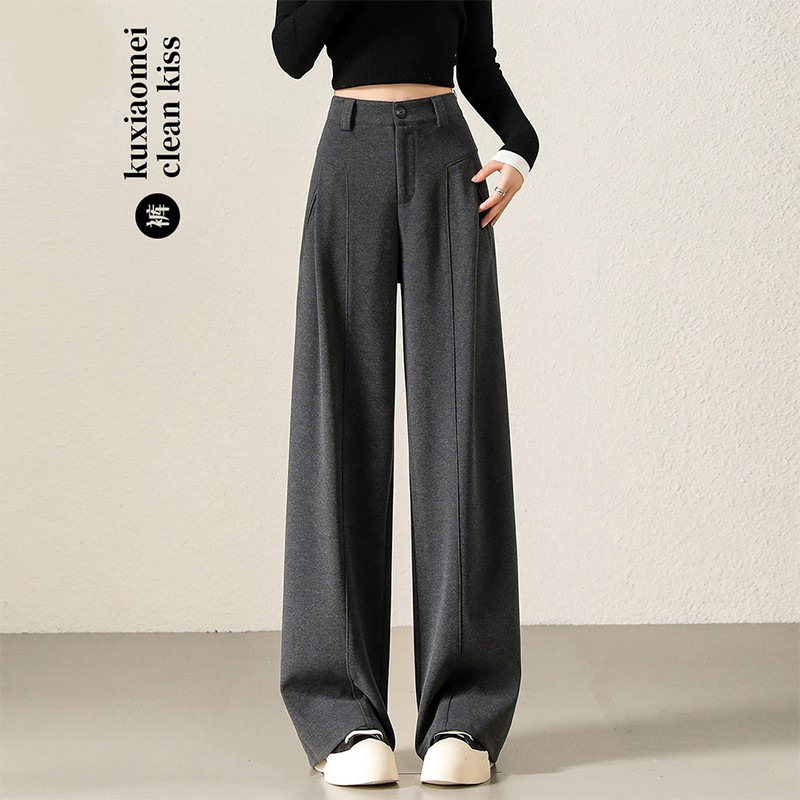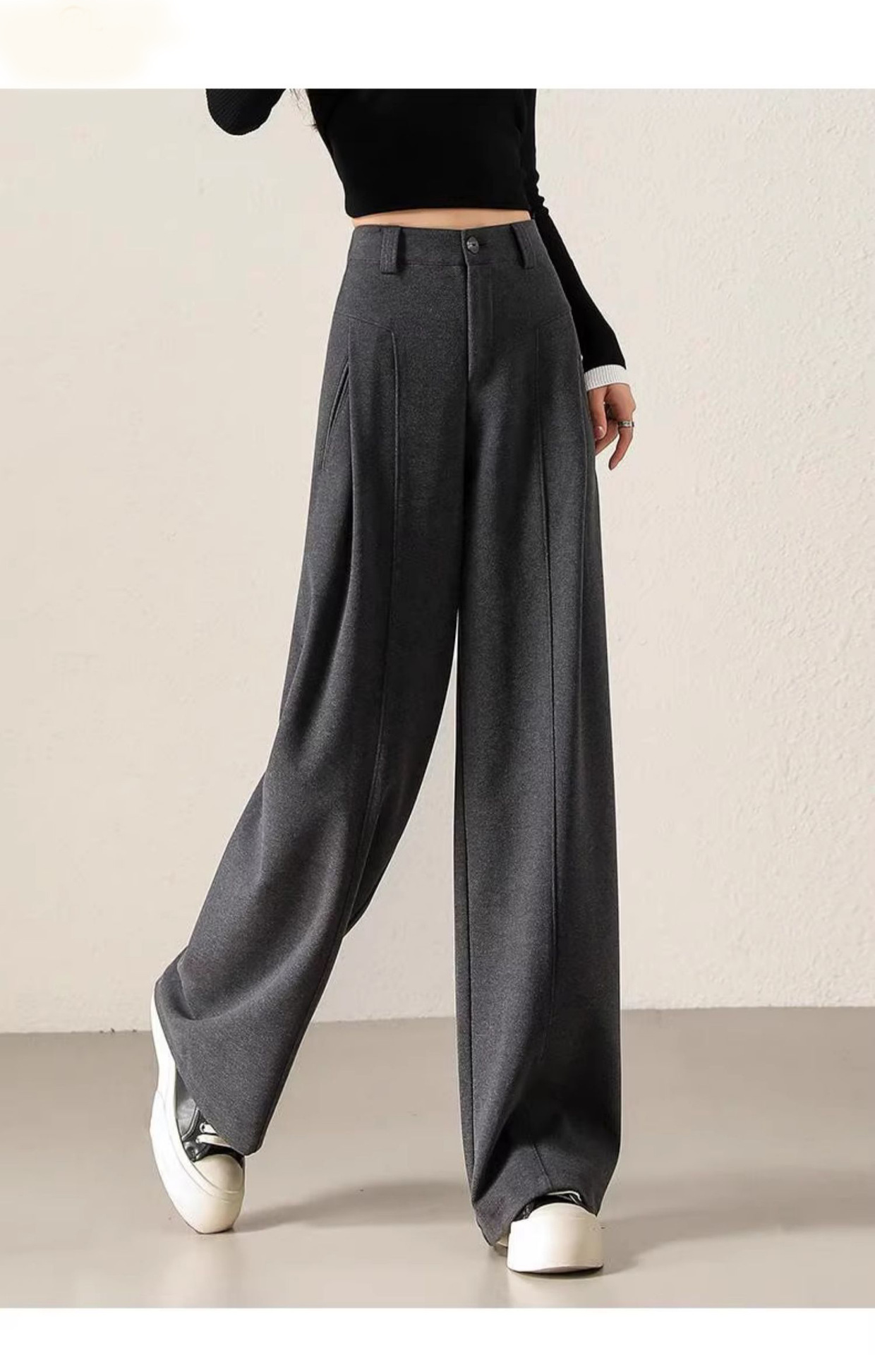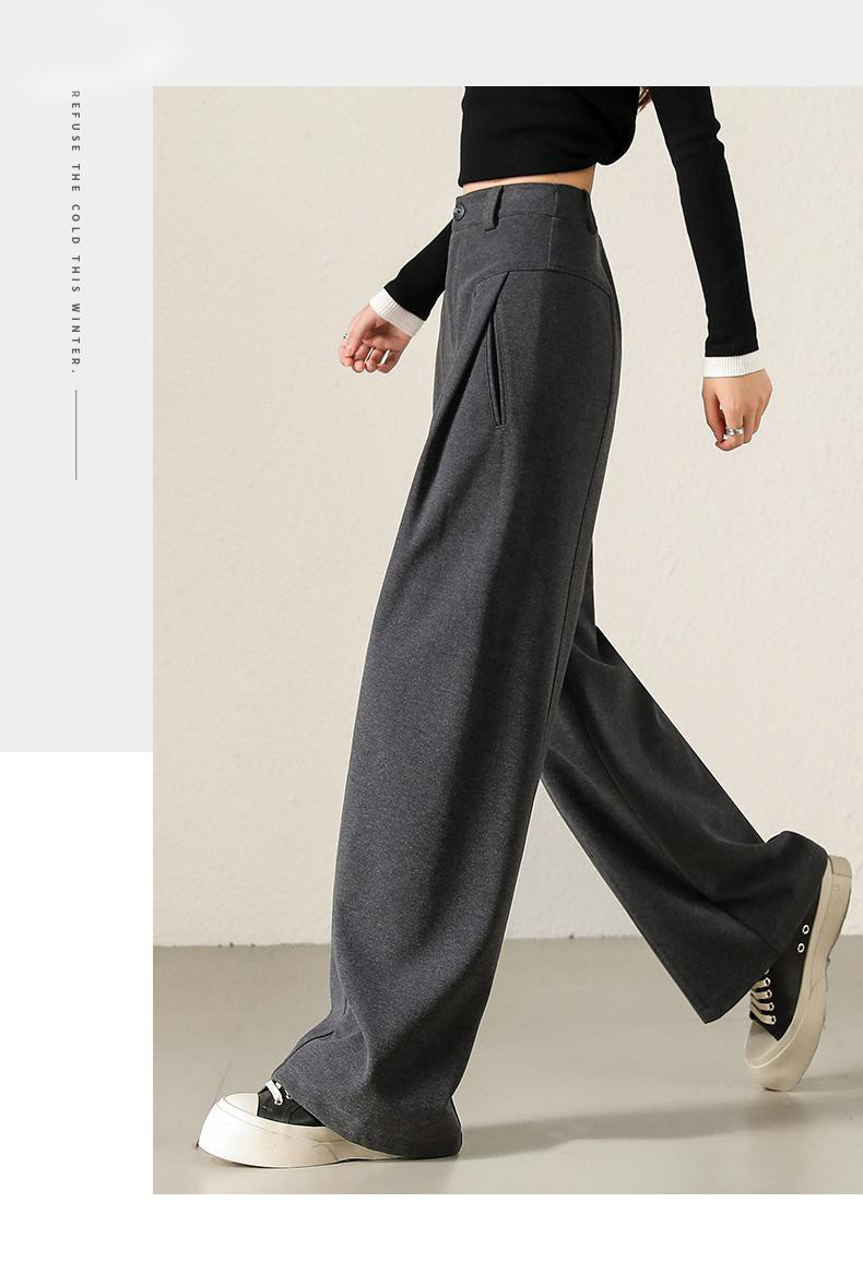 羊毛呢加厚保暖阔腿裤女2025秋冬加绒新款高腰显瘦休闲直筒风琴裤