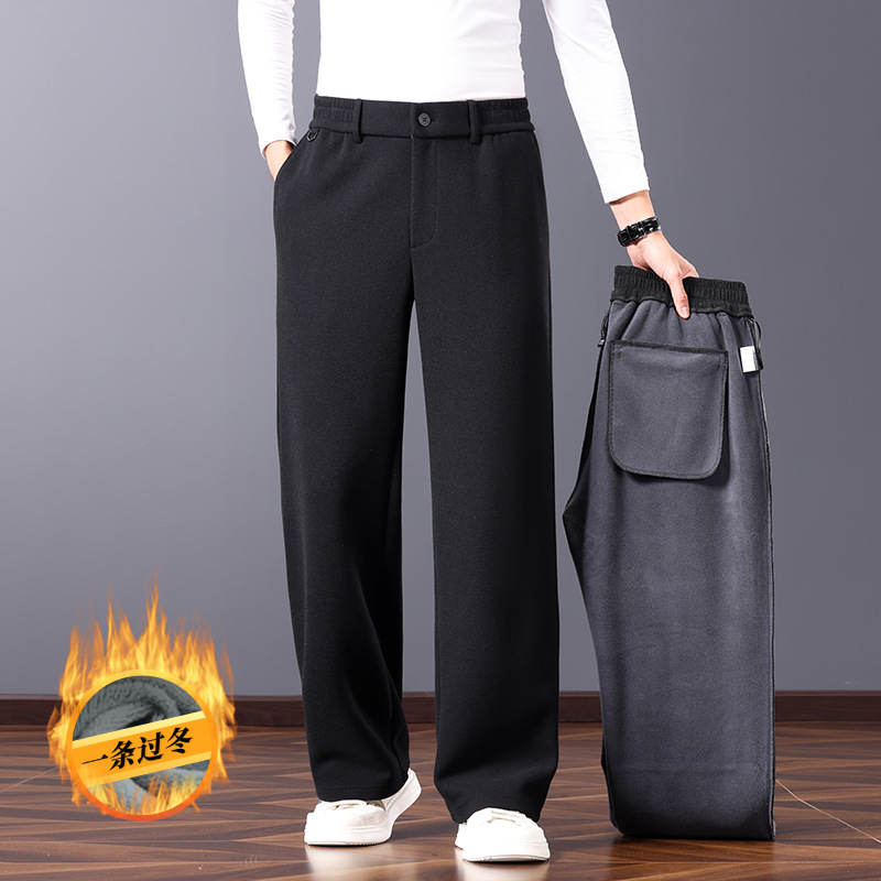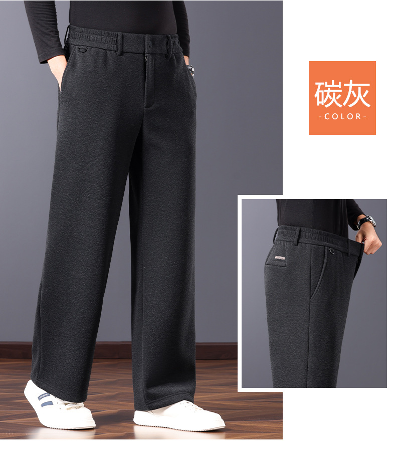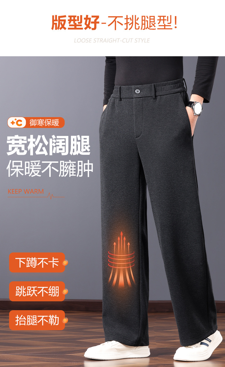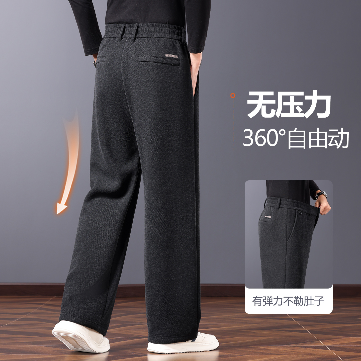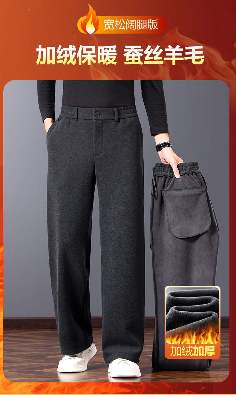 新休闲裤加绒男2025秋冬新款羊毛男士厚款阔腿裤中年男士商务男裤
