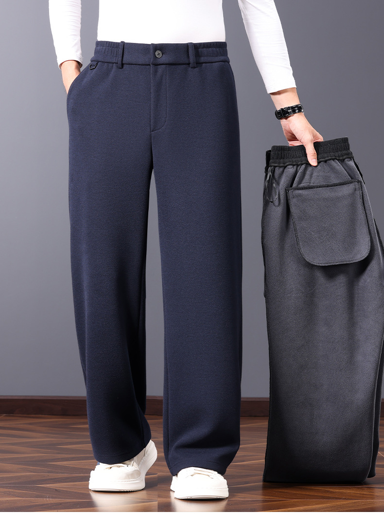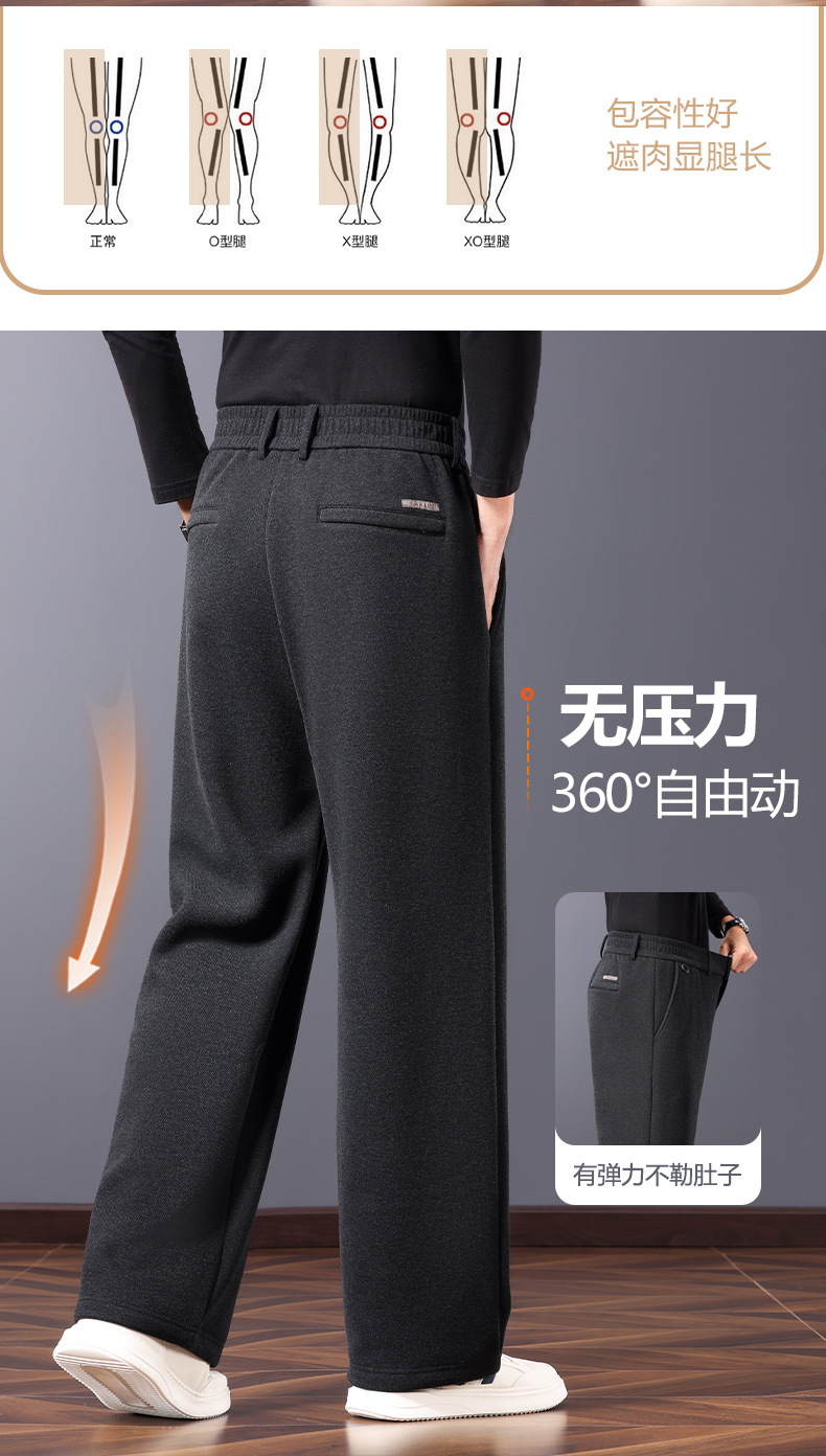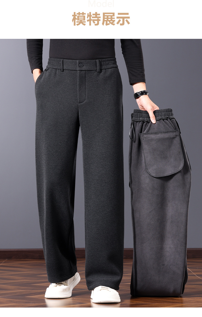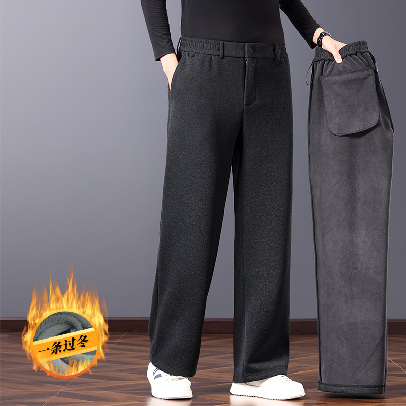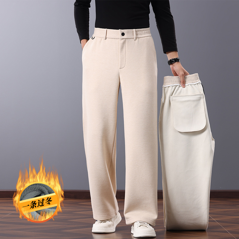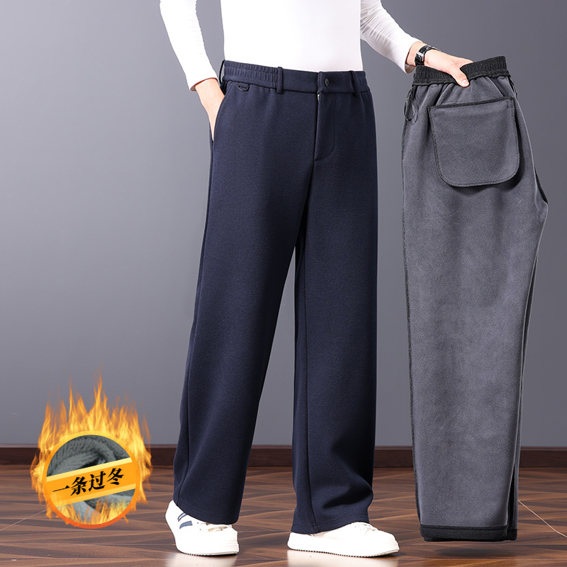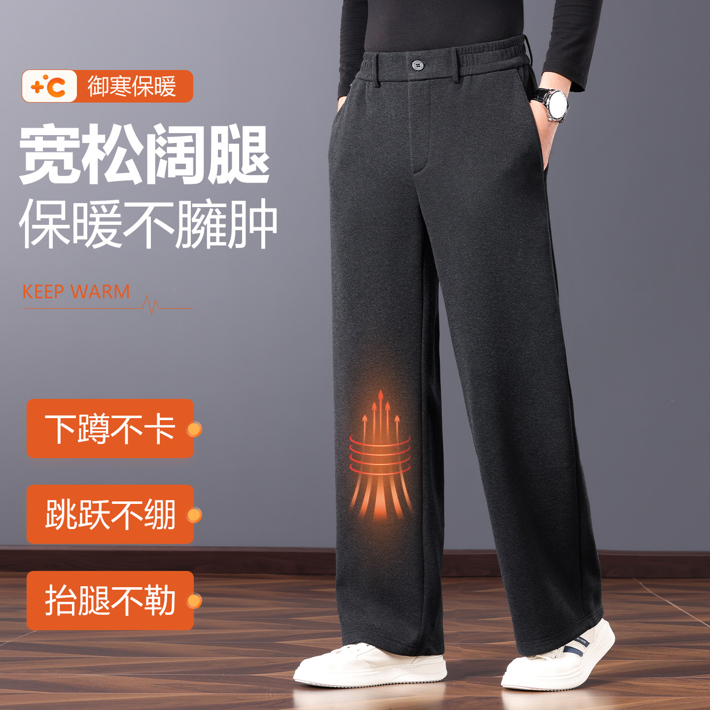 新休闲裤加绒男2025秋冬新款羊毛男士厚款阔腿裤中年男士商务男裤