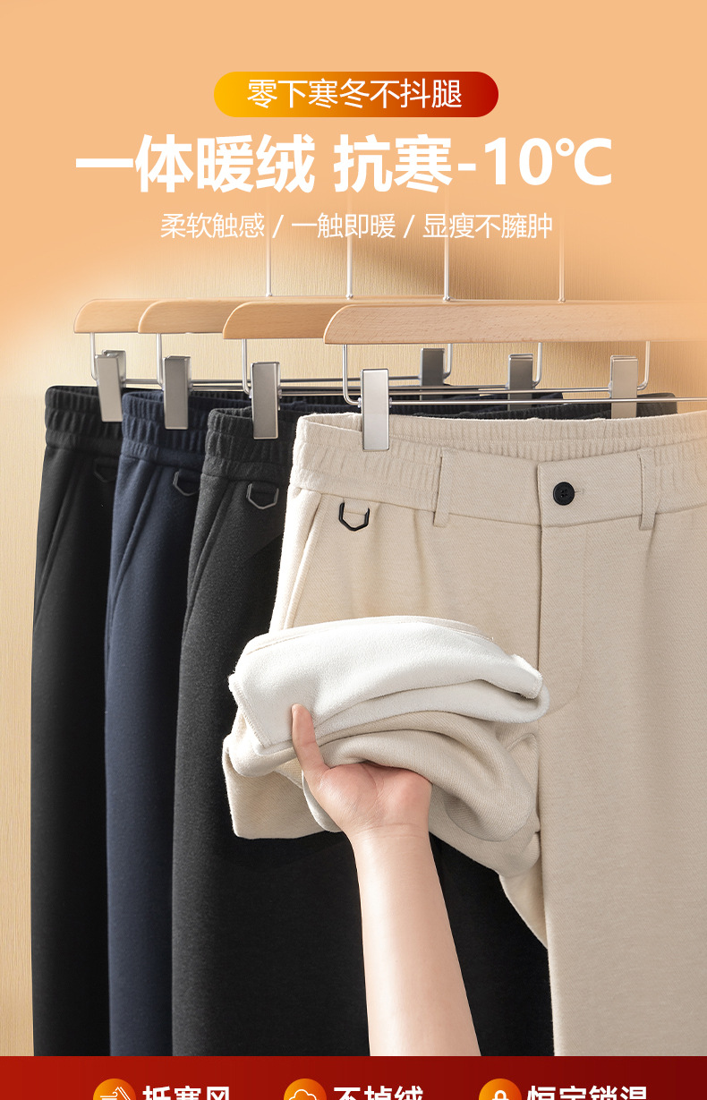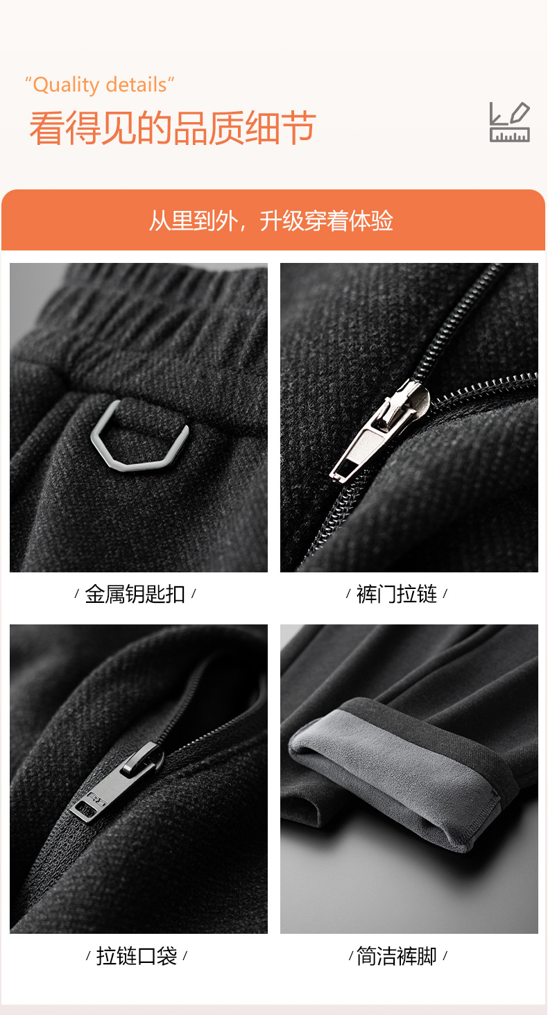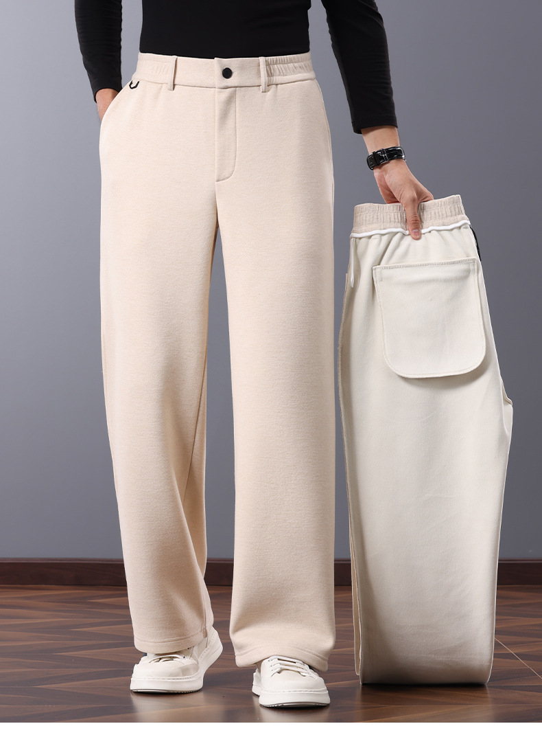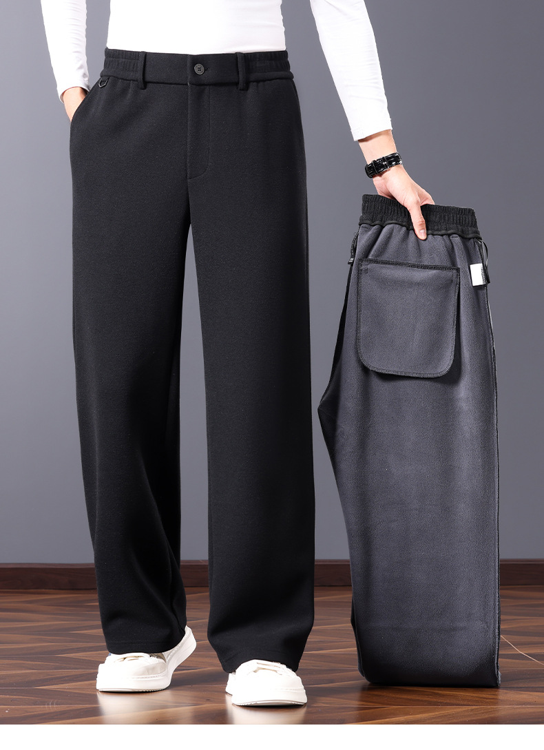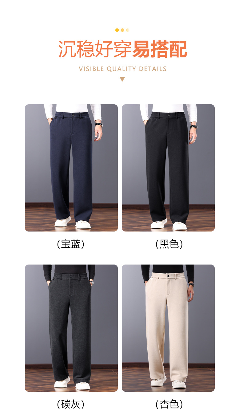 新休闲裤加绒男2025秋冬新款羊毛男士厚款阔腿裤中年男士商务男裤