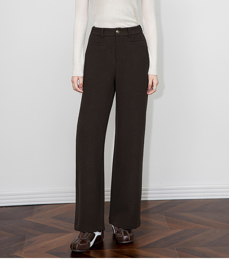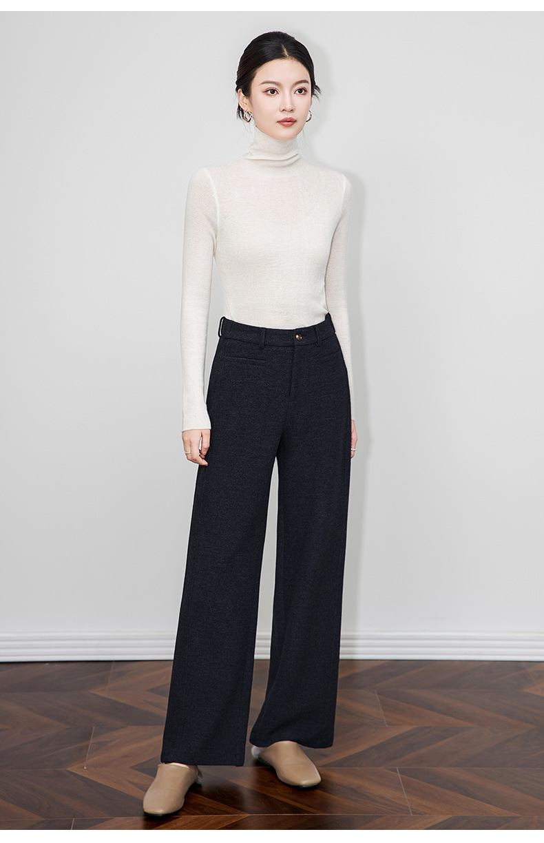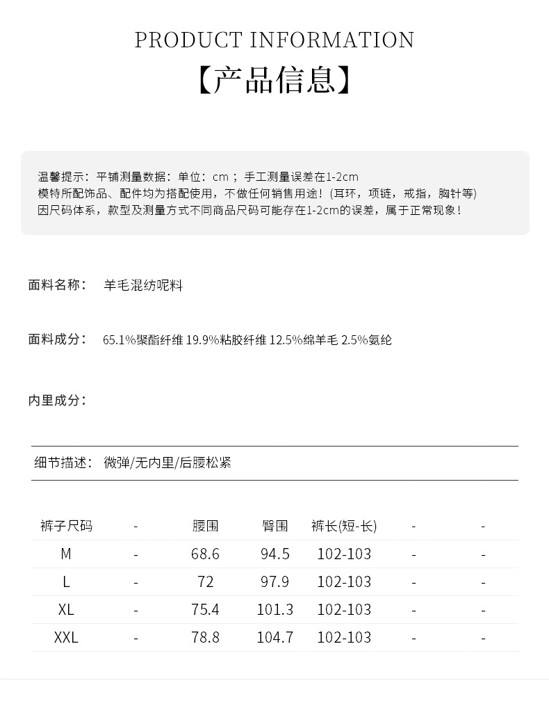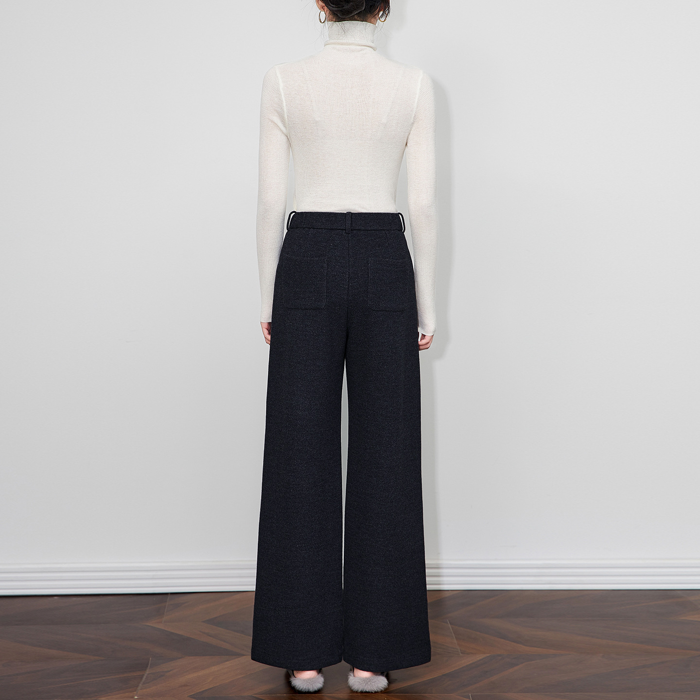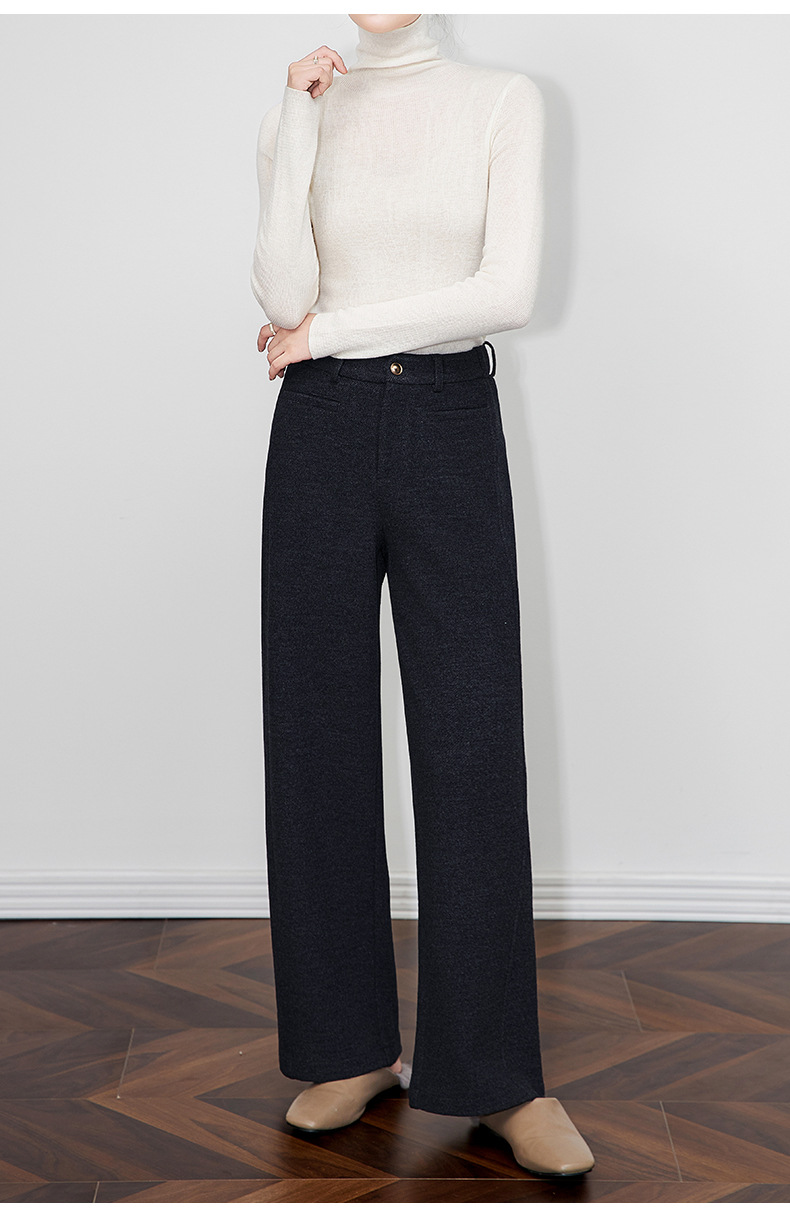2513502-通勤休闲摩登秋冬加厚毛呢长裤直筒窄版阔腿裤南油高品女