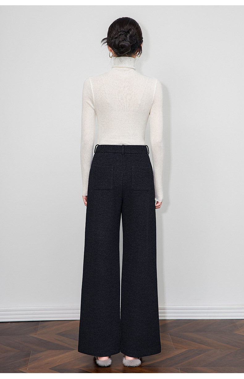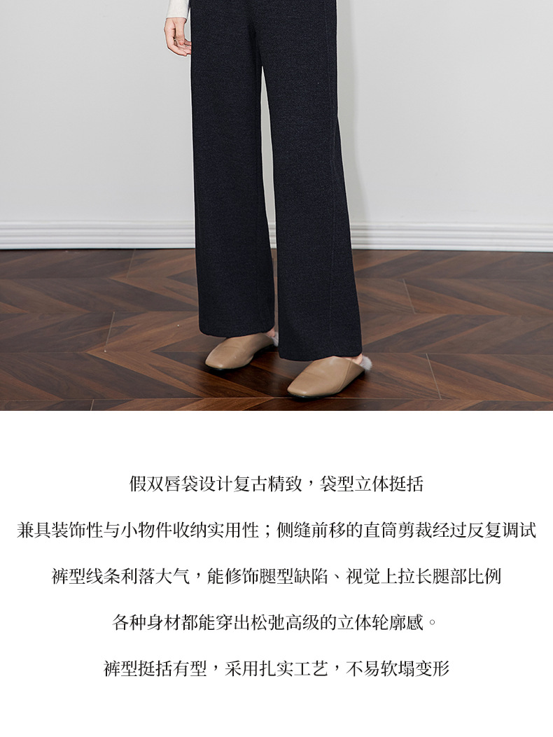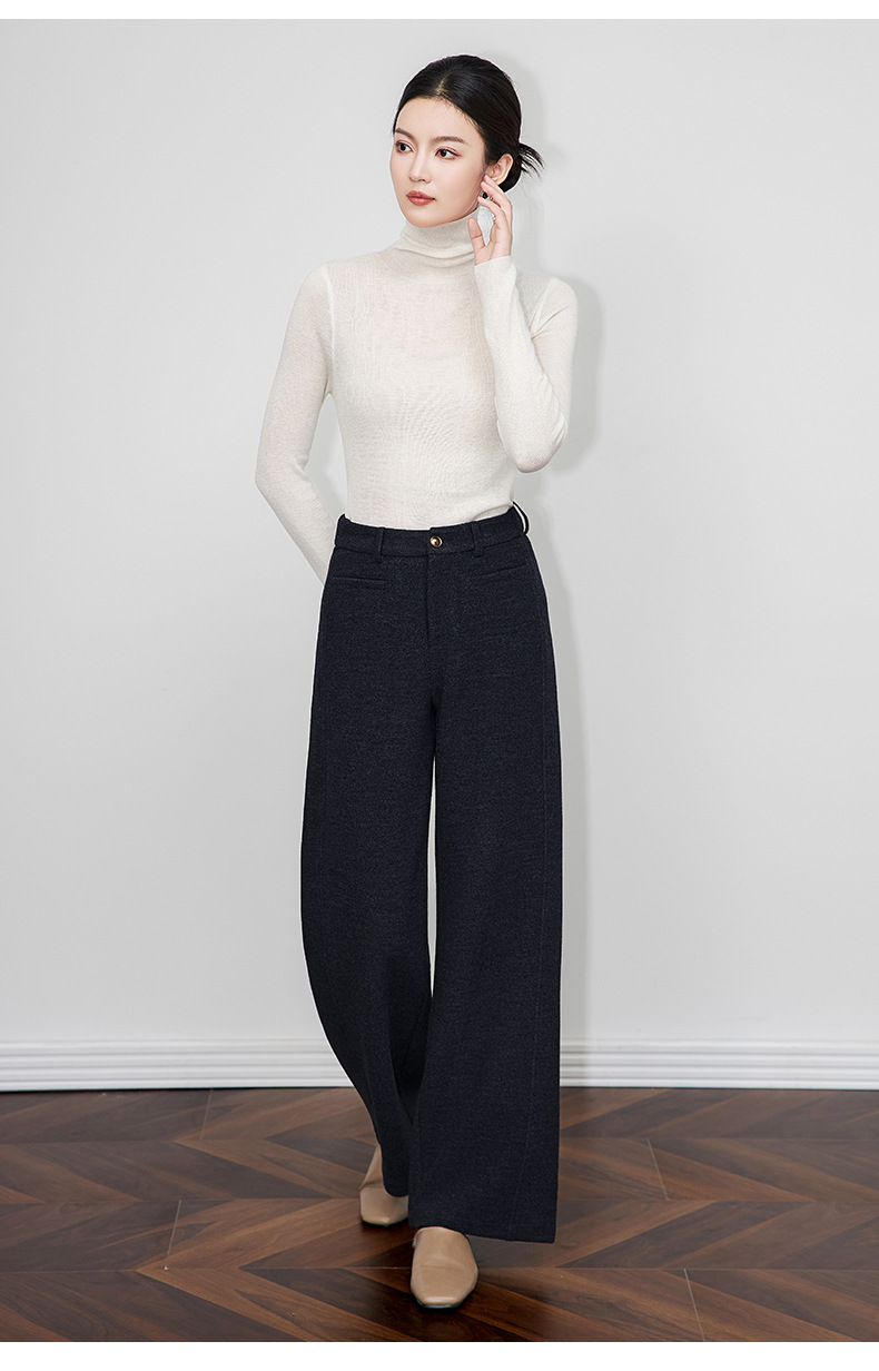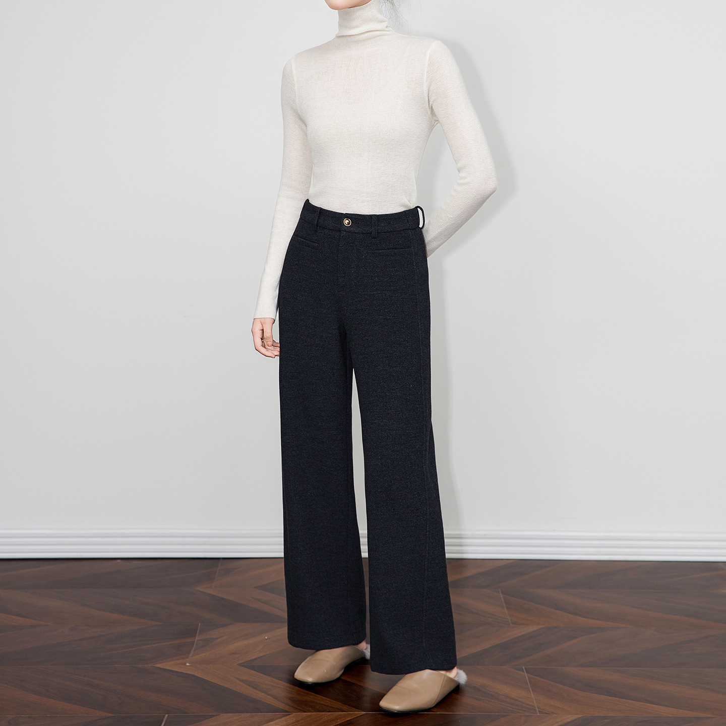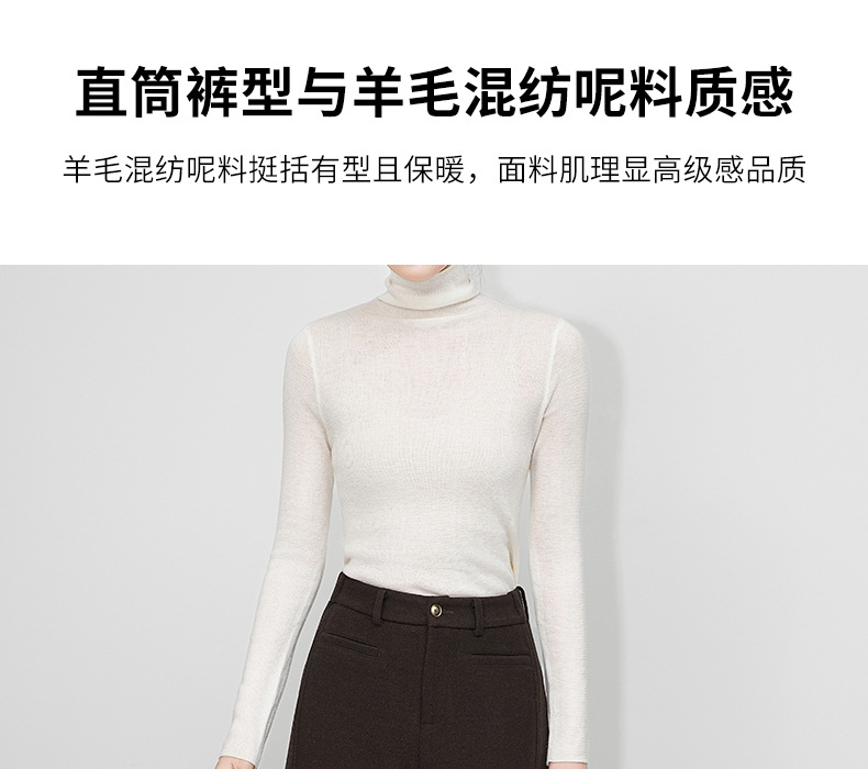 2513502-通勤休闲摩登秋冬加厚毛呢长裤直筒窄版阔腿裤南油高品女