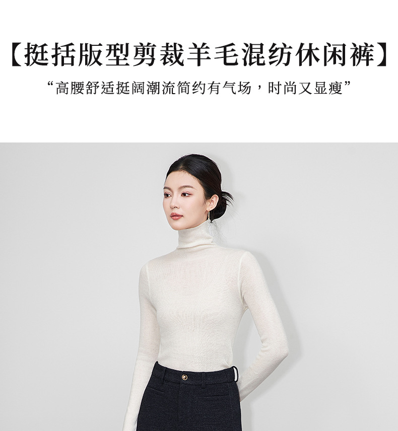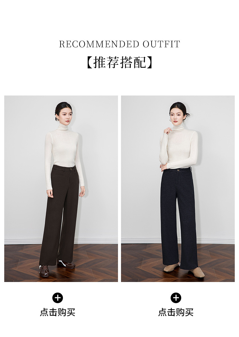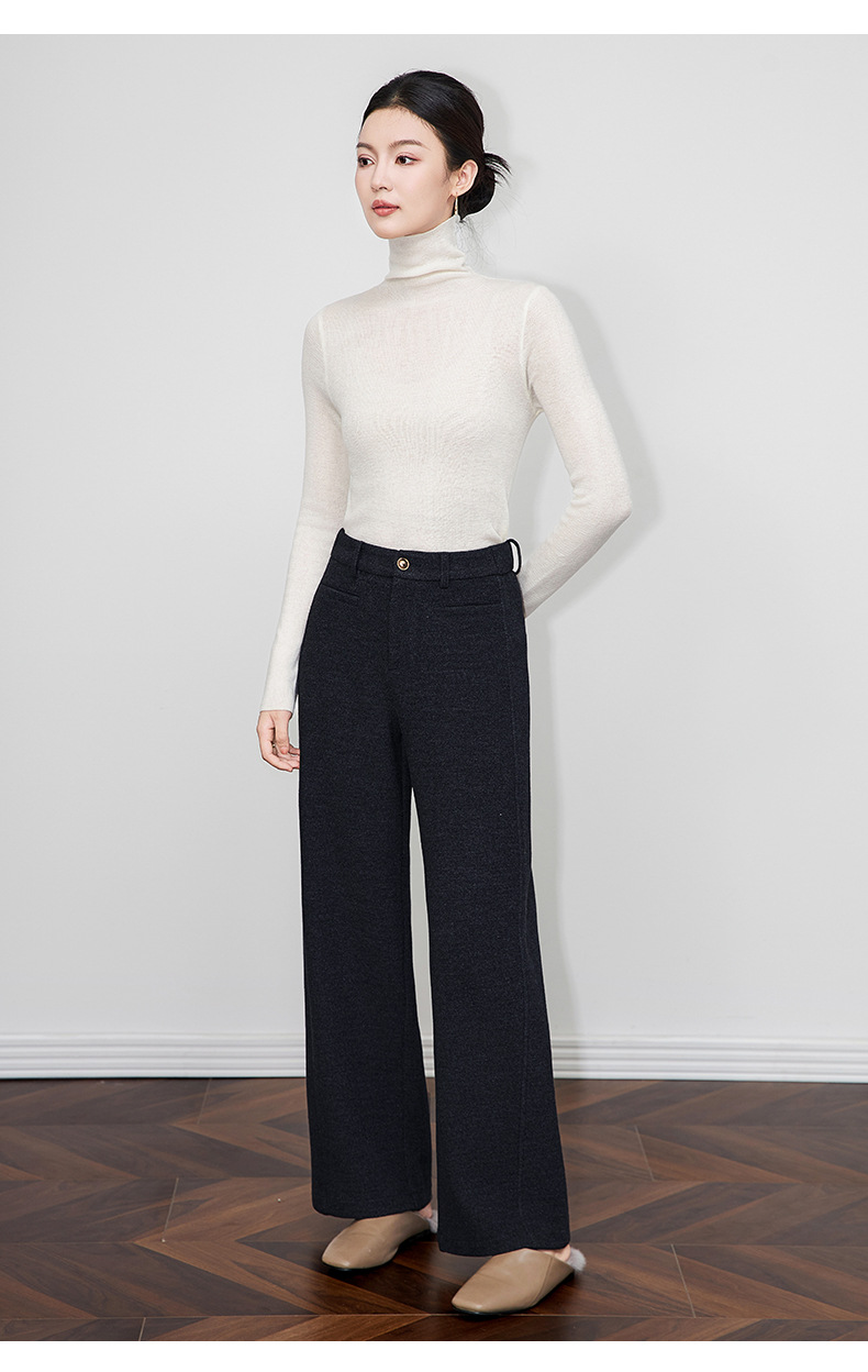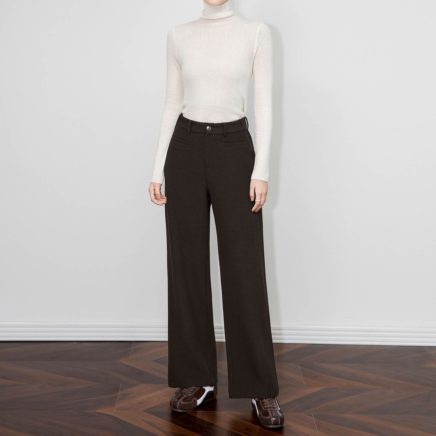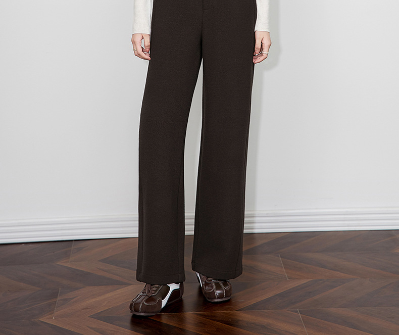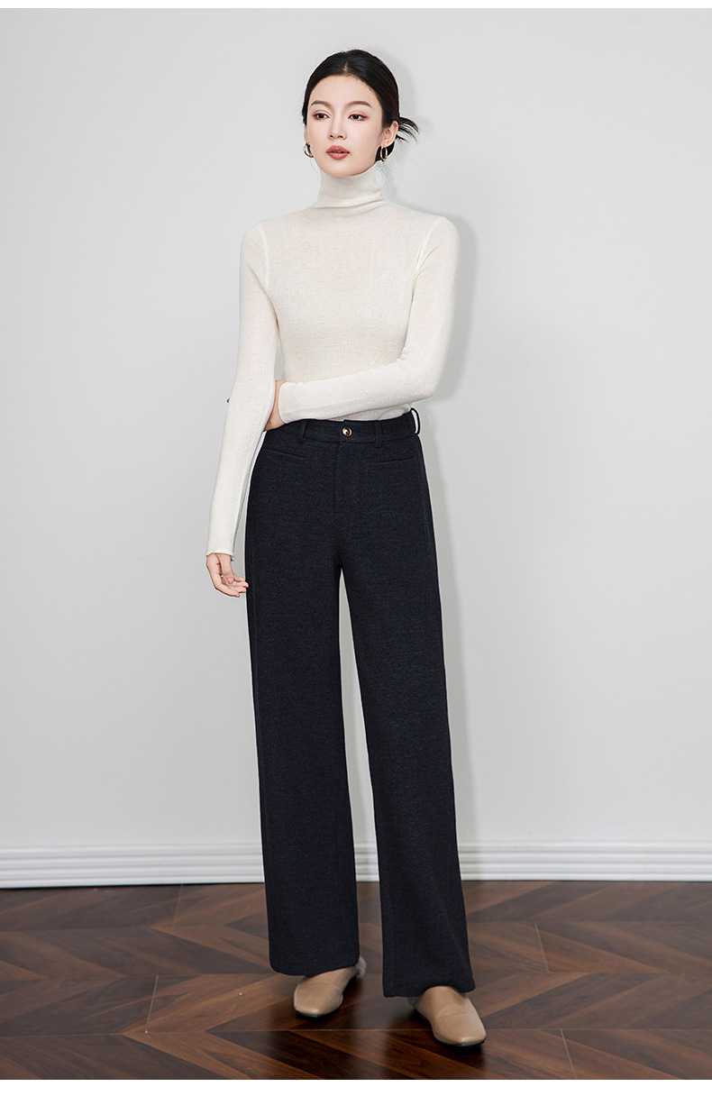 2513502-通勤休闲摩登秋冬加厚毛呢长裤直筒窄版阔腿裤南油高品女