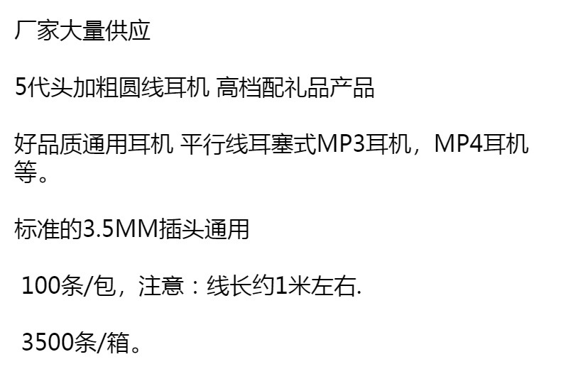 工厂现货安卓手机音乐耳机不带麦配送礼品3.5头有线耳塞复古风
